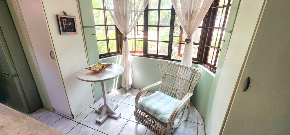 Situated in a small estate, only 800m from the beach, with lifeguards (blue flag beach) beachfront restaurant and fun park, ski boat launch site, and village centre, with all amenities. This lovely A frame consists of a large kitchen with a feature bay window (perfect space for the early morning coffee) a large open plan lounge area which leads to the dining area, with sliding door to the covered patio, with views over the lawned gardens with lovely indigenous trees. There is a bedroom and bathroom on this level. Up a flight of stairs is a landing which is perfect for a study or pajama lounge, with a bedroom to the one side and on the opposite is the well sized main bedroom with a large bathroom with a shower, toilet and vanity and a bank of built in cupboards. Outside the kitchen area is a lovely shaded seating area with a built in braai, a water tank takes care of water issues should they arise. There is a single car carport and space for guest parking. The estate has a communal swimming pool and braais and an additional water tank. Small dogs are allowed with permission.