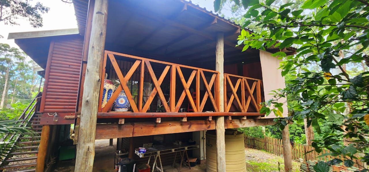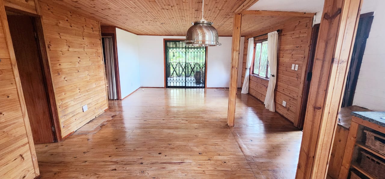 The cabin is set on a nice large stand and is pet friendly (also larger social dogs) It has a large workshop/garage/store room under the main dwelling, an outside stairway leads to the covered front deck, with french doors leading to the large open plan lounge, dining area and farm style kitchen with breakfast counter. The main bedroom is super large, with plenty of cupboard space and an ensuite bathroom. A stairway leads to the loft room which could be used for storage or whatever needs one may have. The estate has a borehole and a communal pool with lovely braai and picnic area. Make an offer on this home, it does need work, but has enormous potential, Contact us ANYTIME to chat further!!