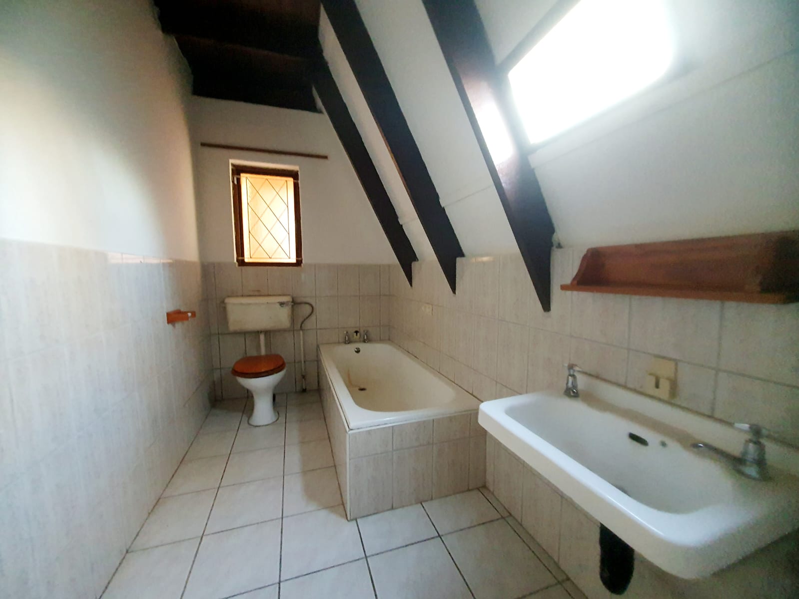 Lounge and Dining area that leads to the patio and walk just down the stairs into your own private garden, with braai area, full of beauty and nature. Backup water. Carport and Storeroom.