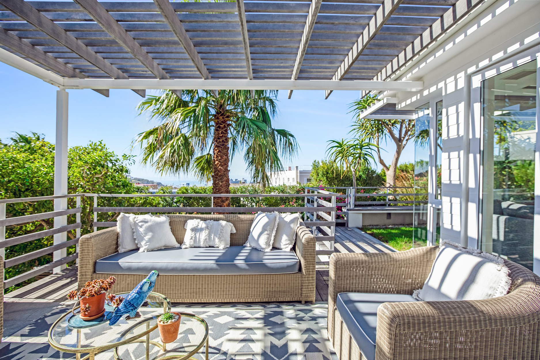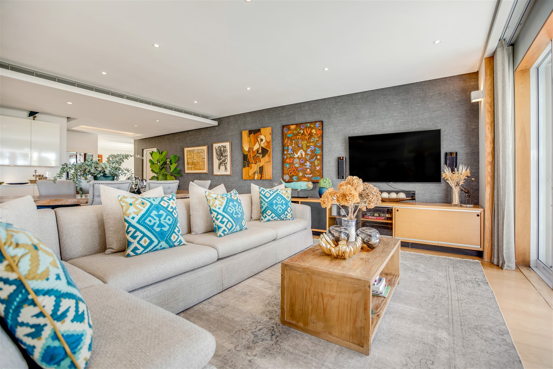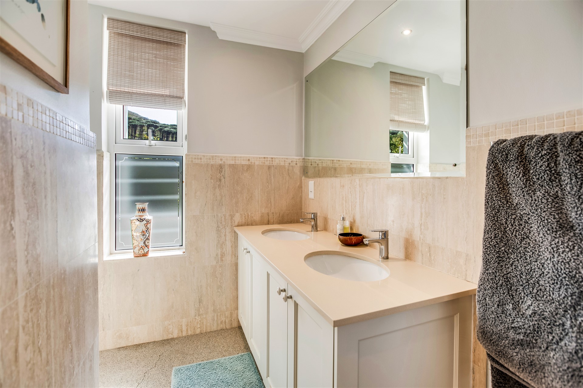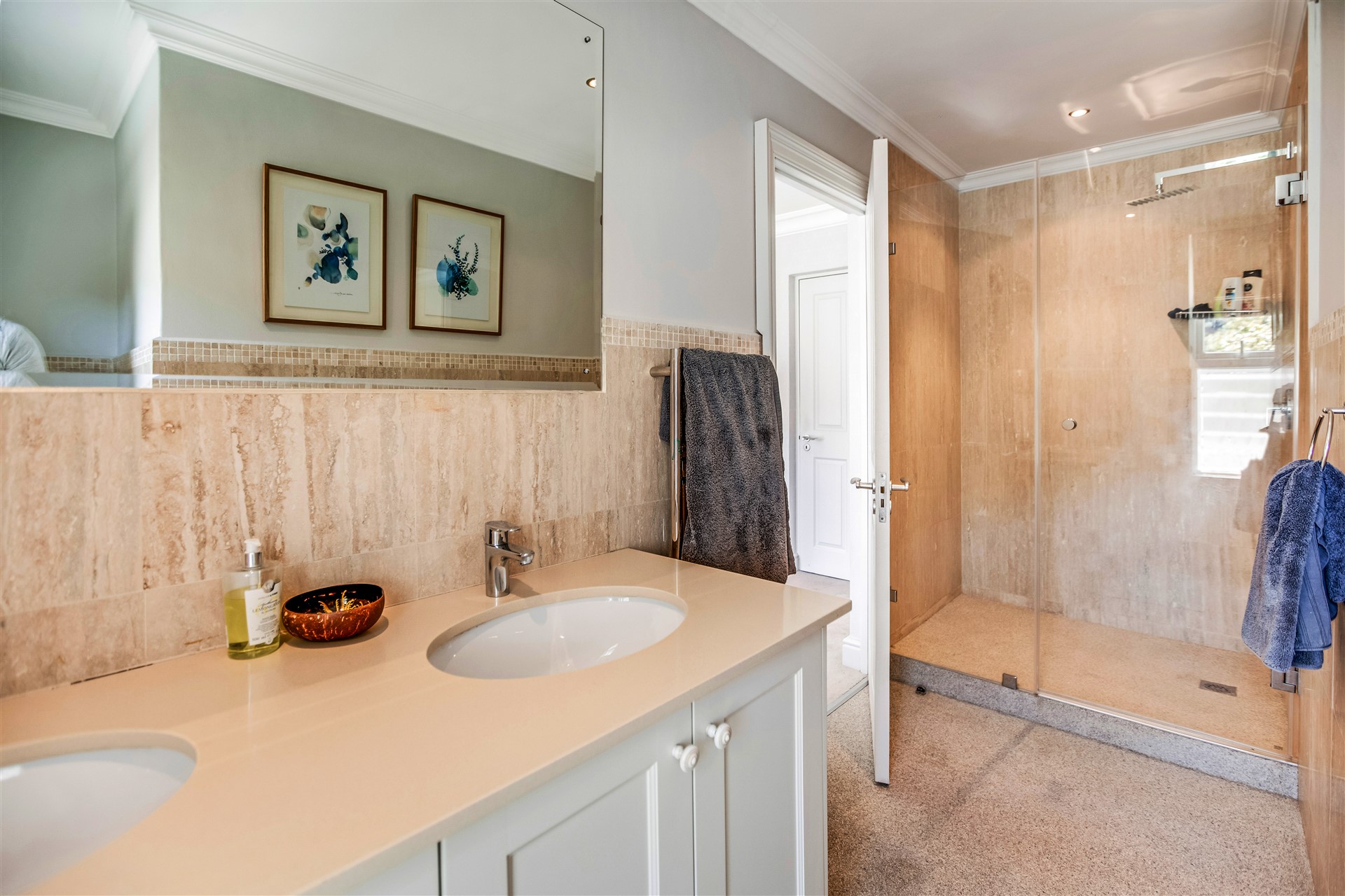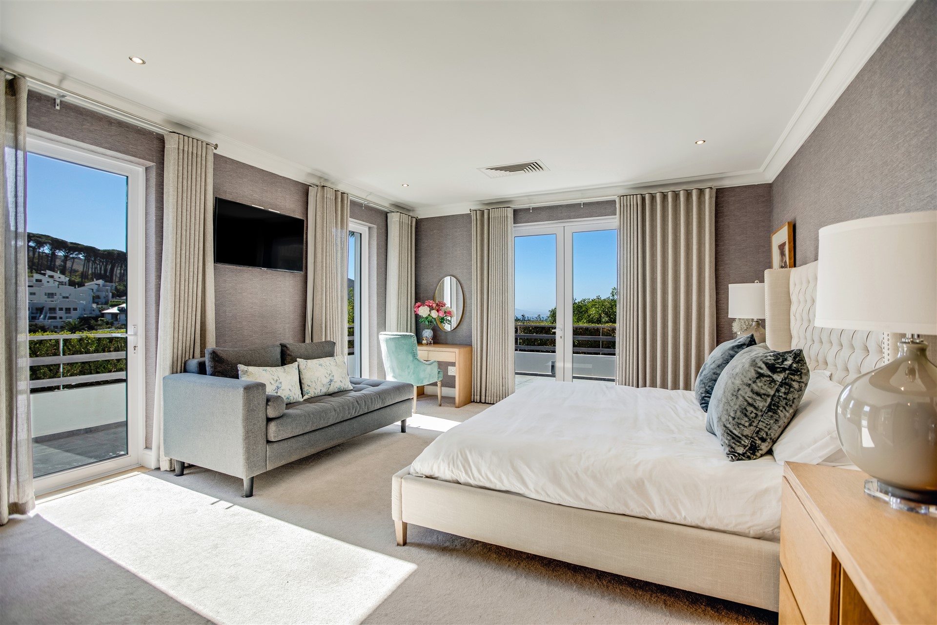 Indulge your senses in this beautiful “India Hicks” island-style home with a classic twist, offering a unique lifestyle in the prestigious St. Johns Estate. Comfortable and super secure, with a direct access double garage to the entrance hall and an elevator for shopping made easy. A wide winding staircase takes you to the children’s wing, where you are welcomed to an open-plan work station cum play room with lots of desk space for the kids to hang out. Three extra-large bedroom suites, each with plenty of built-in cupboards and spacious bathrooms, lead out onto the pretty tree-lined garden and kids entertainment outdoor space at the pool with beautiful views onto Lions Head and Signal Hill.