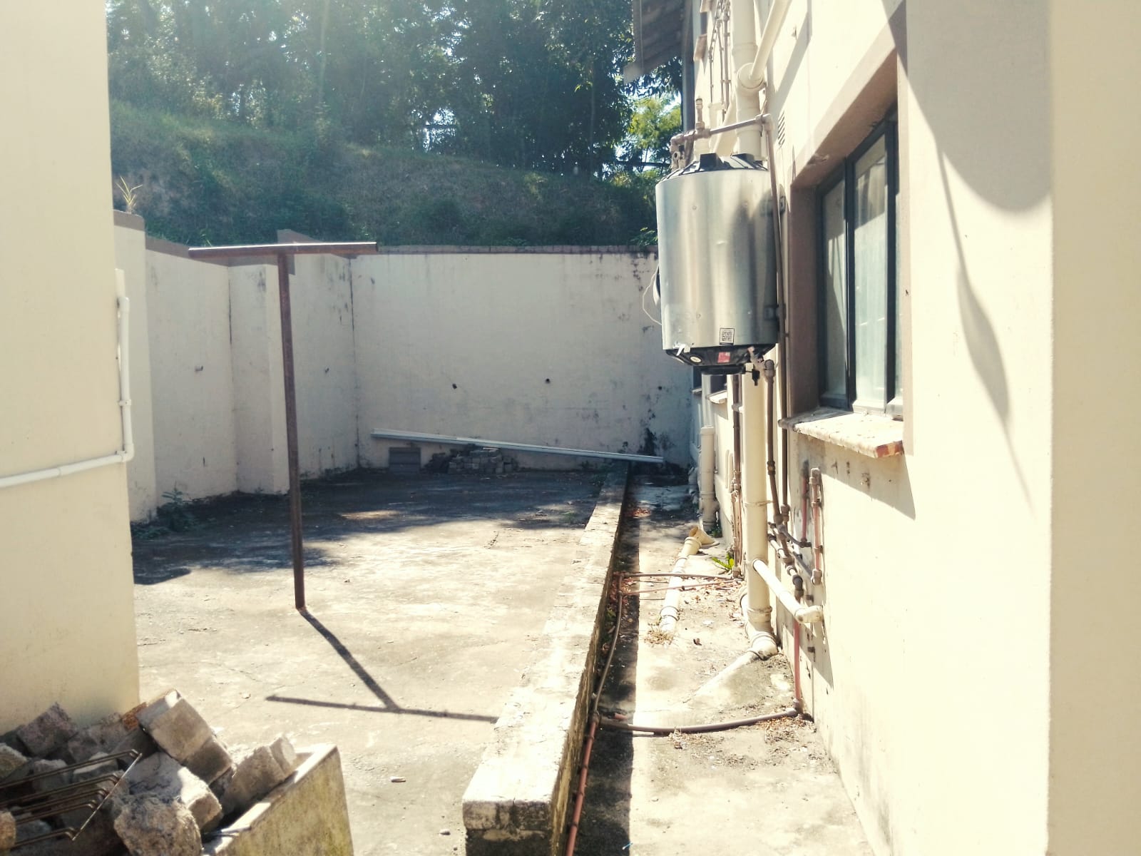 Double story with a water tank that supply the building , first floor has 3 units of which they are standard size of studio units ( bedroom , lounge , kitchen and bathroom shower , toilet and basin )