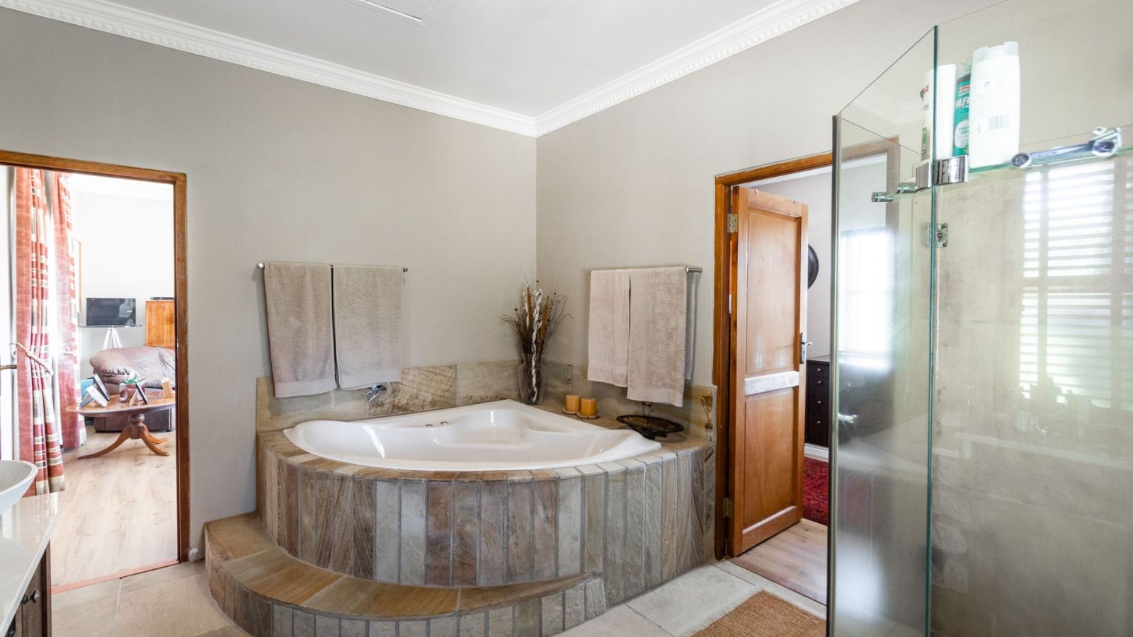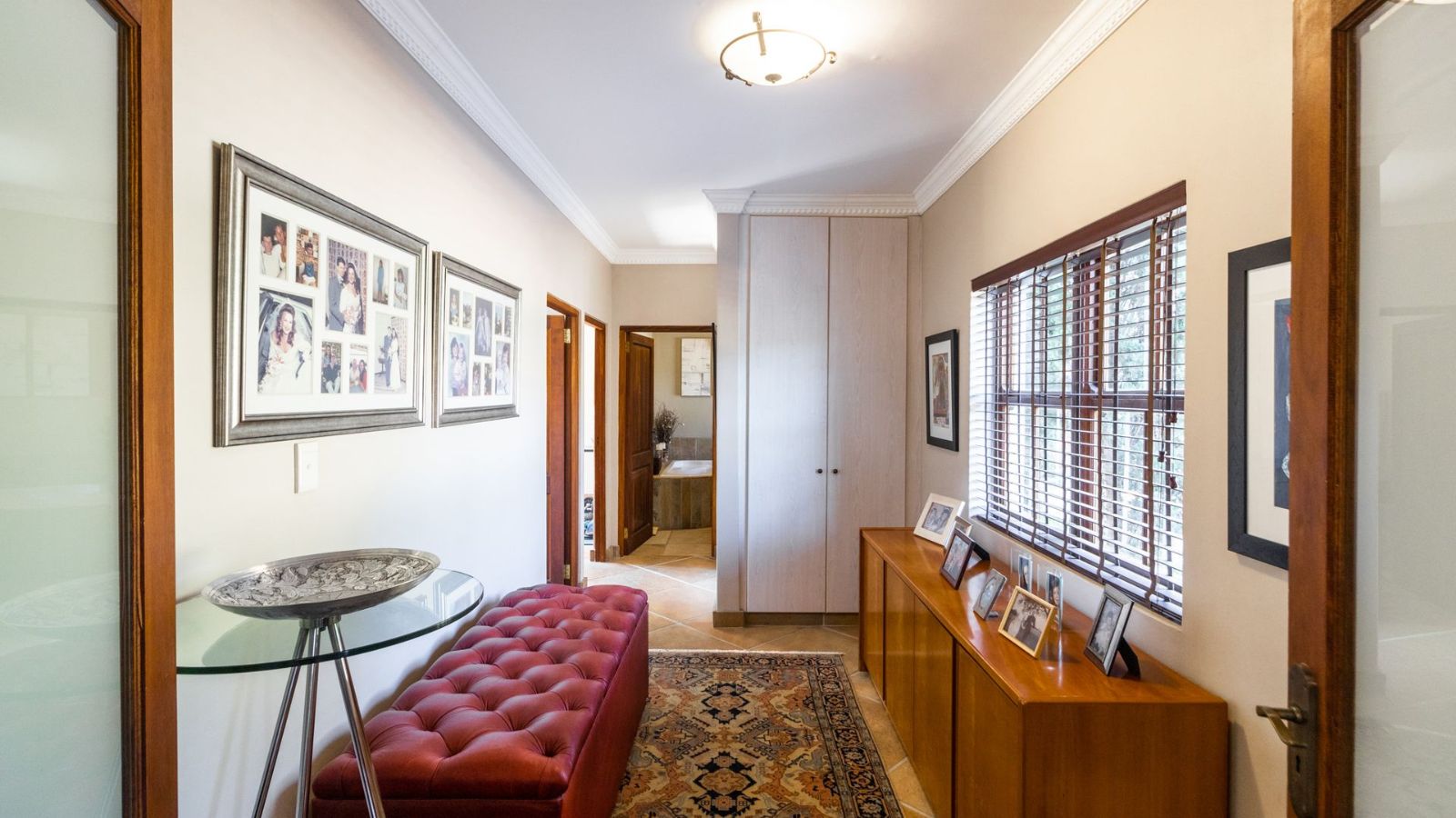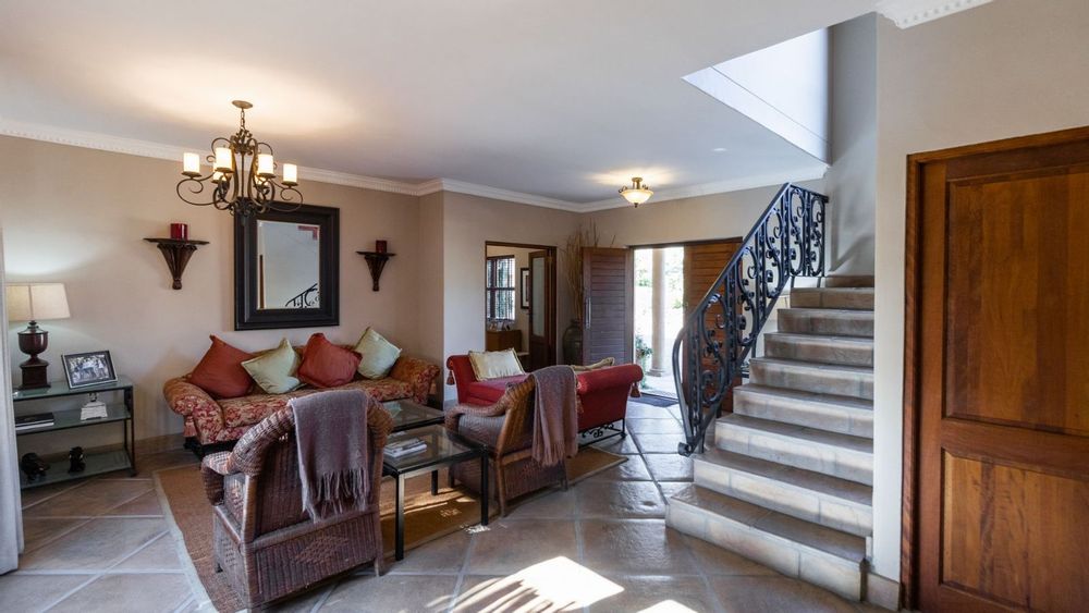 Escape to the Main bedroom, complete with its own lounge, walk-in, ensuite-bathroom, fireplace, small library and office space on the top floor. Two bedrooms share a bathroom whereas the fourth guest bedroom with on-suite bathroom is tucked away on the other side of the house.