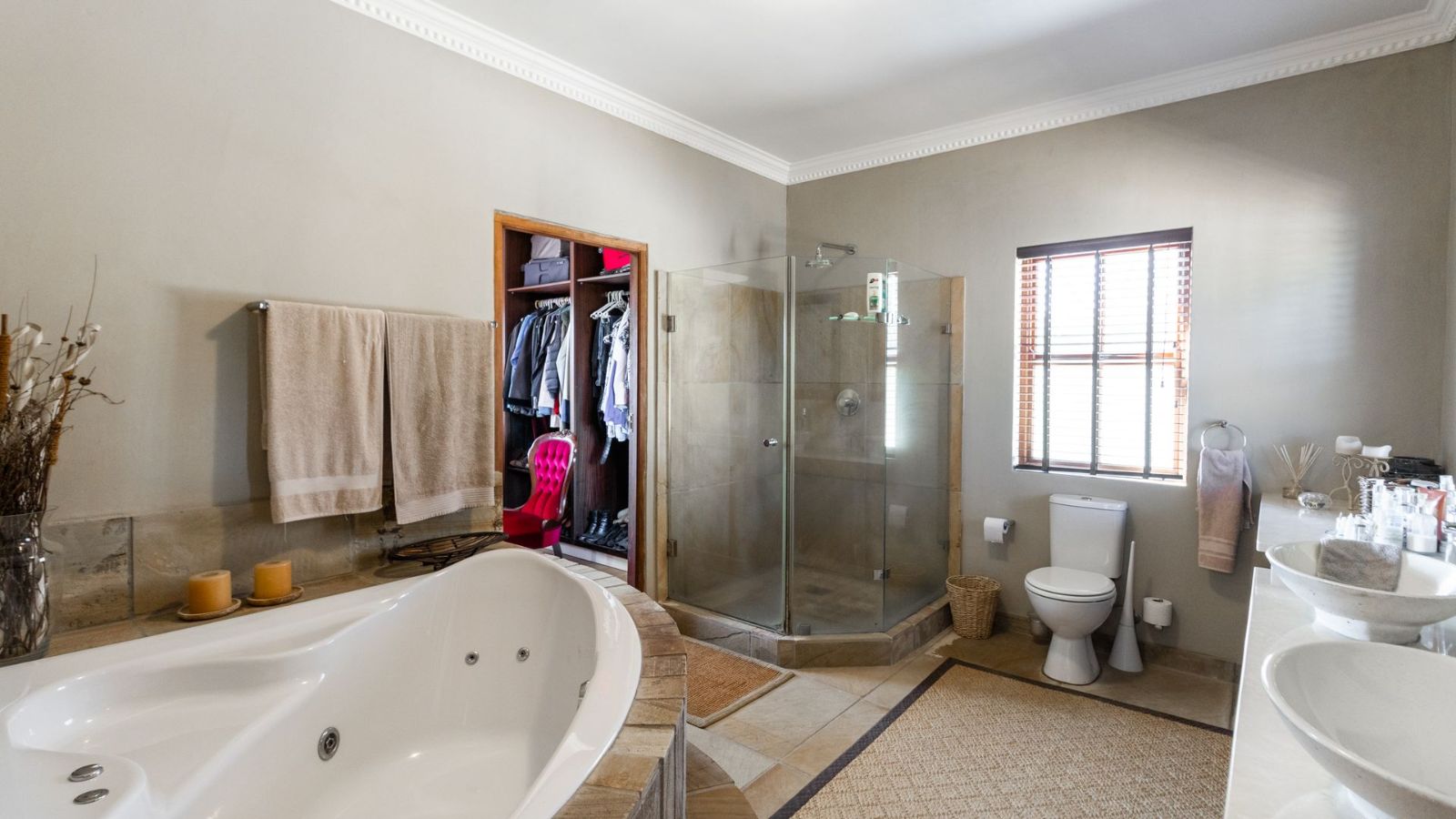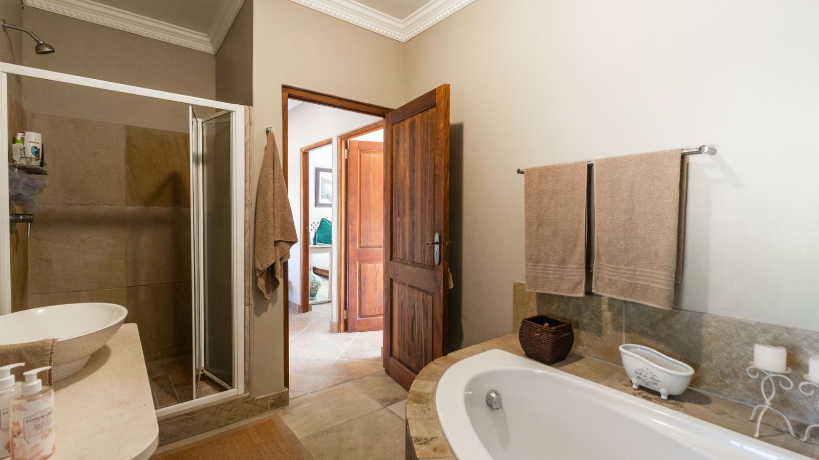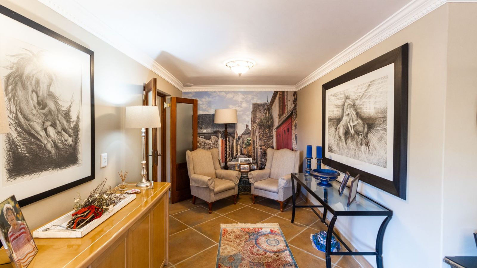 Escape to the Main bedroom, complete with its own lounge, walk-in, ensuite-bathroom, fireplace, small library and office space on the top floor. Two bedrooms share a bathroom whereas the fourth guest bedroom with on-suite bathroom is tucked away on the other side of the house.