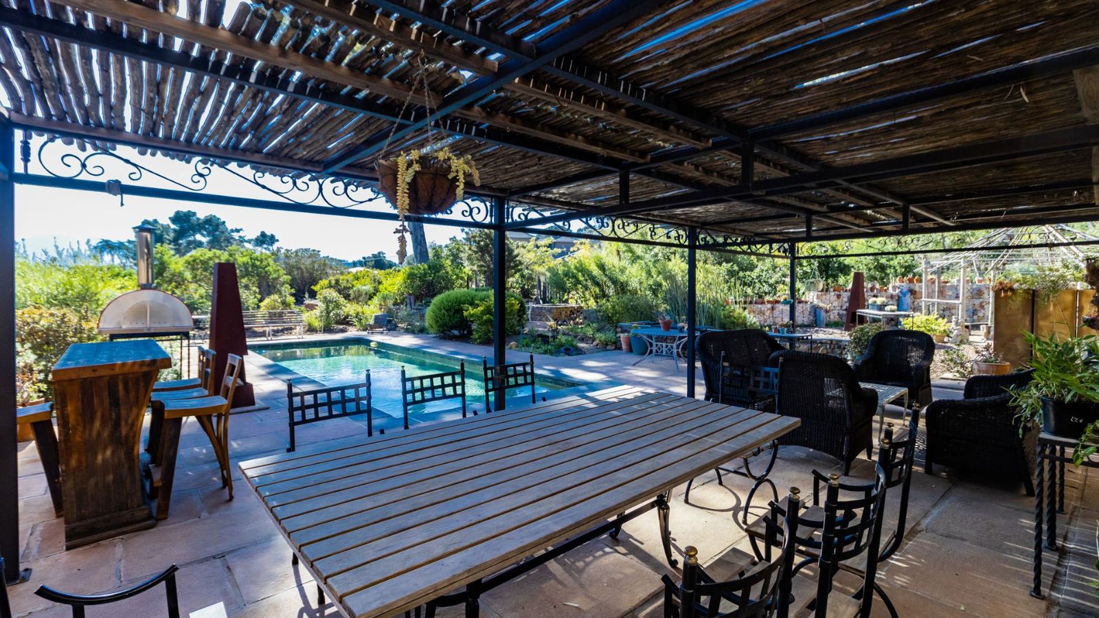 This One-hectare property exudes serenity; the Conde Nast-featured garden and olive grove embrace the main house, garages, verandah and pool area, as well as the stables/studio on the lower side of the property.