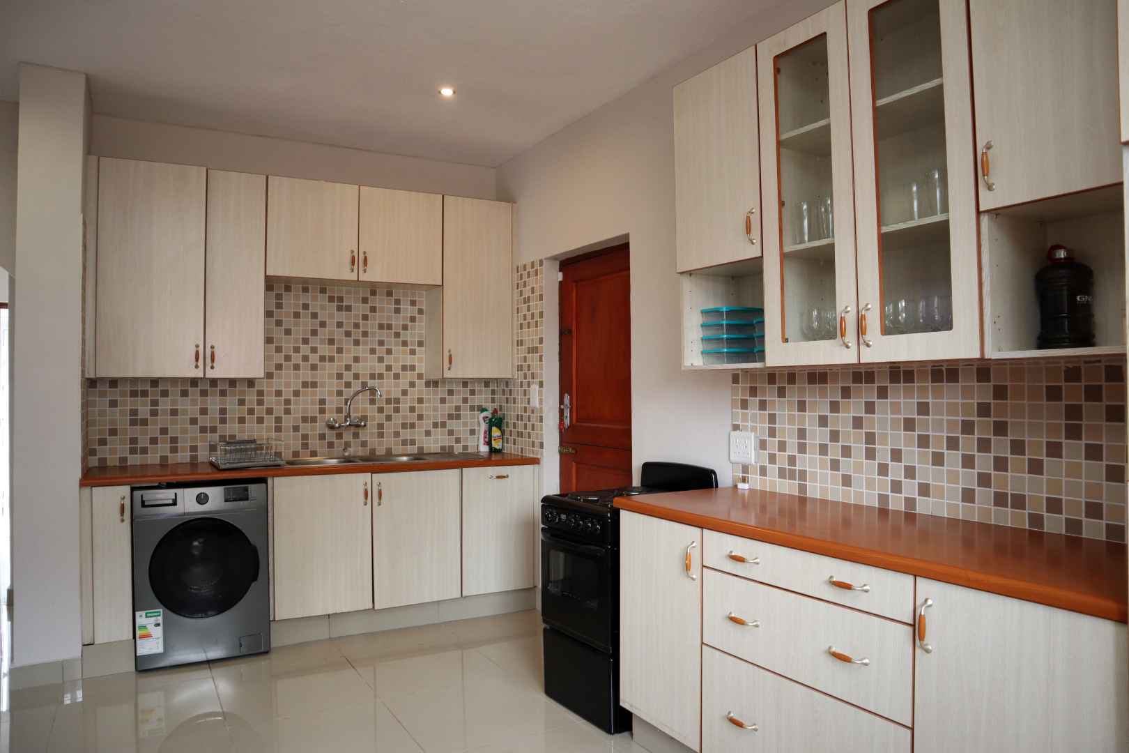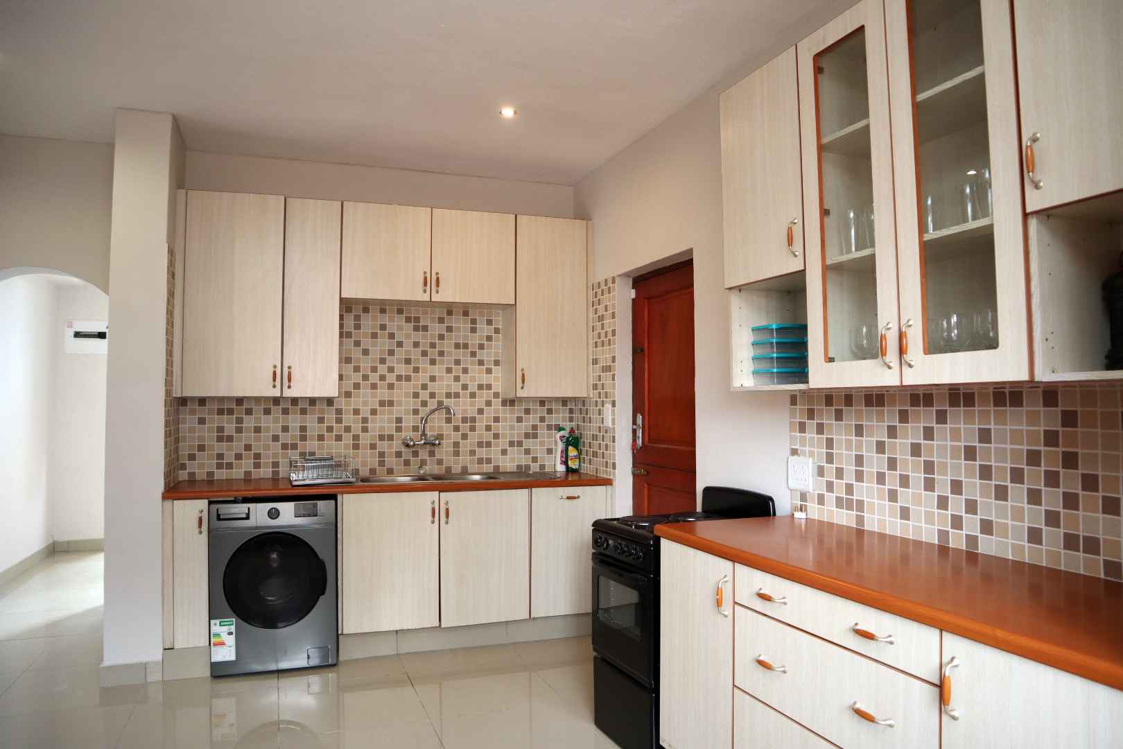 A spacious communal kitchen shared by two of the rooms, equipped with essential appliances.