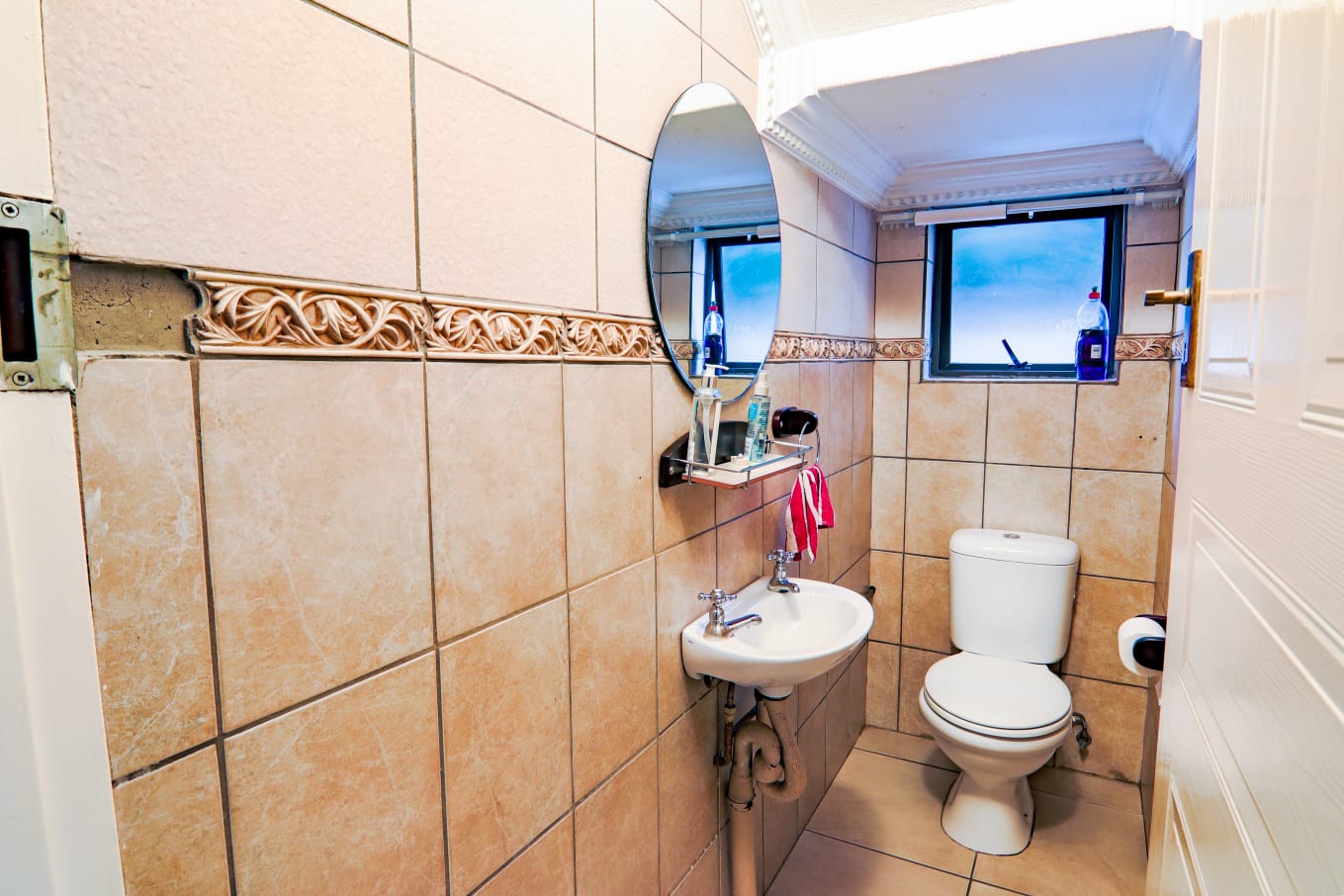 A well-appointed kitchen , featuring granite countertops, ample storage, and a separate scullery with space for three appliances. A guest toilet on the ground floor adds to the home’s practicality.