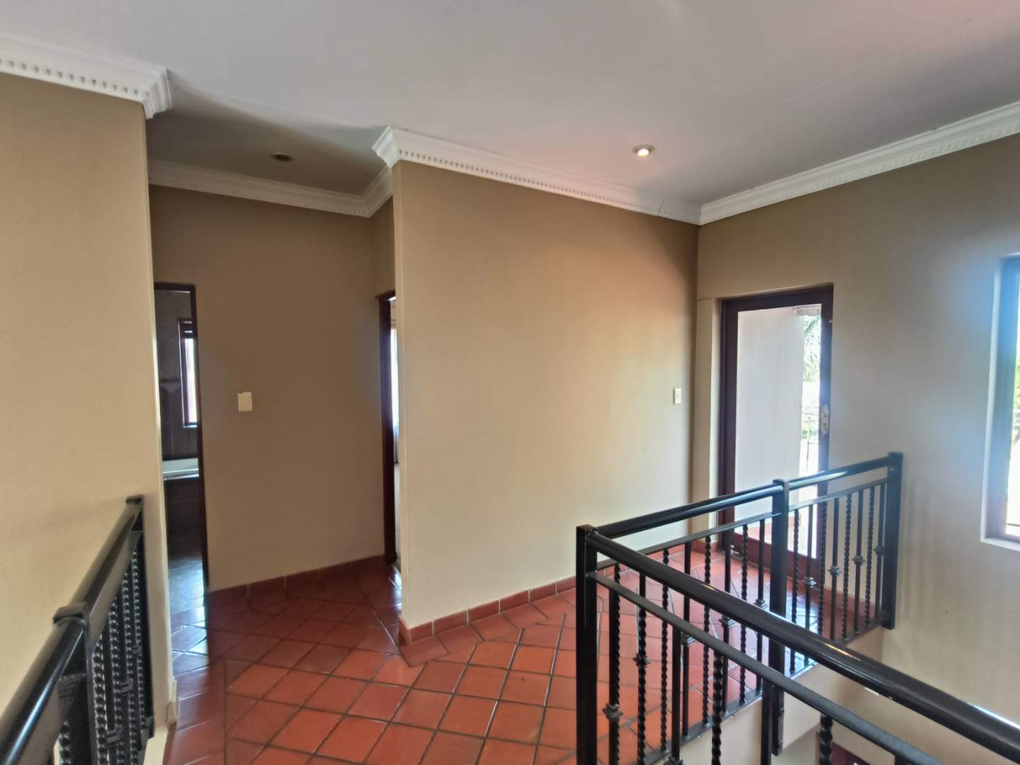 Upstairs you'll find three spacious bedrooms, all overlooking the peaceful courtyard and sparkling pool. The master suite is a true retreat — featuring luxurious underfloor heating, a stylish dressing area, full bathroom with double basins, ambient coloured lighting, and access to a large private balcony. A second bathroom completes the upper level.