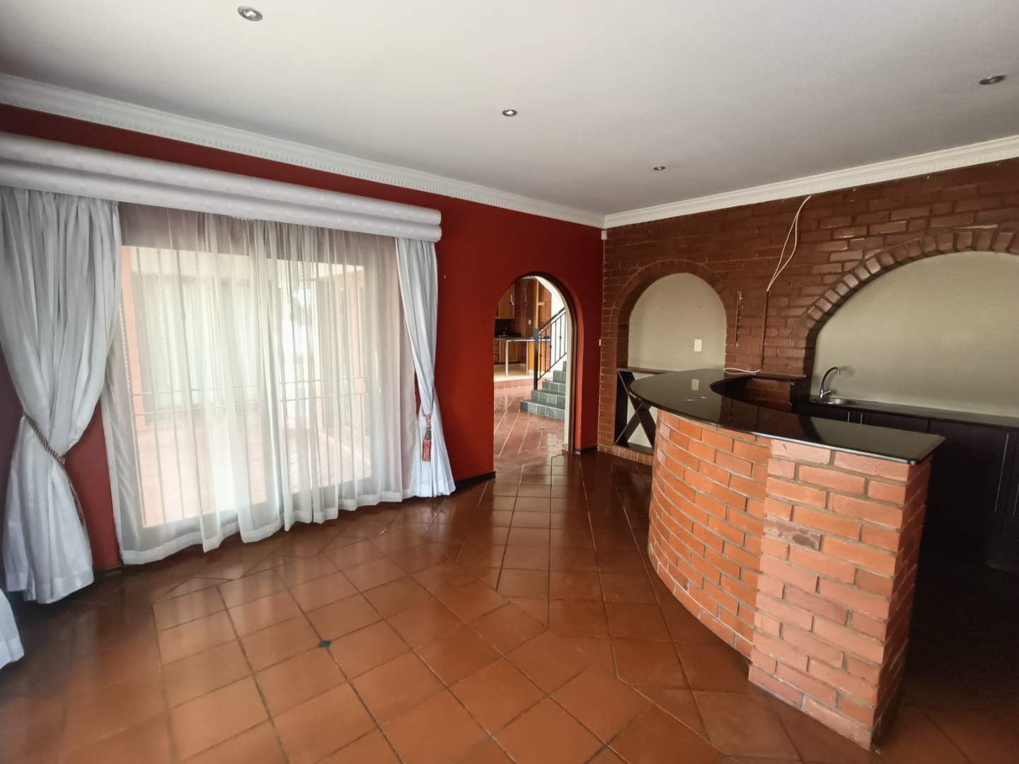 The lounge area, warmed by a cozy fireplace, is perfect for relaxed evenings. There are also a guest toilet and a stylish bar area flowing out to the patio — perfect for entertaining. Enjoy long summer days with a built-in braai and fire pit — your outdoor entertaining sorted.