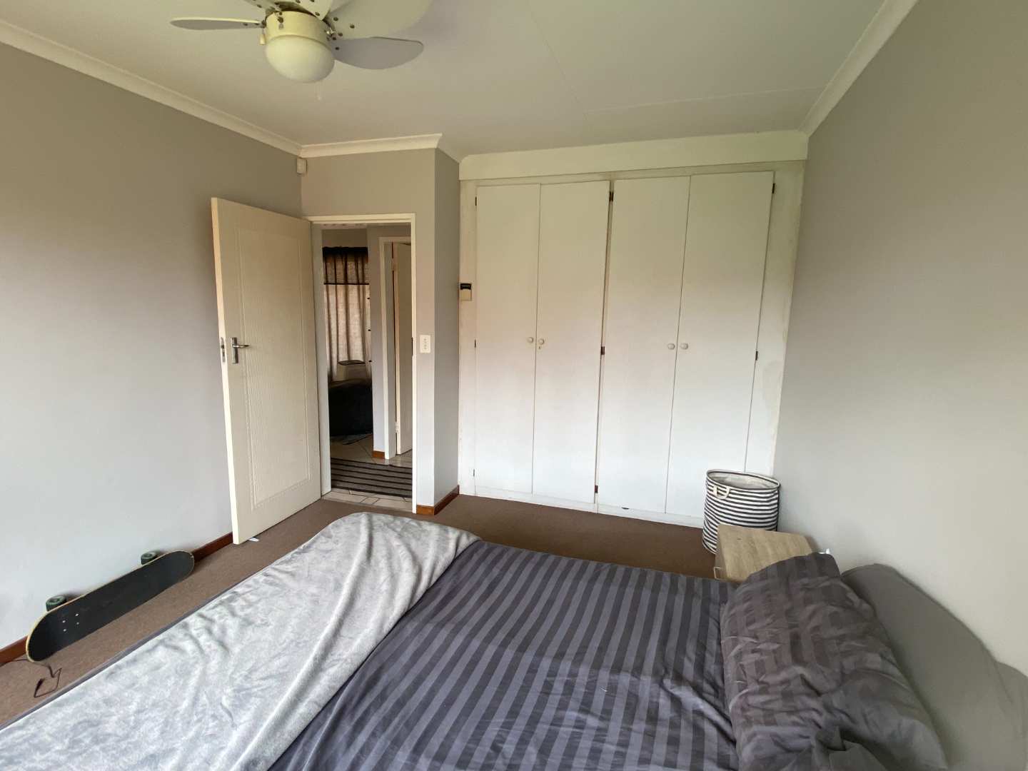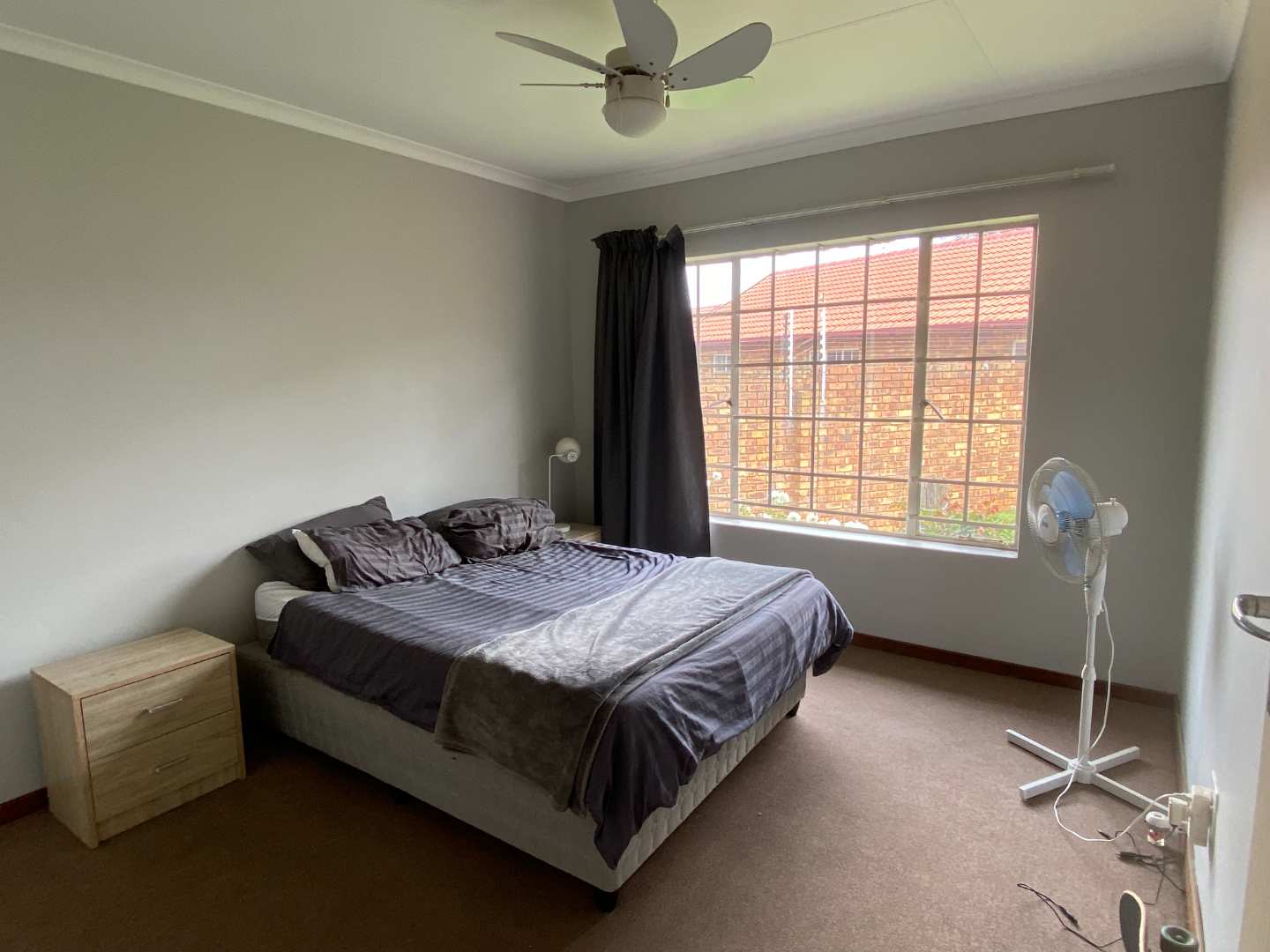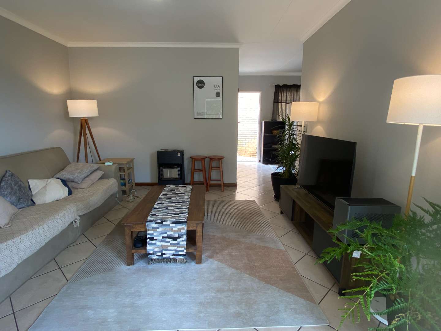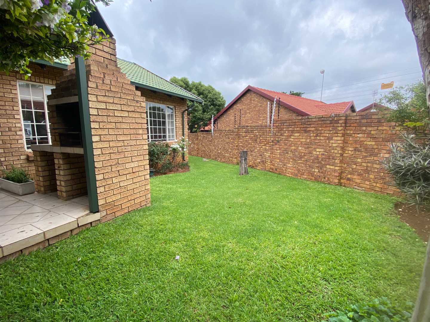 Featuring two carpeted bedrooms and a full bathroom with both a bath and a shower, the home is designed for comfortable, practical living. The living and dining areas flow seamlessly onto a large covered patio fitted with a built-in braai, making it the perfect setting for effortless entertaining.