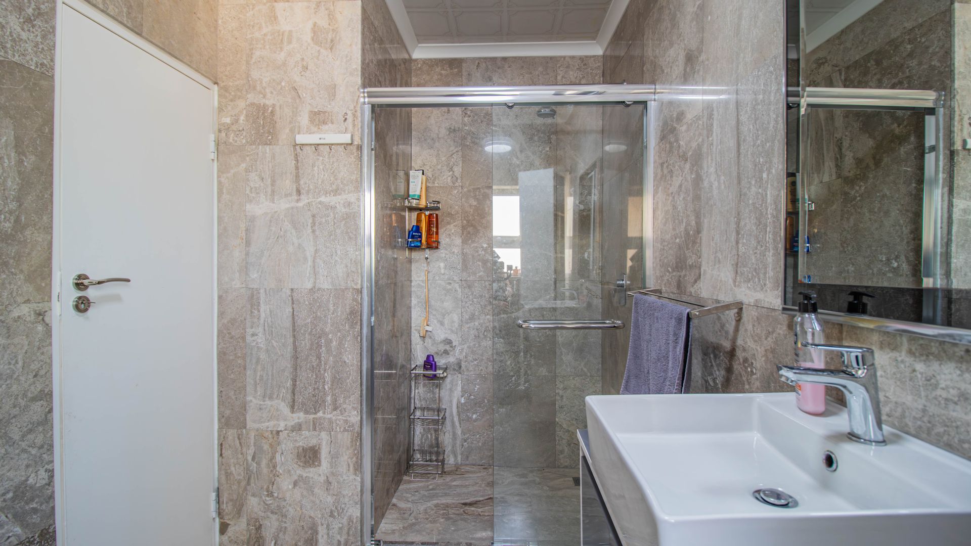 Marble Flooring: Elegant and easy-to-maintain flooring throughout the living areas.