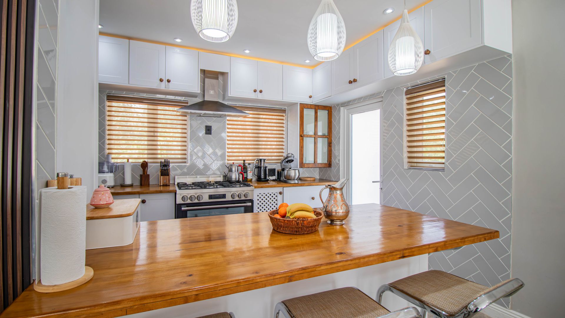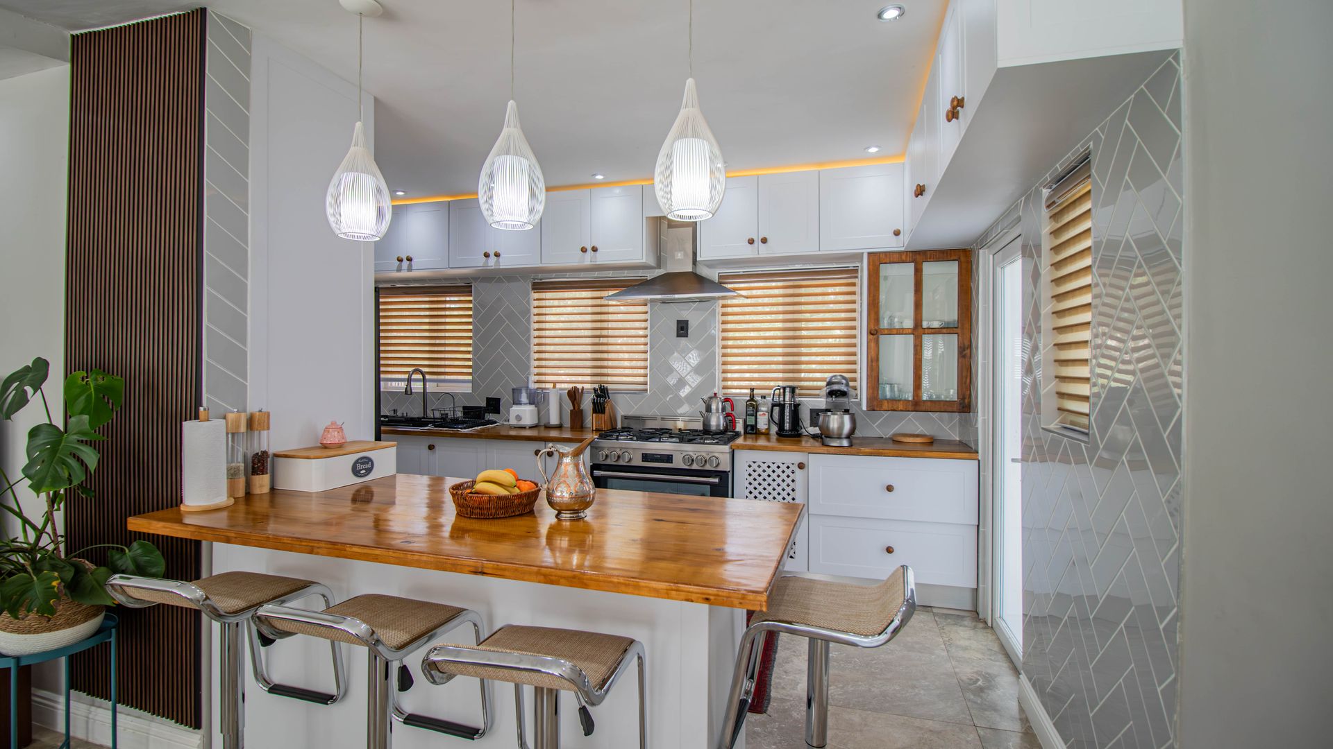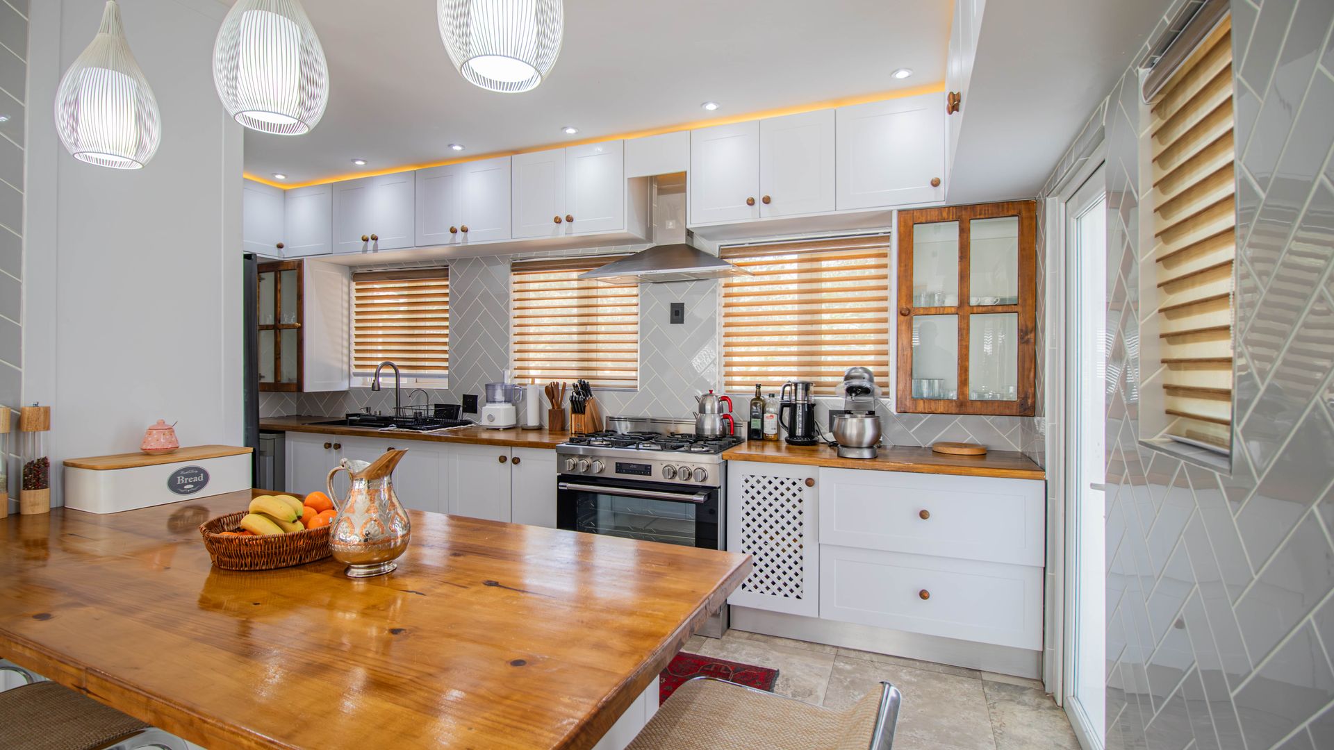 Modern Kitchen: Ample cupboard space, water filtration system, and LED lighting with dimmers.