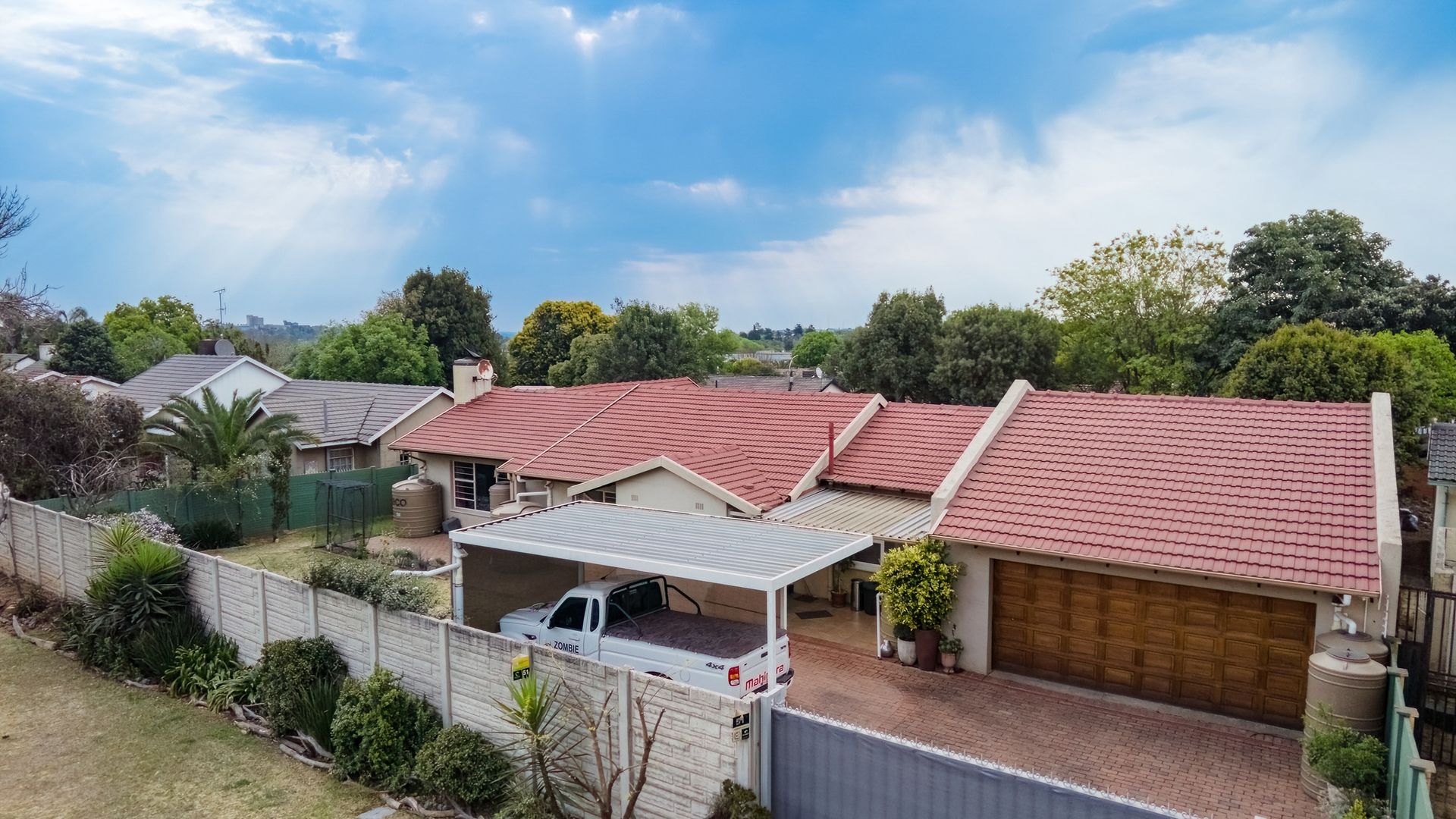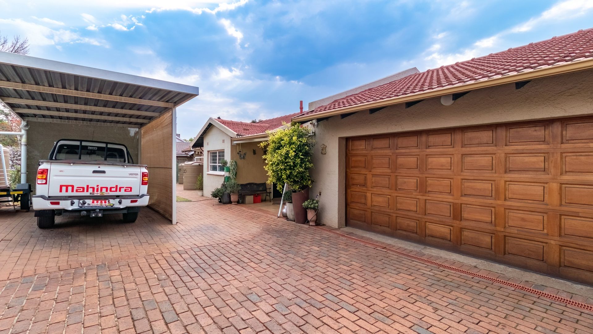 Double automated garage, single carport, plus secure parking for up to 6 vehicles