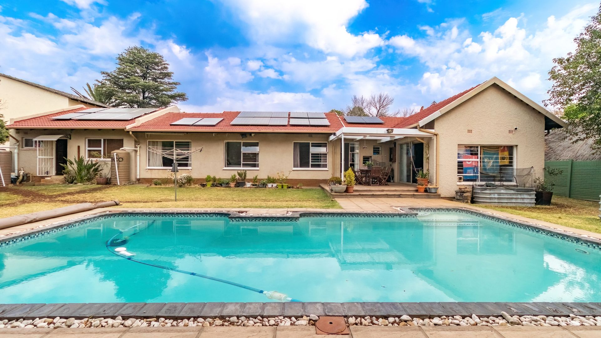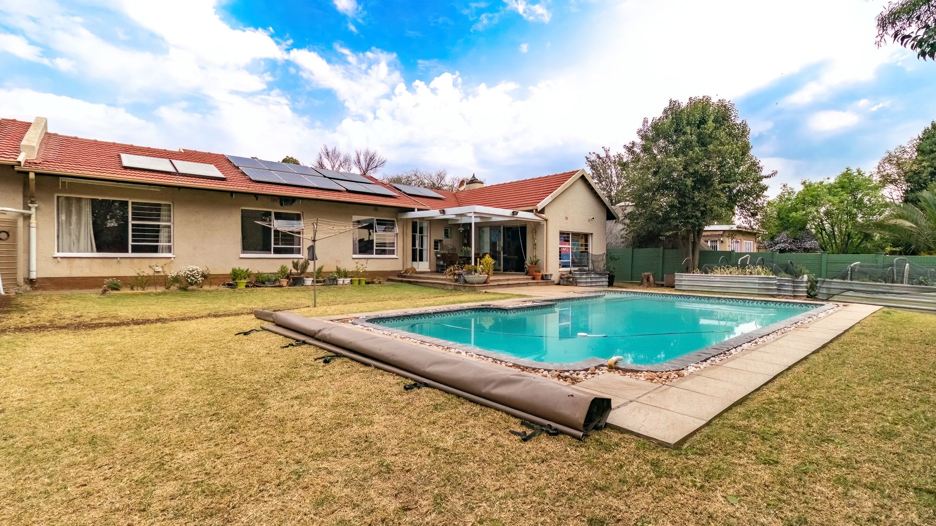 Swimming pool with new cover and Smart Switch Pool Pump