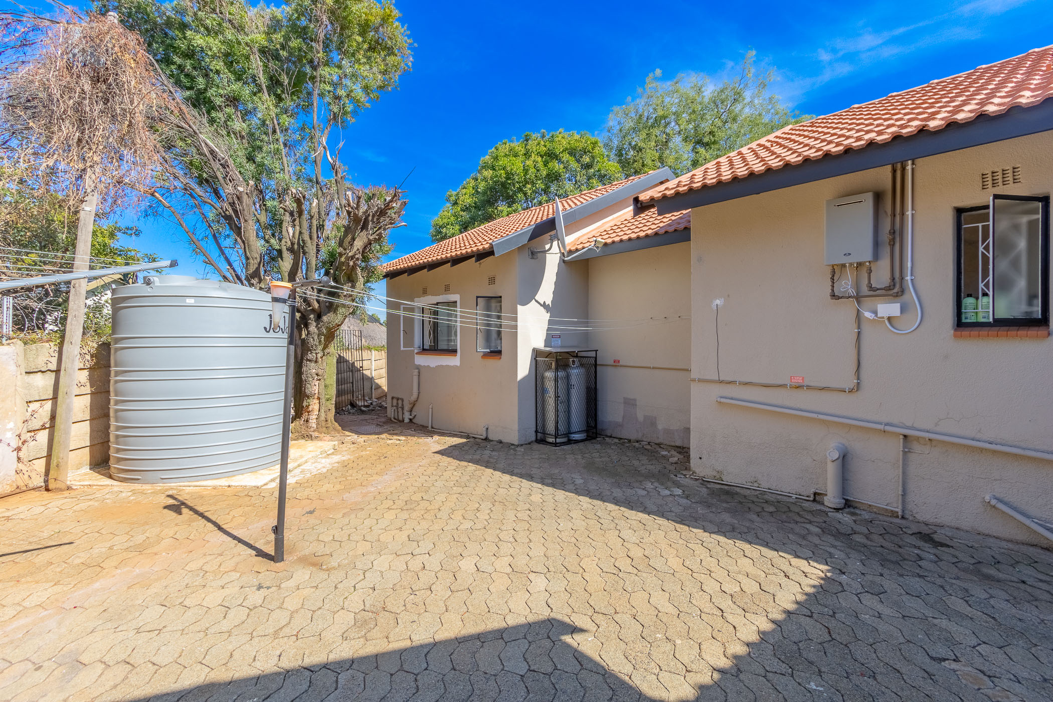 The property is secured with electric fencing and an alarm. The sustainable features include a municipal filled water storage tanker and a 20L fan forced electric operated gas geyser. There is also an option of a solar setup which needs installation, but this is subject to the offers received.