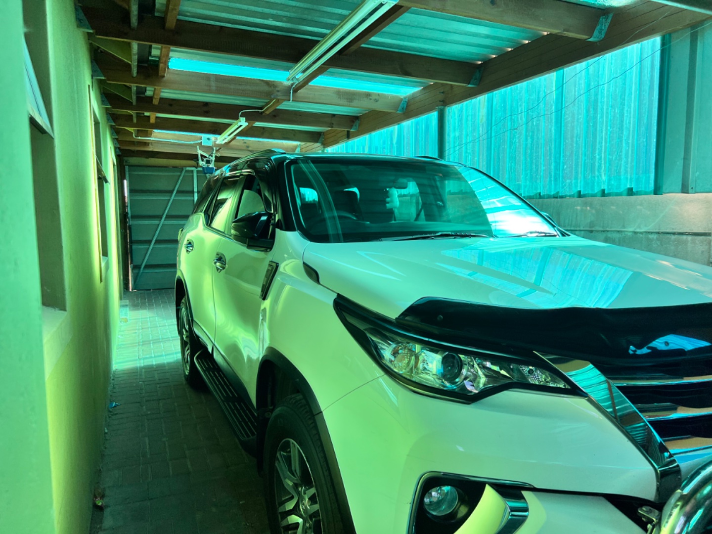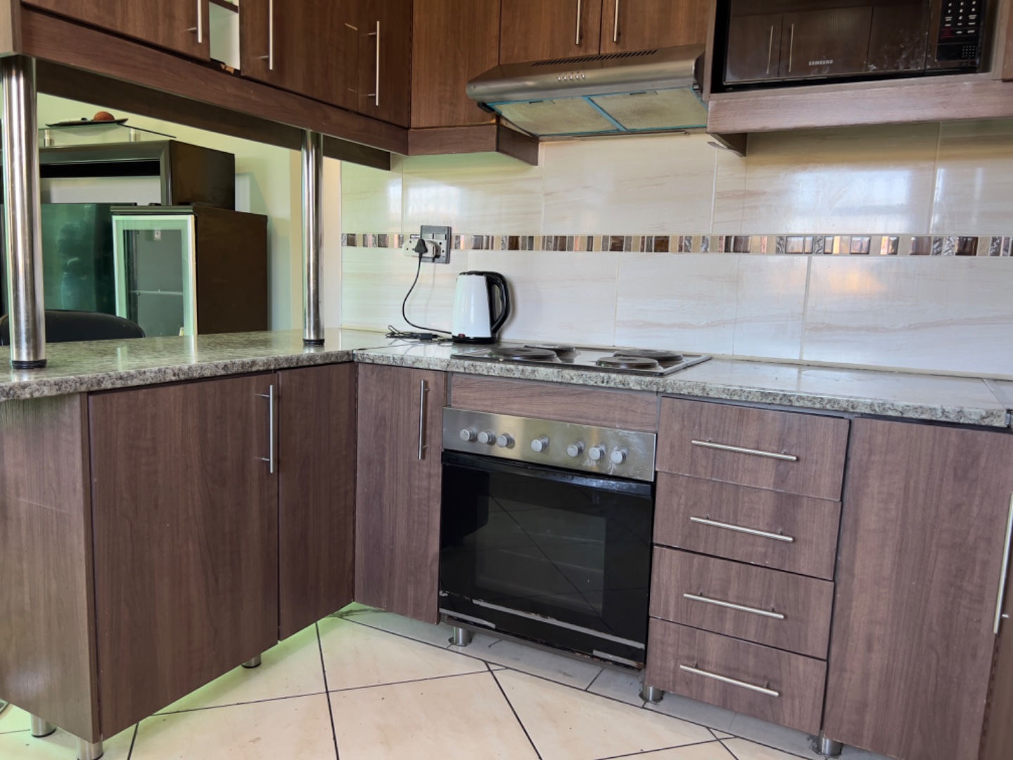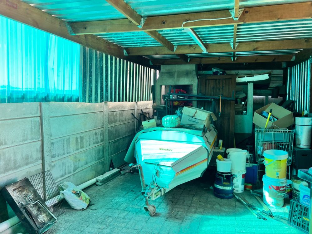 The garage is automated with enough parking for three vehicles and has a braai area.