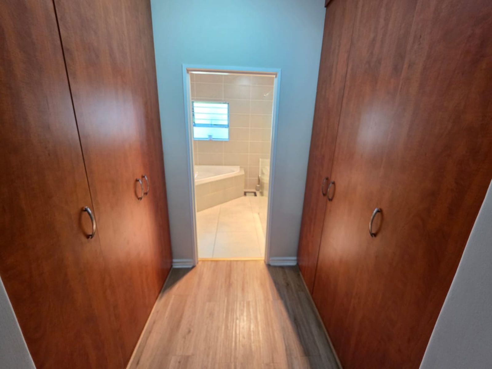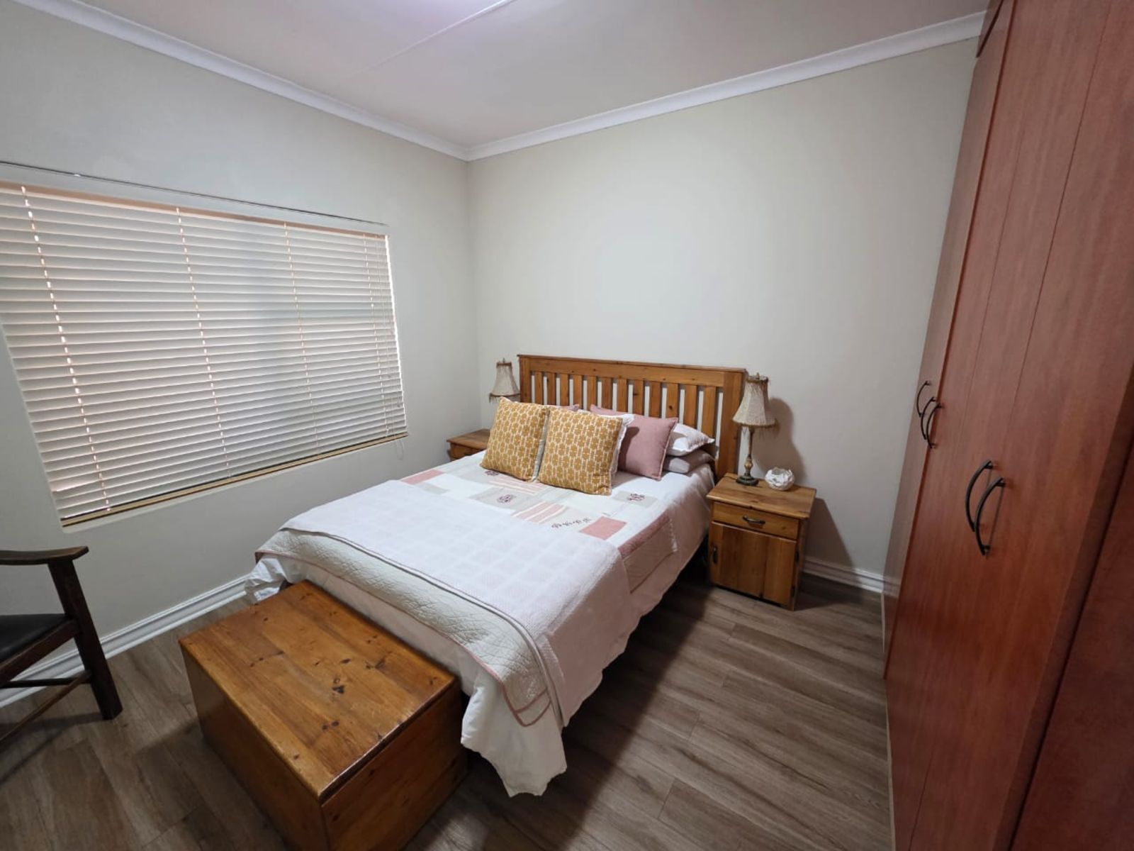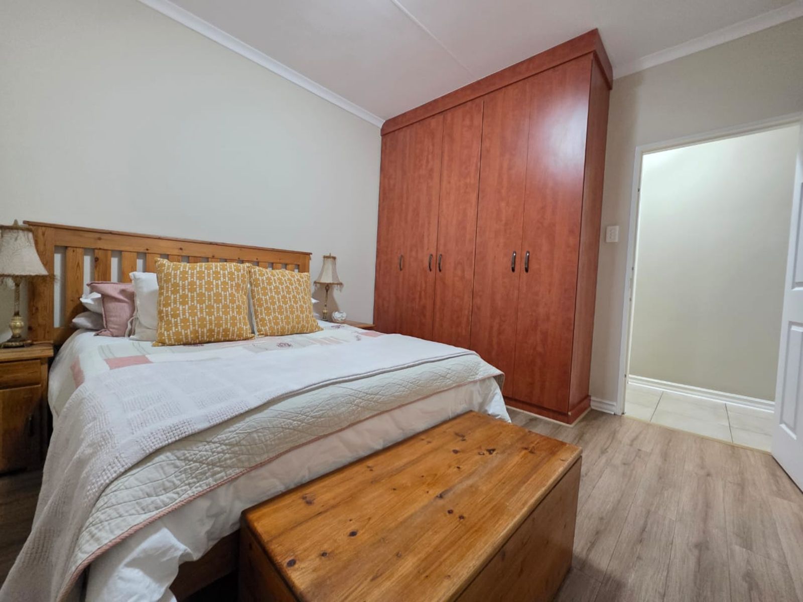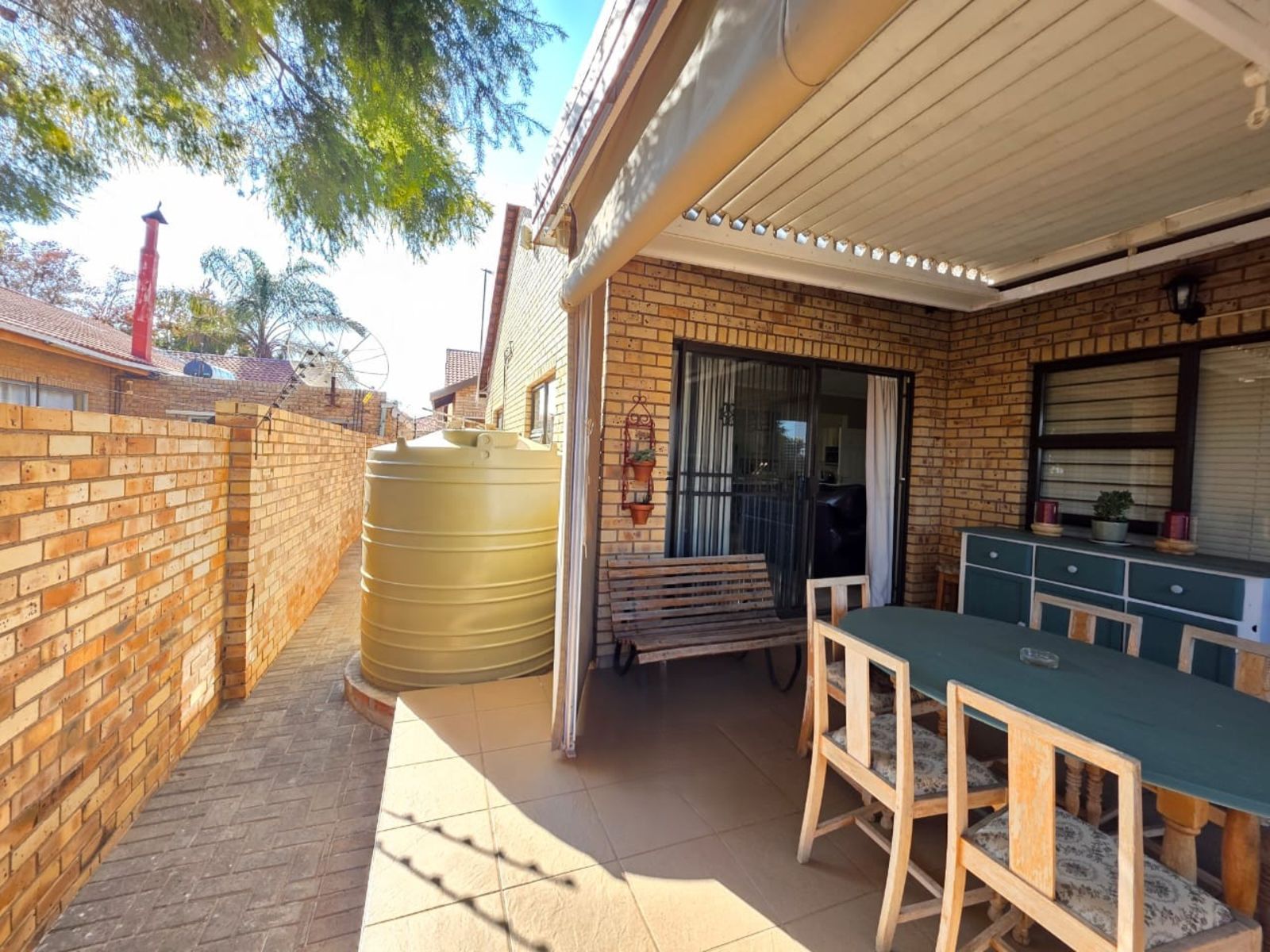 This immaculate three-bedroom, two-bathroom family home is nestled in a sought-after neighborhood and offers modern comfort, security, and style. The heart of the home is the open-plan lounge, dining room, and kitchen—perfectly designed for family living. The kitchen is a chef’s delight, boasting built-in cupboards, a gas hob with under-counter oven, extractor fan, pantry, scullery, and a separate laundry area. A water purification system adds a touch of everyday luxury.