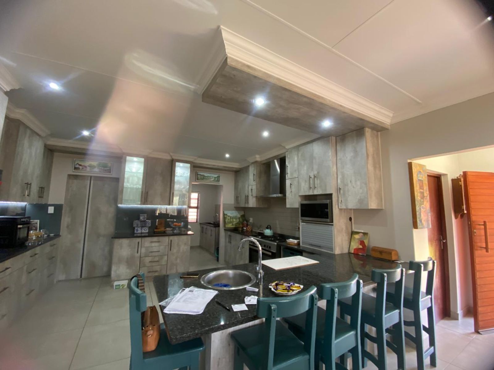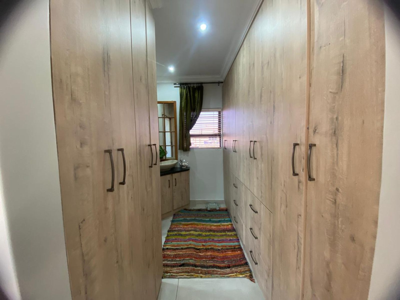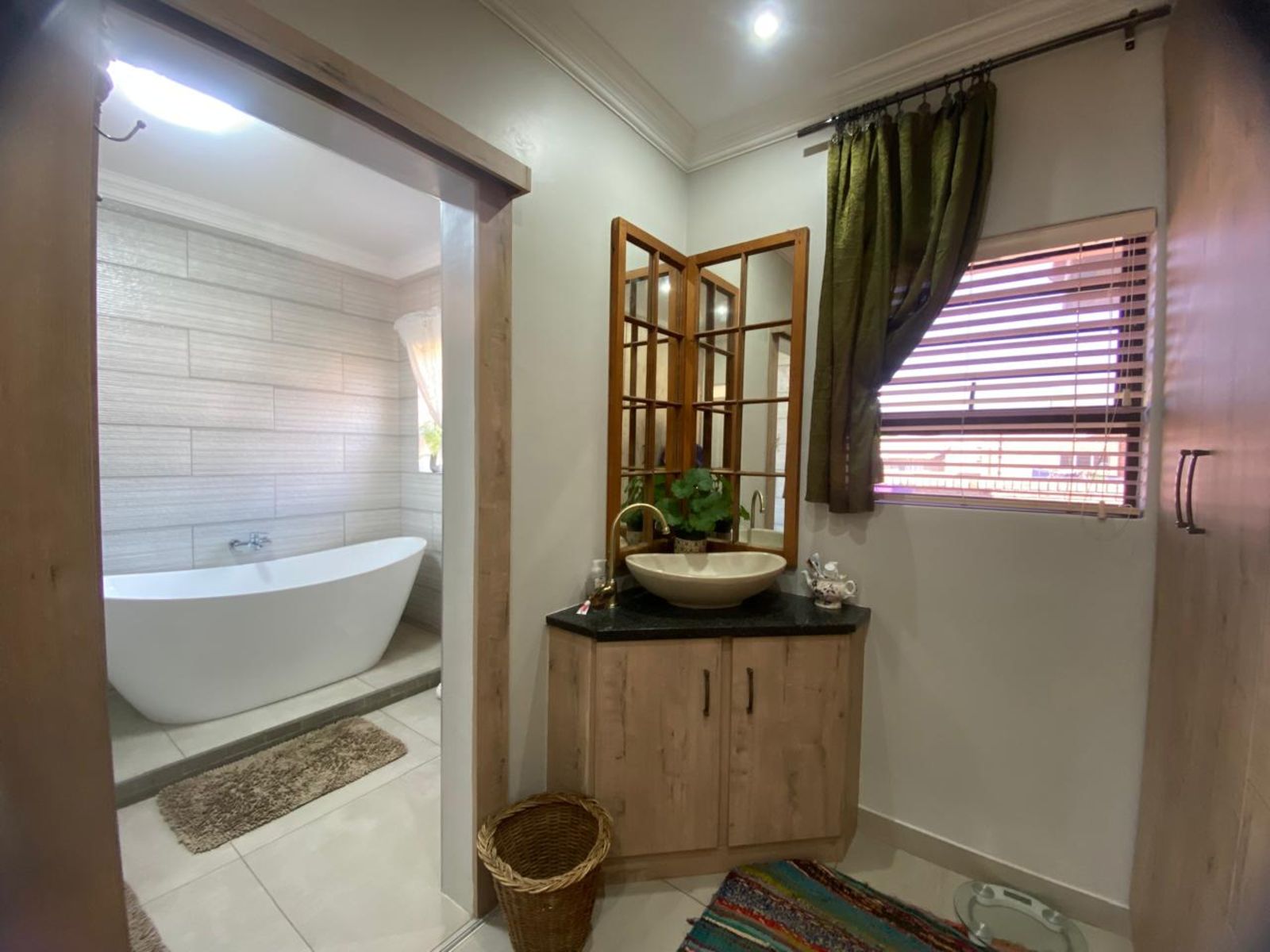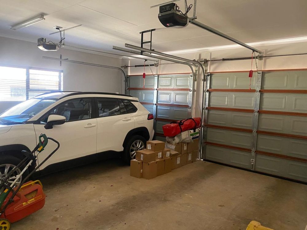 Additional features include a double garage with electric doors, secure shade net parking, and a beautifully maintained garden with an irrigation system. A borehole and Jo-Jo tank provide sustainable water solutions, while solar panels and an inverter ensure reliable backup power.