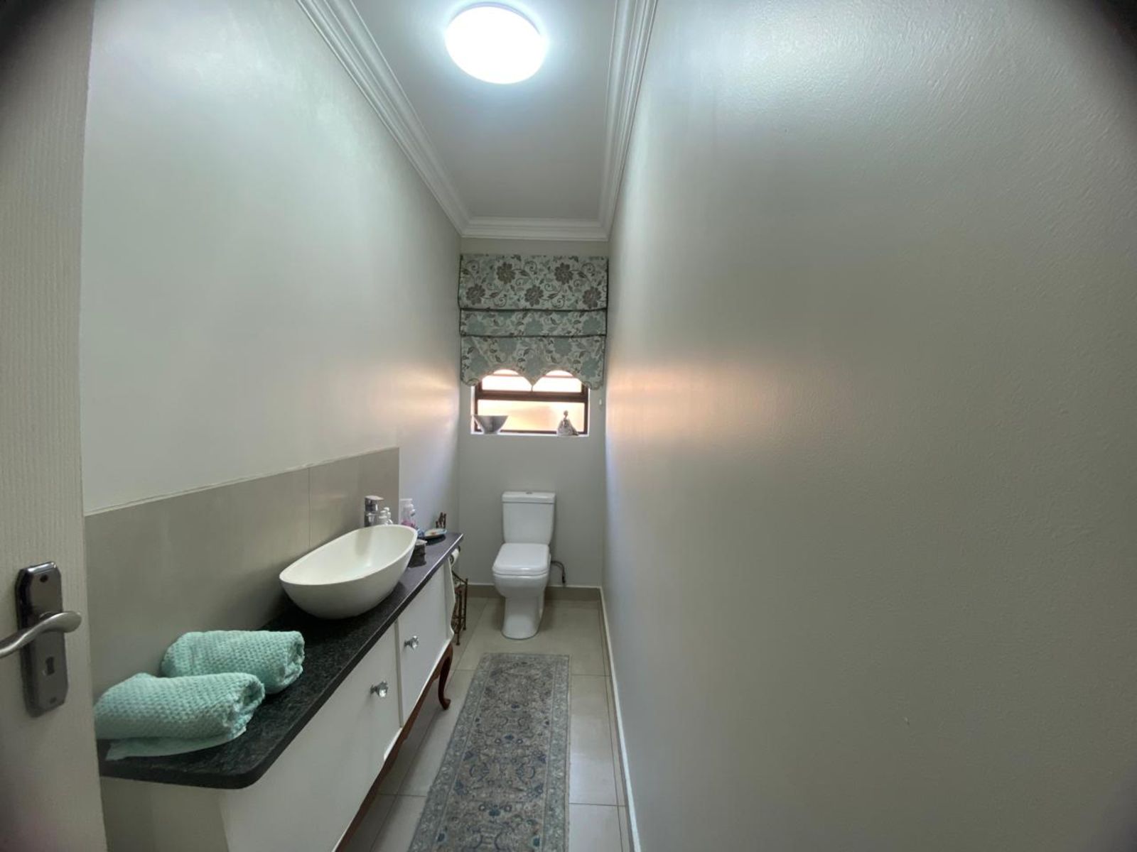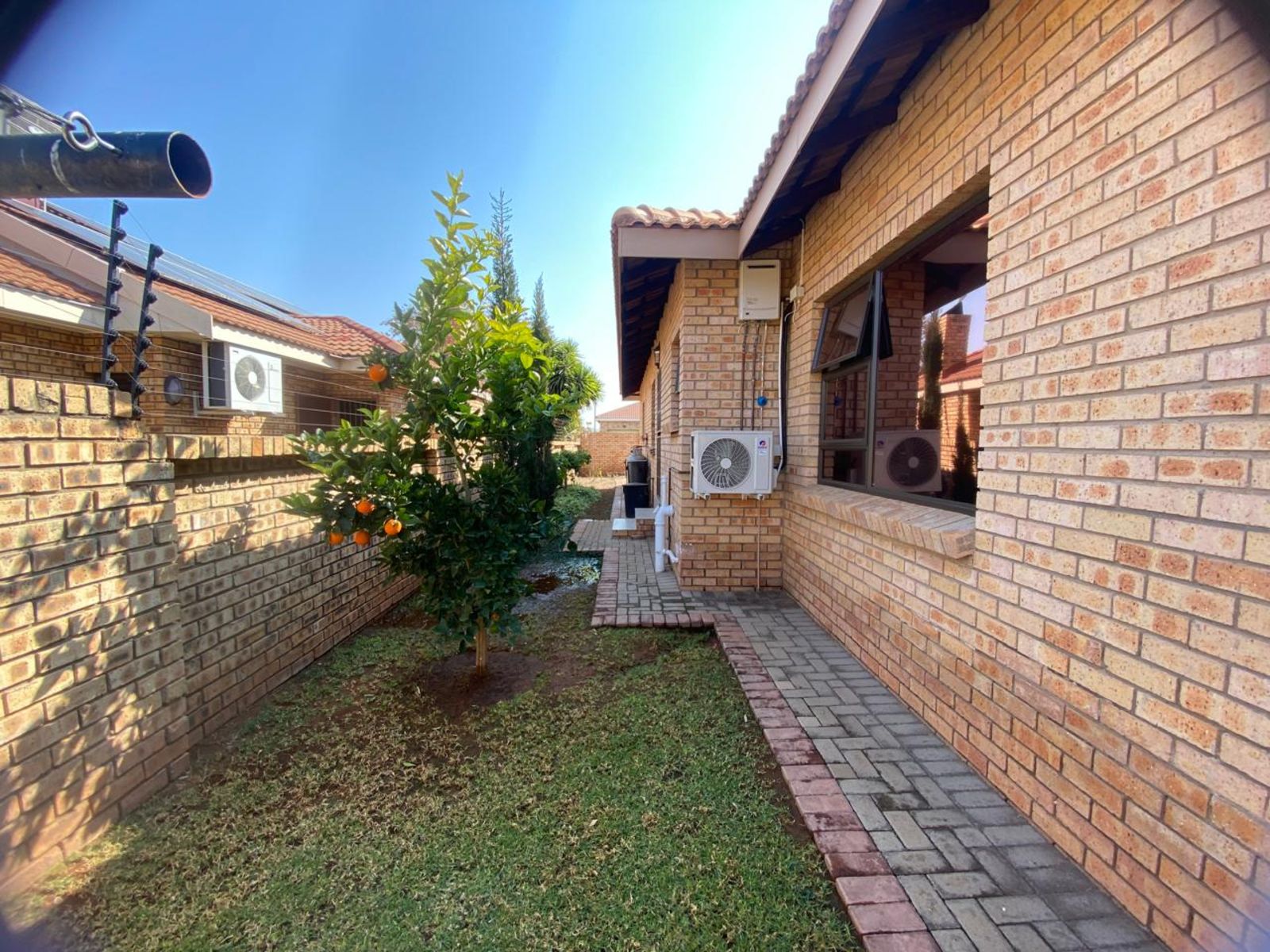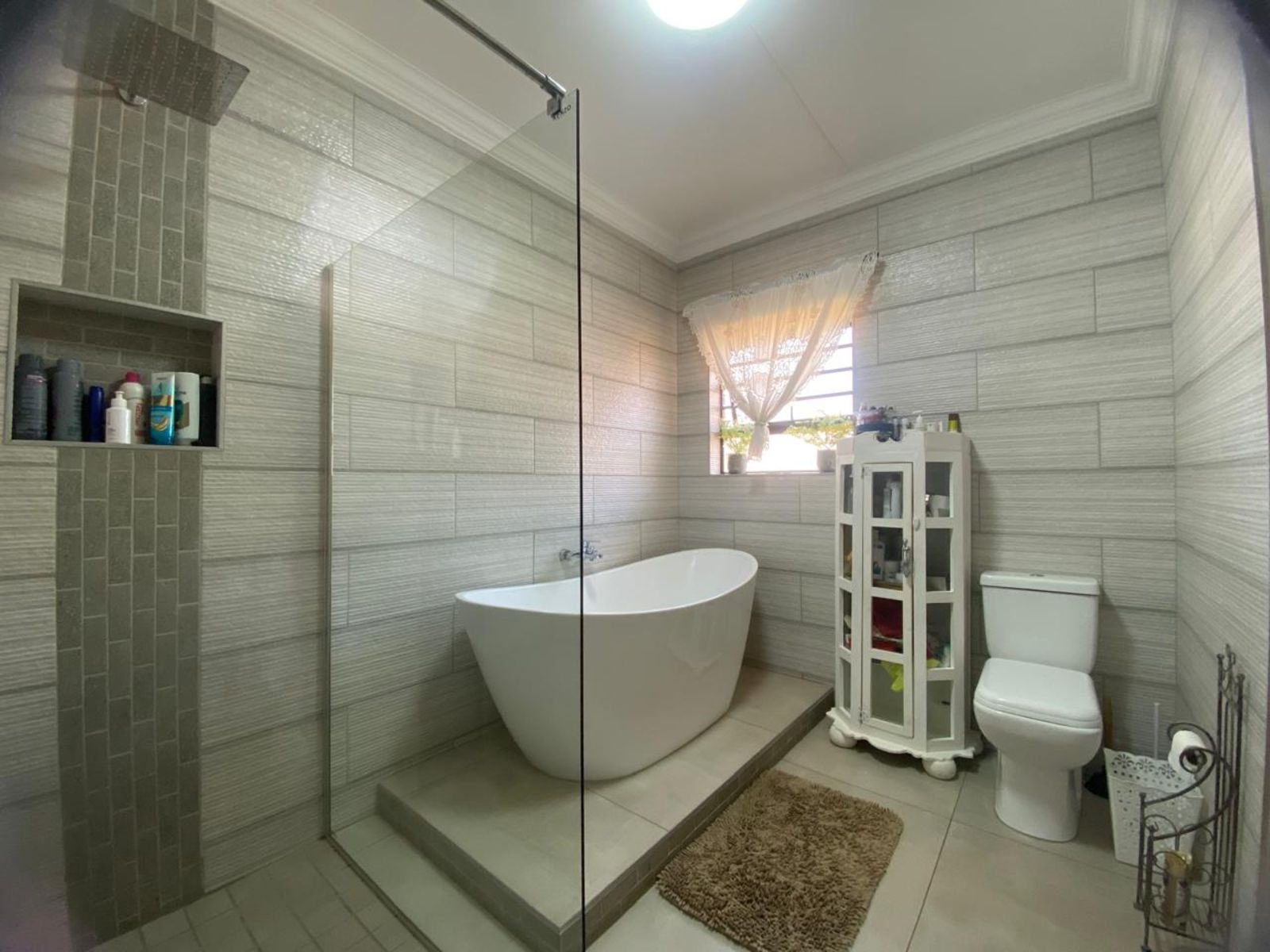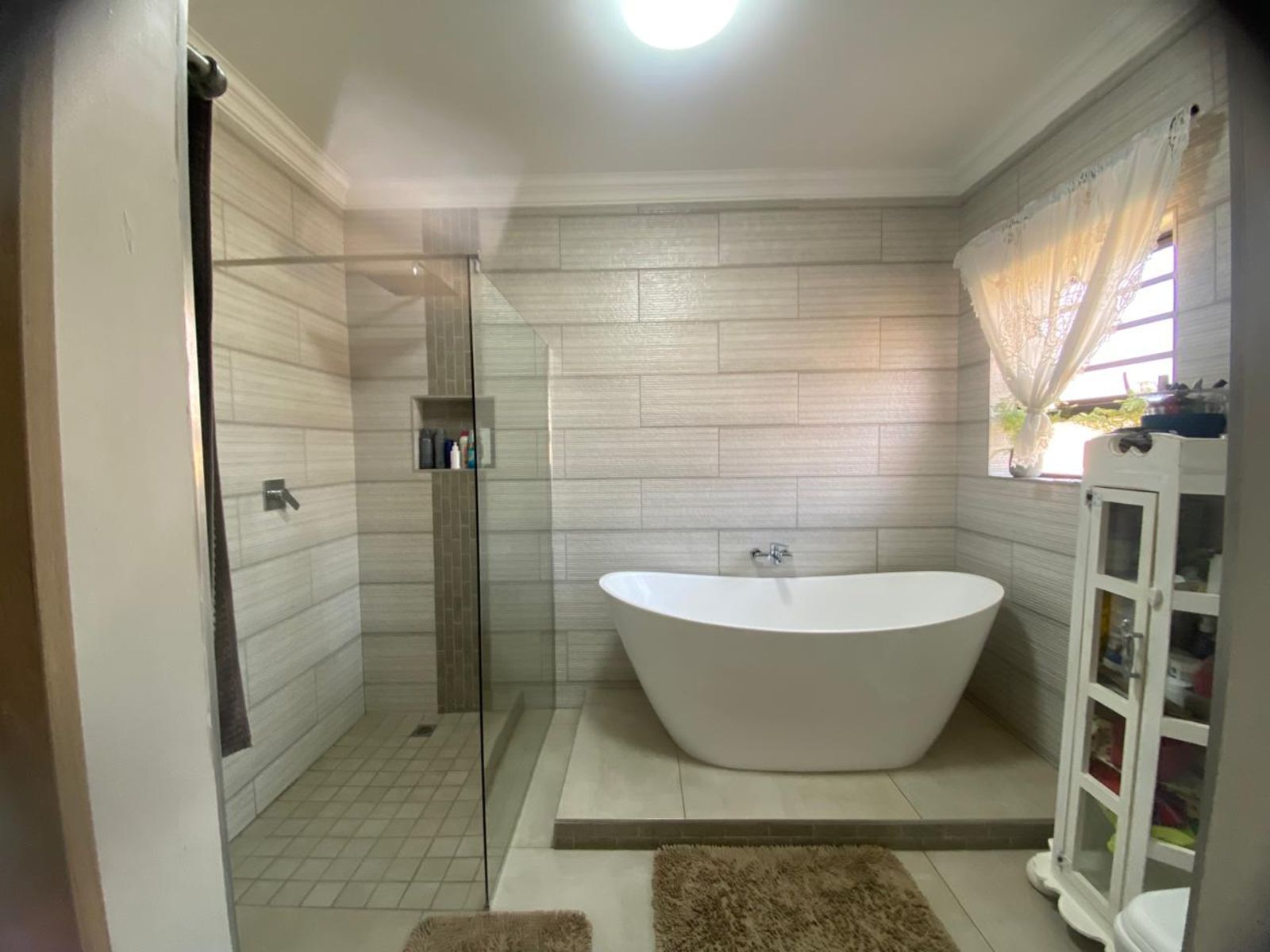 Additional features include a double garage with electric doors, secure shade net parking, and a beautifully maintained garden with an irrigation system. A borehole and Jo-Jo tank provide sustainable water solutions, while solar panels and an inverter ensure reliable backup power.