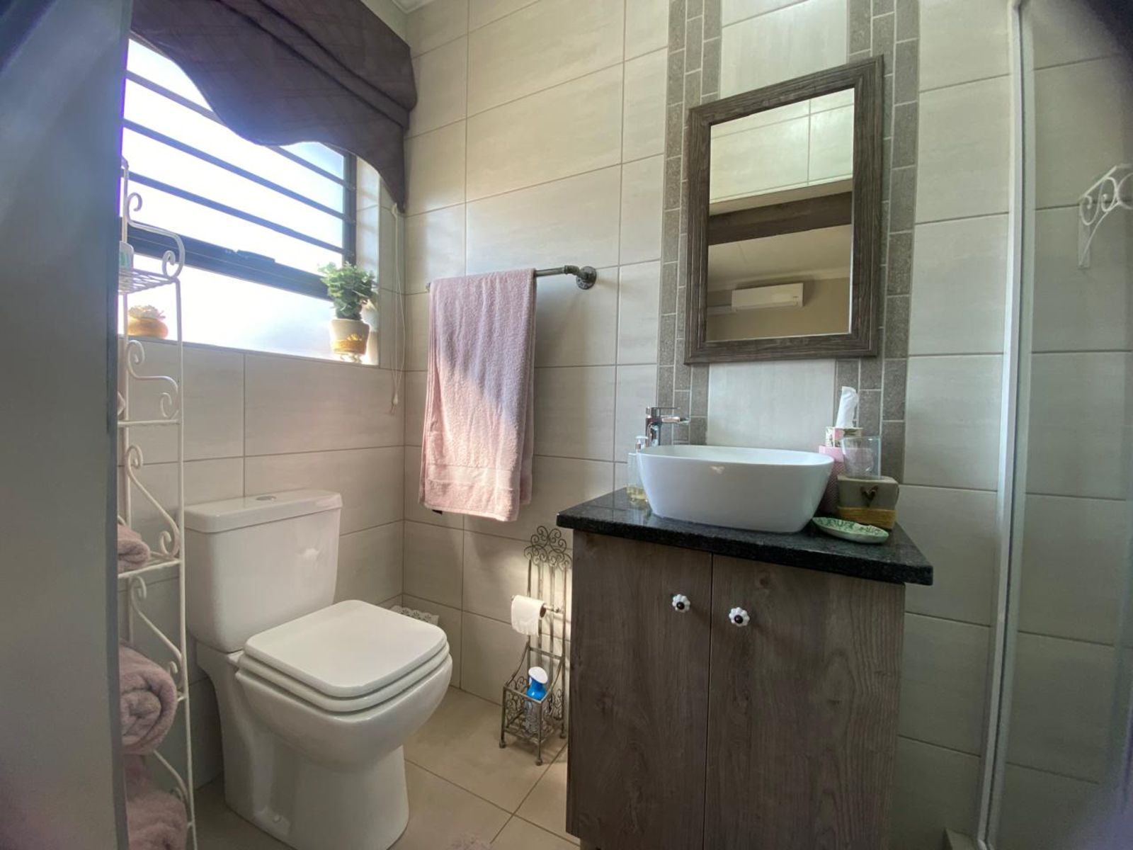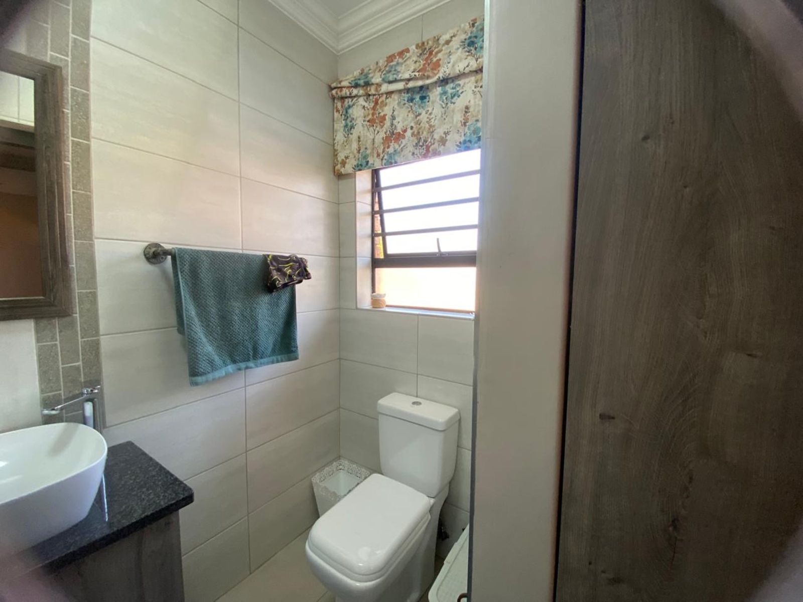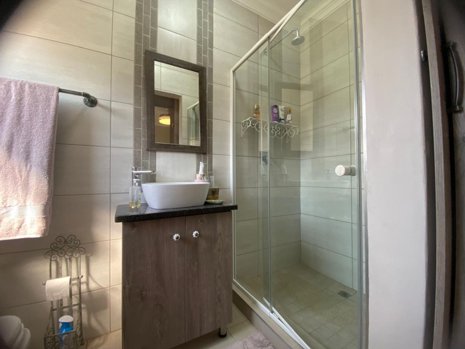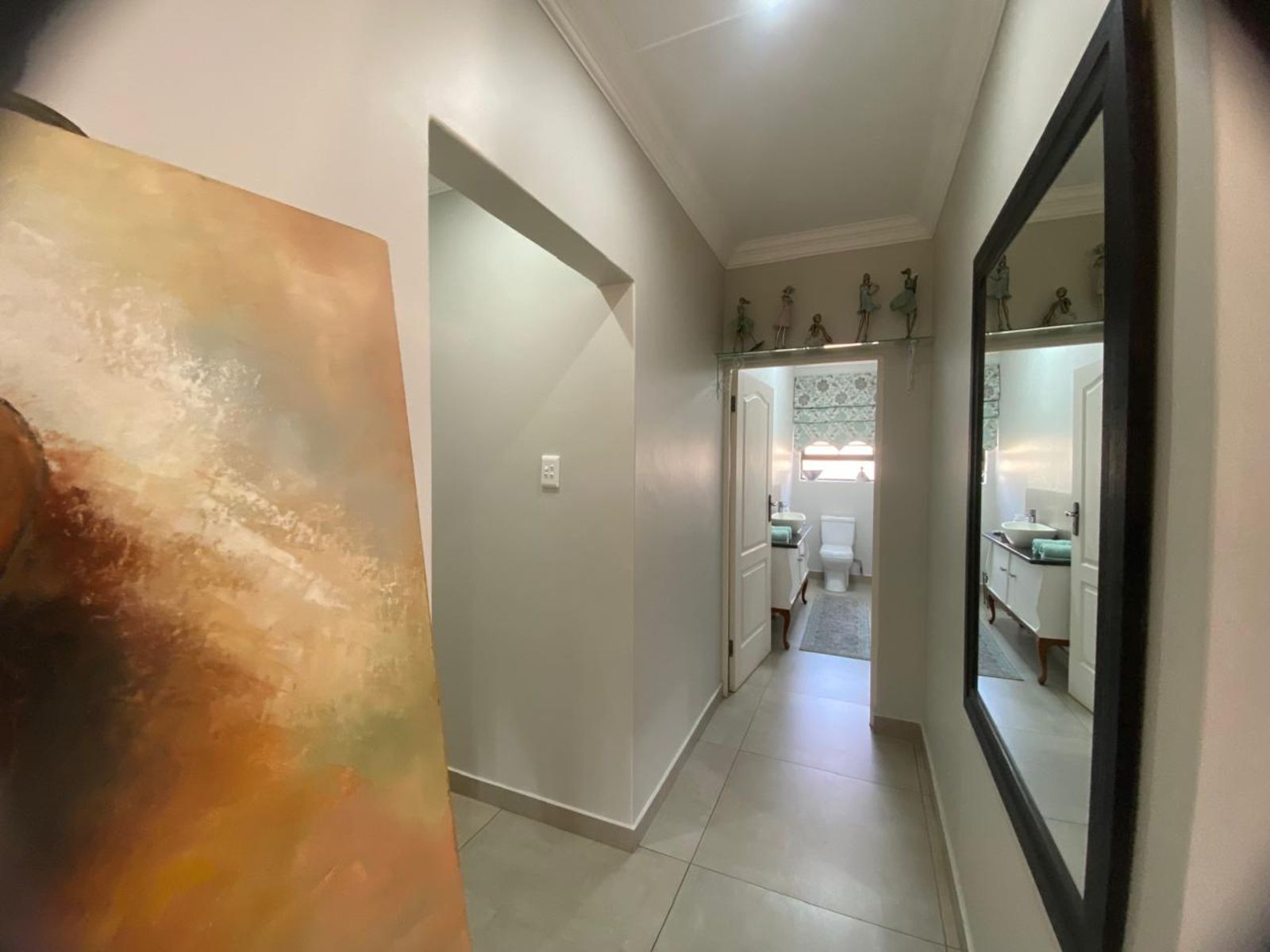 Additional features include a double garage with electric doors, secure shade net parking, and a beautifully maintained garden with an irrigation system. A borehole and Jo-Jo tank provide sustainable water solutions, while solar panels and an inverter ensure reliable backup power.