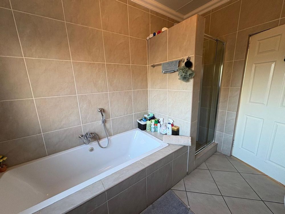 The property offers a sparkling swimming pool, fully fenced and covered, as well as a landscaped garden with irrigation. Security is top-notch with an alarm system, CCTV cameras, electric fencing, an automated garage, and an electric gate.