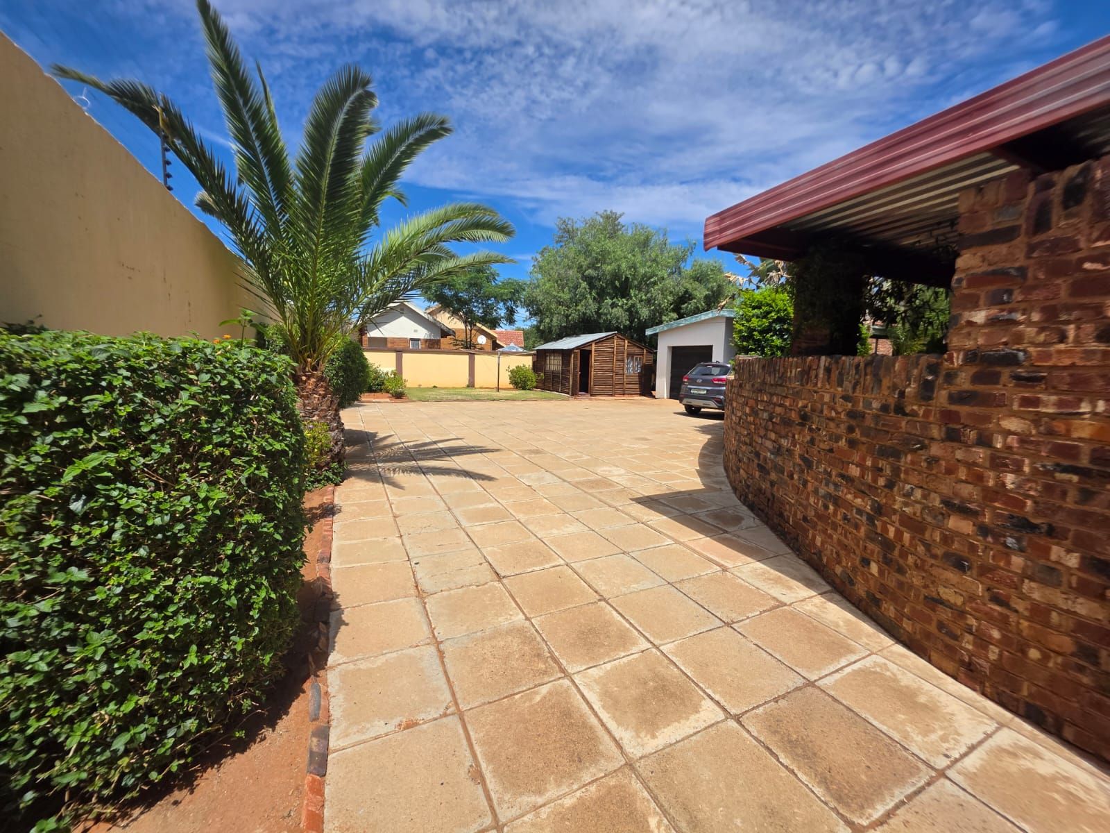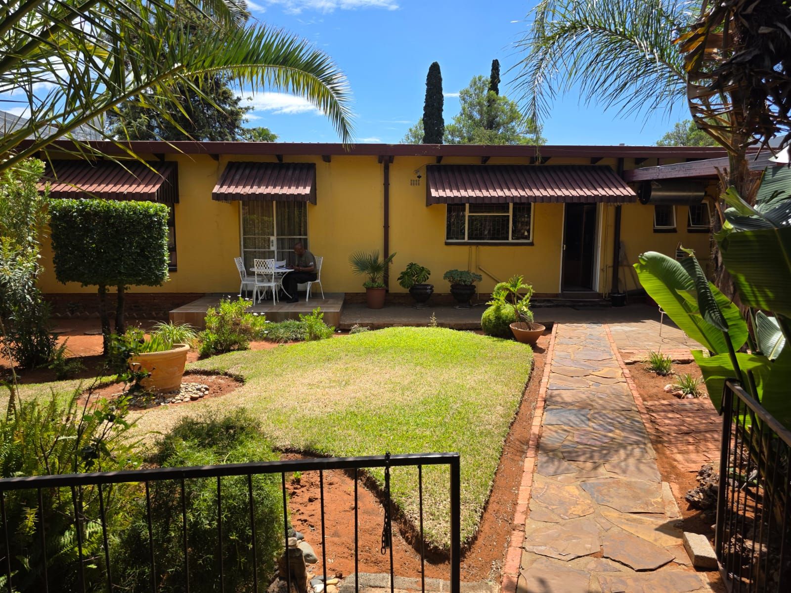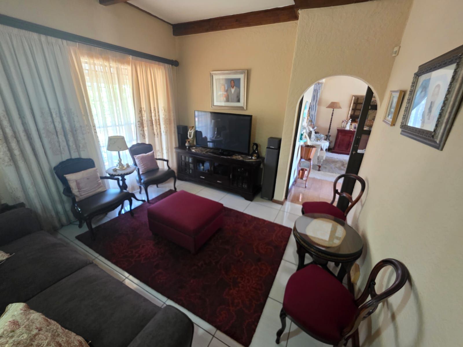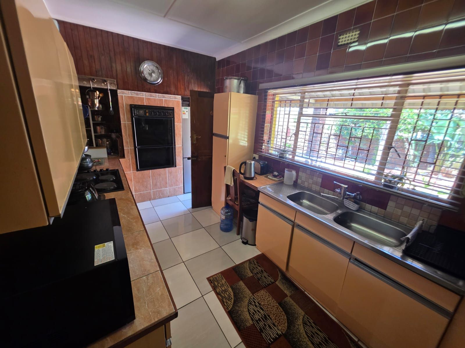 Features include a family room, dining room, study, and a kitchen with built-in cupboards, an eye-level oven, hob, and breakfast nook. The garden offers a borehole, JoJo tank, and patio. Additional features include a single garage, single secure parking, staff accommodation with toilet, and a Wendy house. The property is fully fenced.