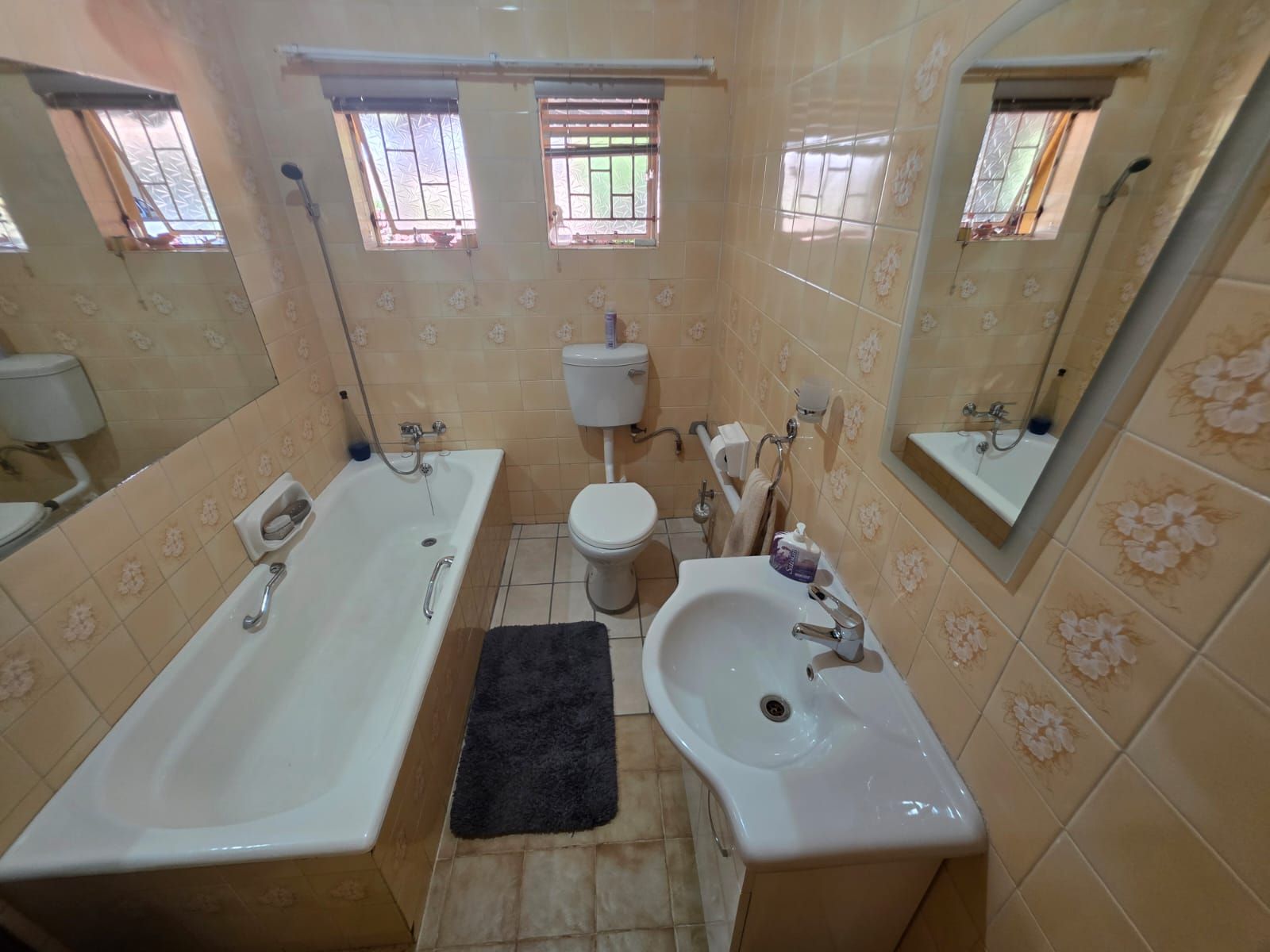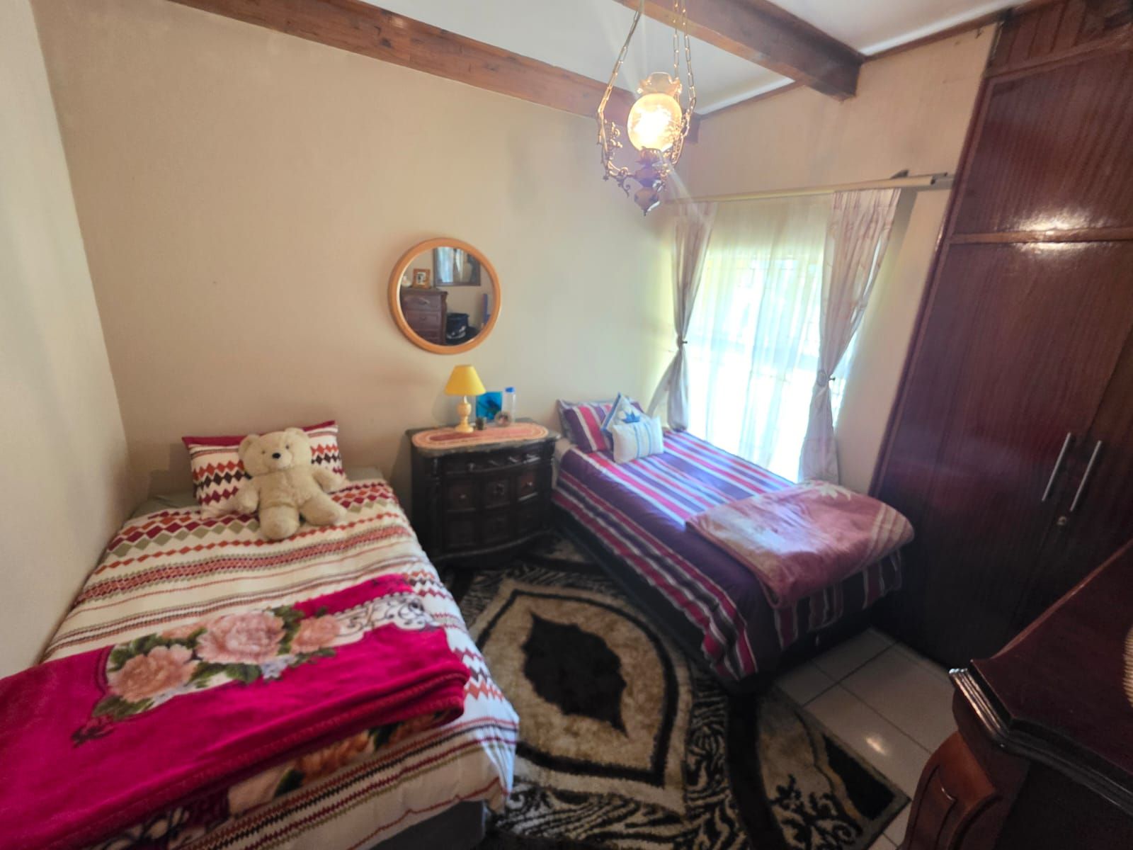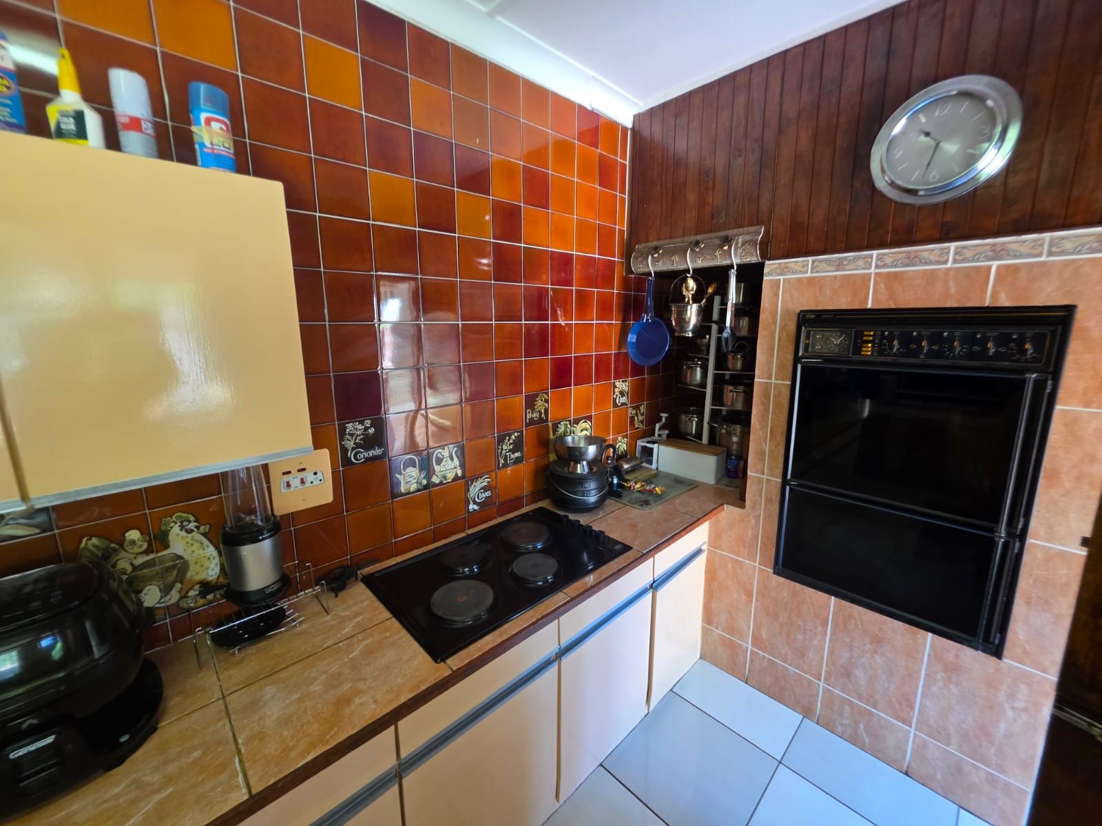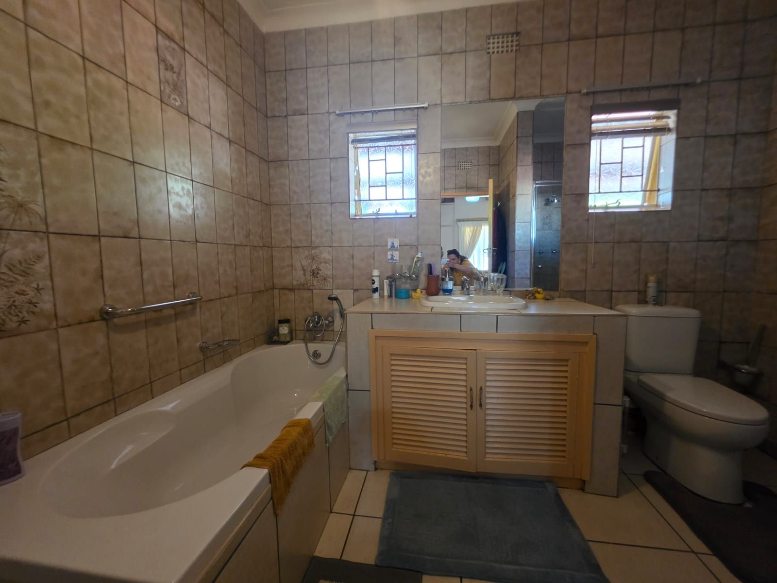 Features include a family room, dining room, study, and a kitchen with built-in cupboards, an eye-level oven, hob, and breakfast nook. The garden offers a borehole, JoJo tank, and patio. Additional features include a single garage, single secure parking, staff accommodation with toilet, and a Wendy house. The property is fully fenced.