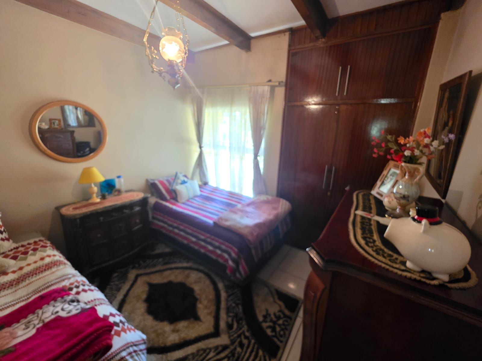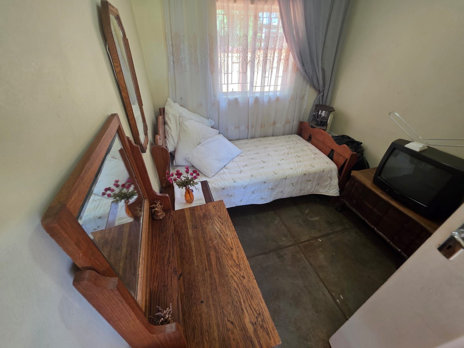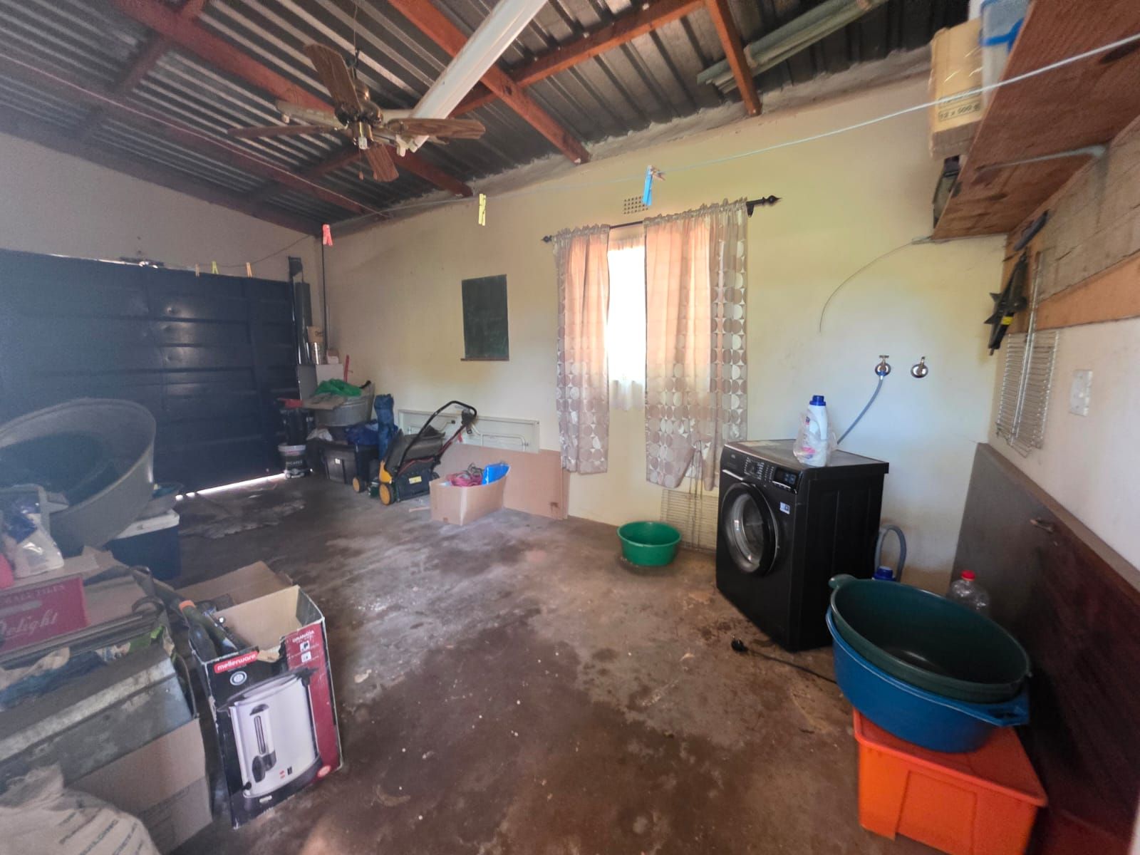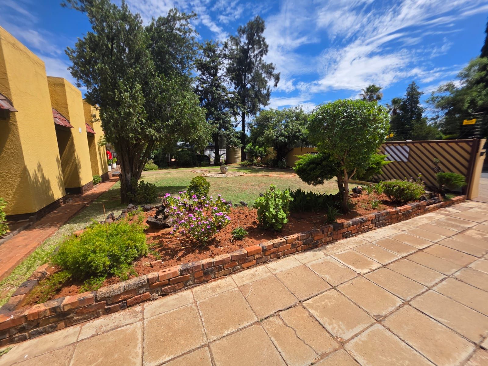 Features include a family room, dining room, study, and a kitchen with built-in cupboards, an eye-level oven, hob, and breakfast nook. The garden offers a borehole, JoJo tank, and patio. Additional features include a single garage, single secure parking, staff accommodation with toilet, and a Wendy house. The property is fully fenced.