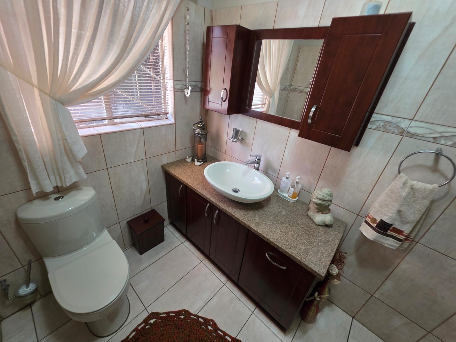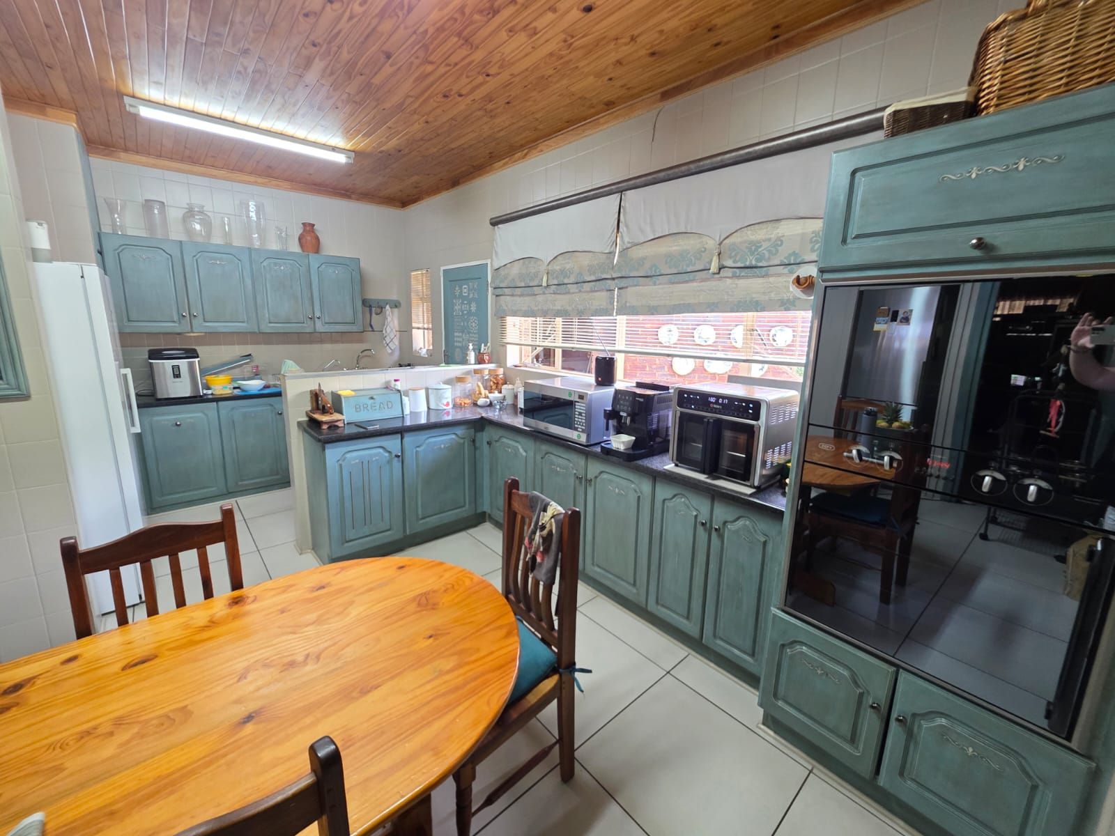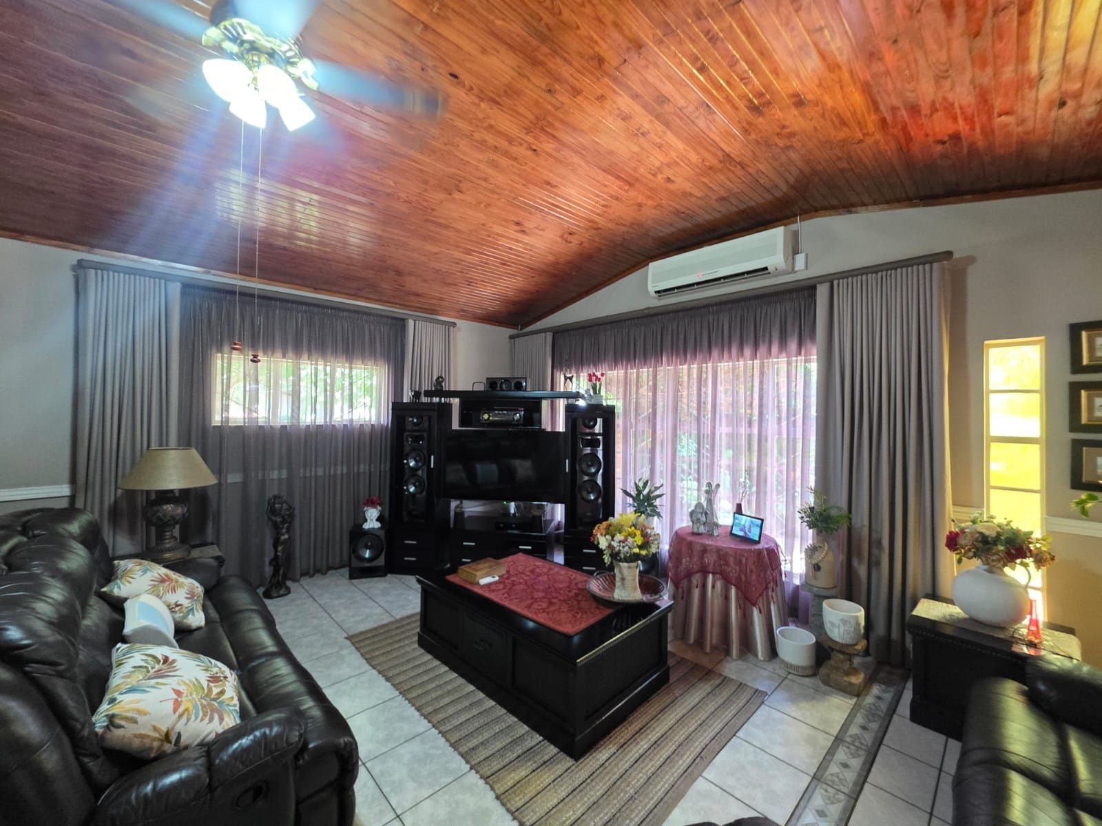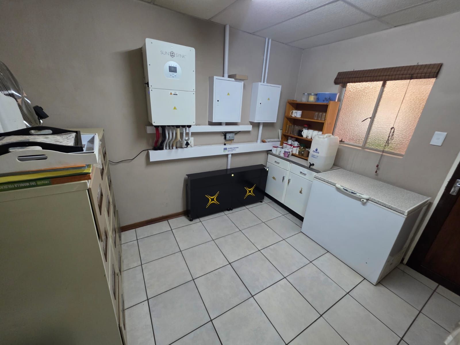 Sustainability and peace of mind are assured with a borehole fitted with an advanced filtration system, backup water supply, and a full solar solution with 32solar panels, 16kw converter and 2 x 14kw sunsynk batteries. Ample parking is provided by a five-vehicle carport, while comprehensive security includes CCTV cameras, an alarm system, security doors, and burglar bars.