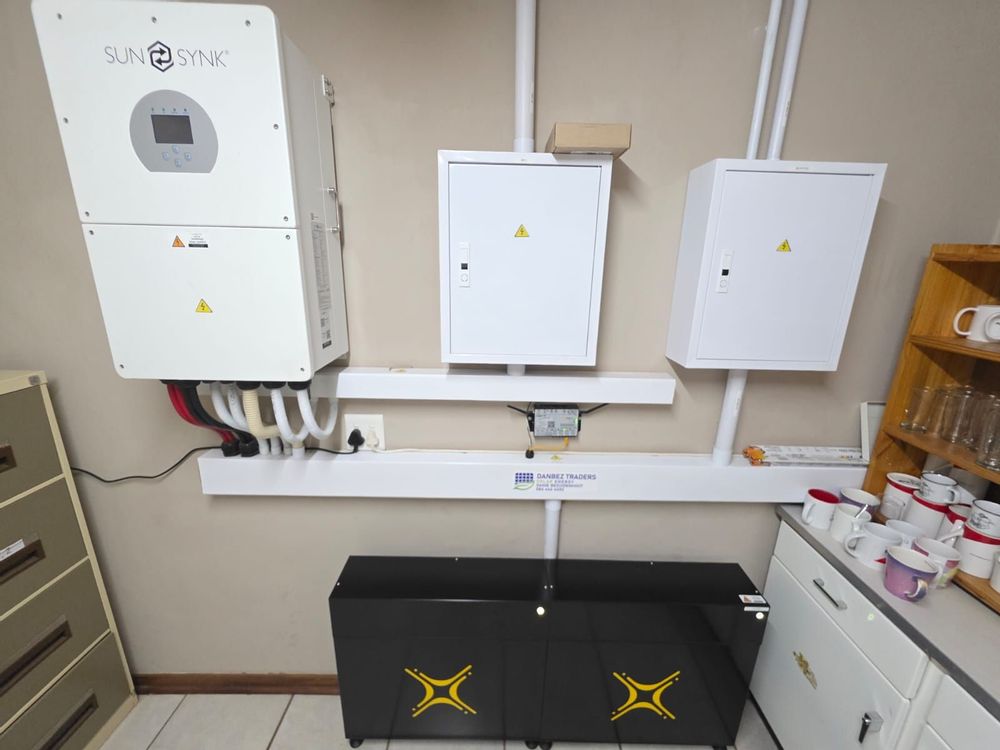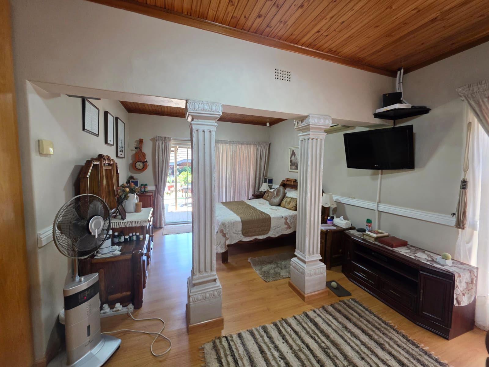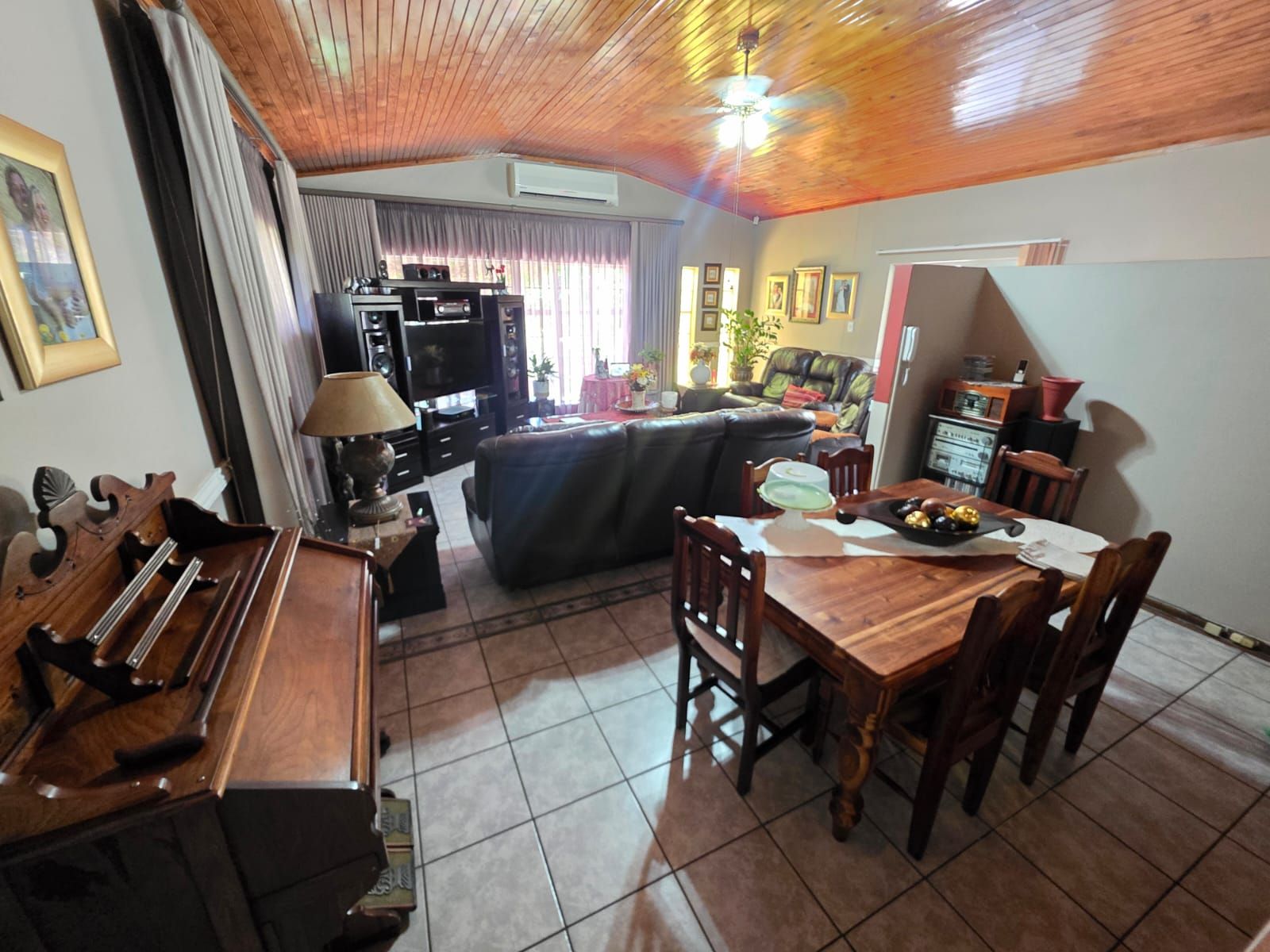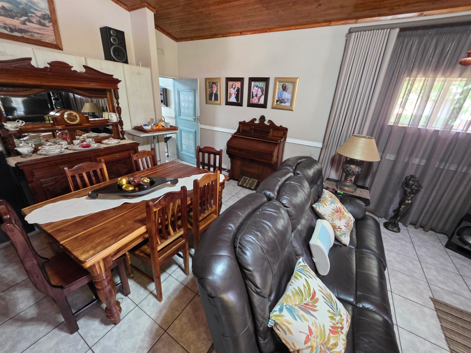 Sustainability and peace of mind are assured with a borehole fitted with an advanced filtration system, backup water supply, and a full solar solution with 32solar panels, 16kw converter and 2 x 14kw sunsynk batteries. Ample parking is provided by a five-vehicle carport, while comprehensive security includes CCTV cameras, an alarm system, security doors, and burglar bars.