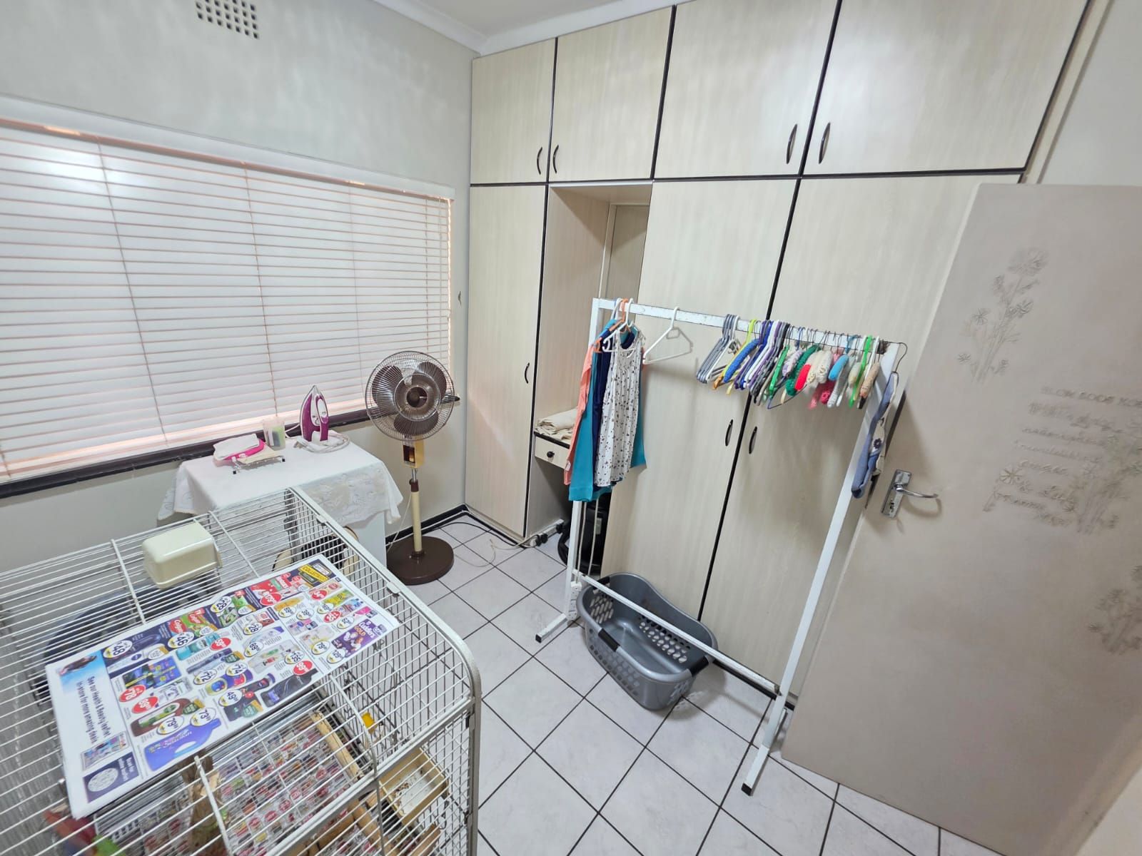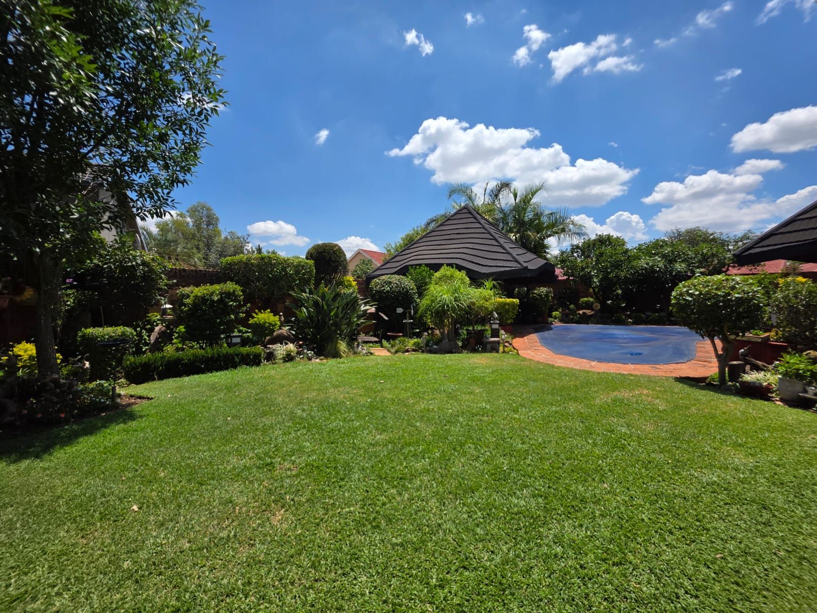 The designer kitchen is thoughtfully appointed with a scullery and separate laundry, ensuring effortless organization and everyday convenience. Outdoors, a lush, meticulously landscaped garden frames a tranquil private retreat, complete with a sparkling swimming pool and an entertainment area with built-in braai—ideal for memorable gatherings.