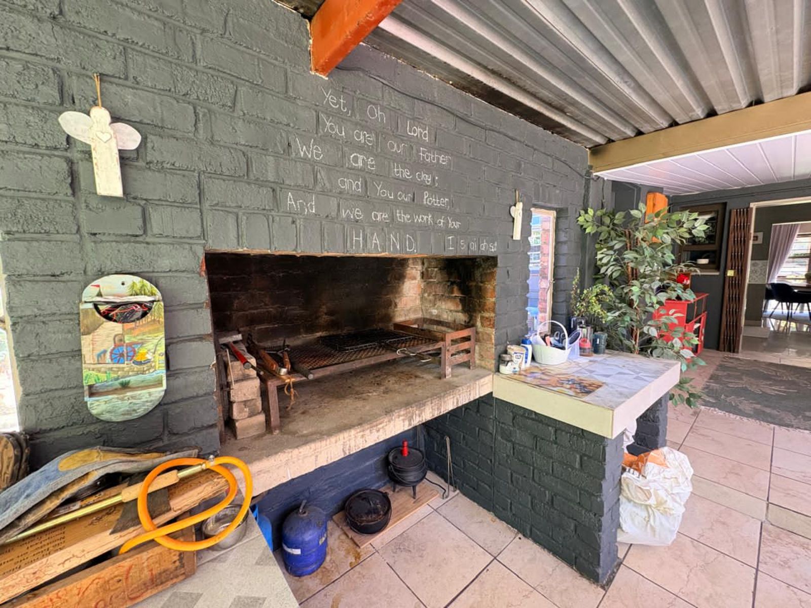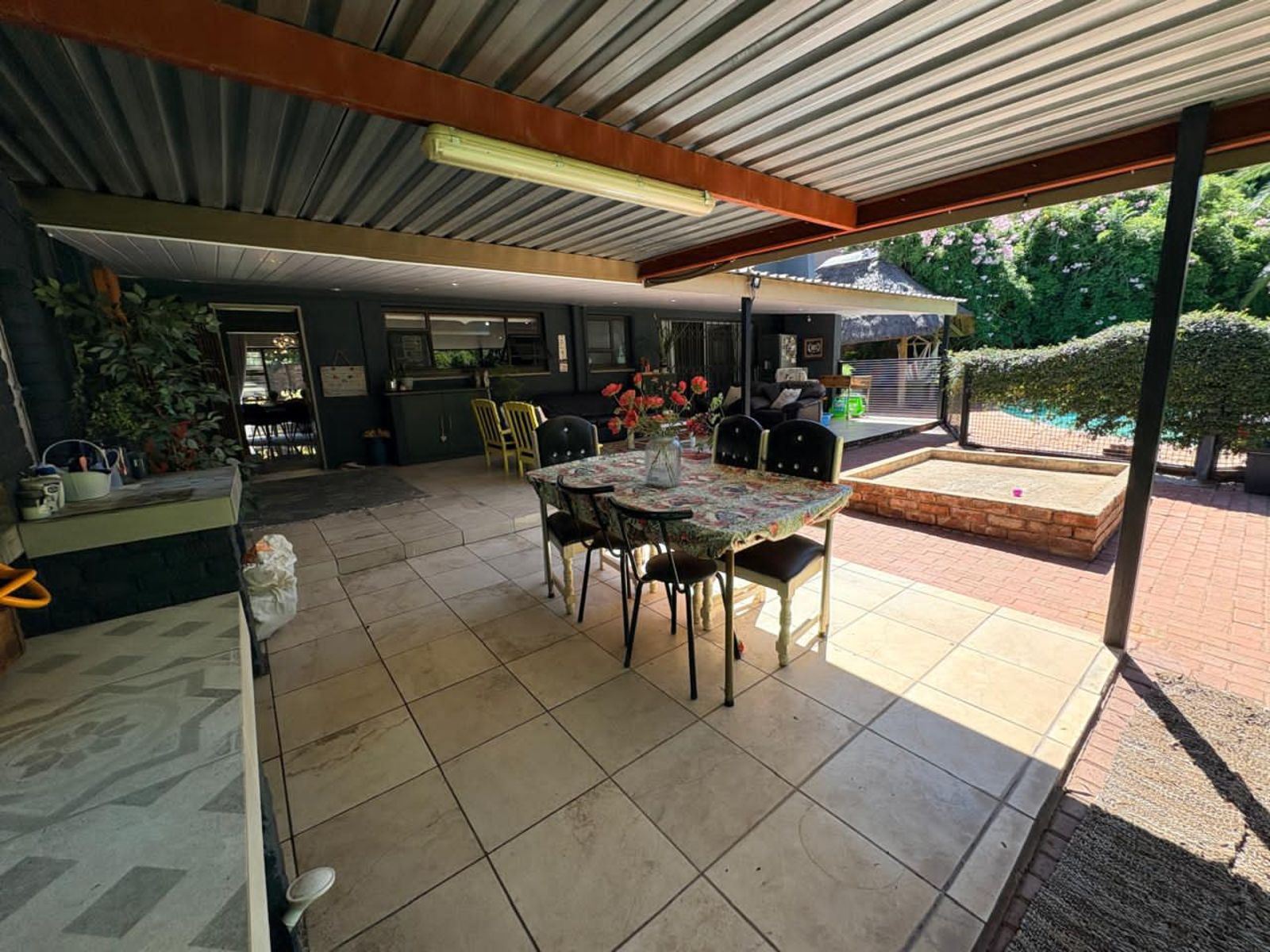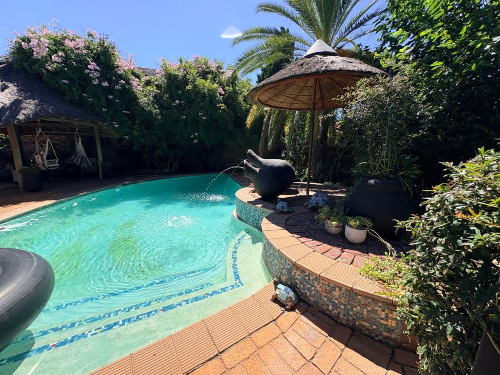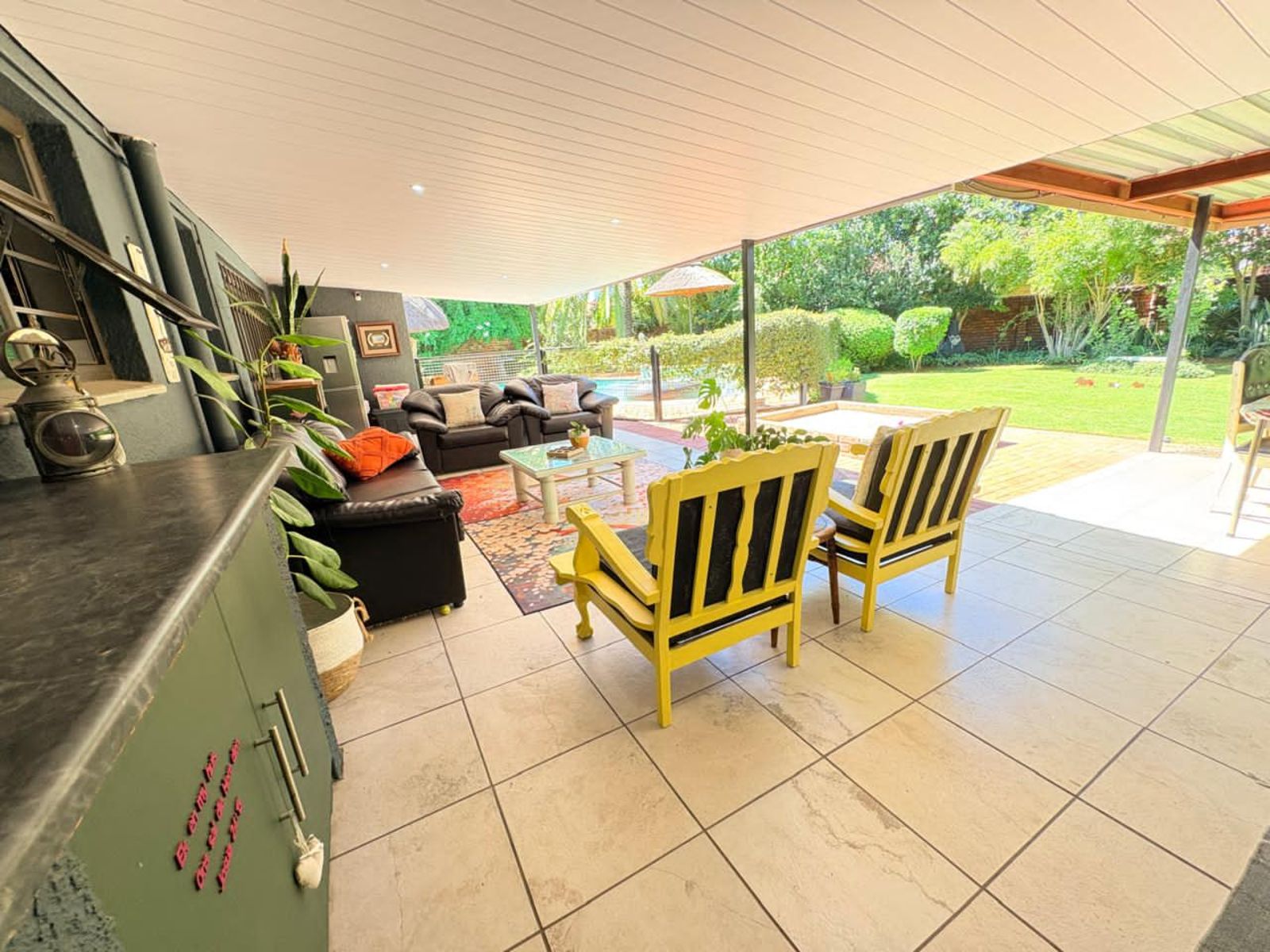 Step outside to a fantastic entertainment area complete with a built-in braai, overlooking a fenced swimming pool — ideal for hosting family and friends. The established garden is supported by a borehole and JoJo tank, ensuring reliable water supply year-round.