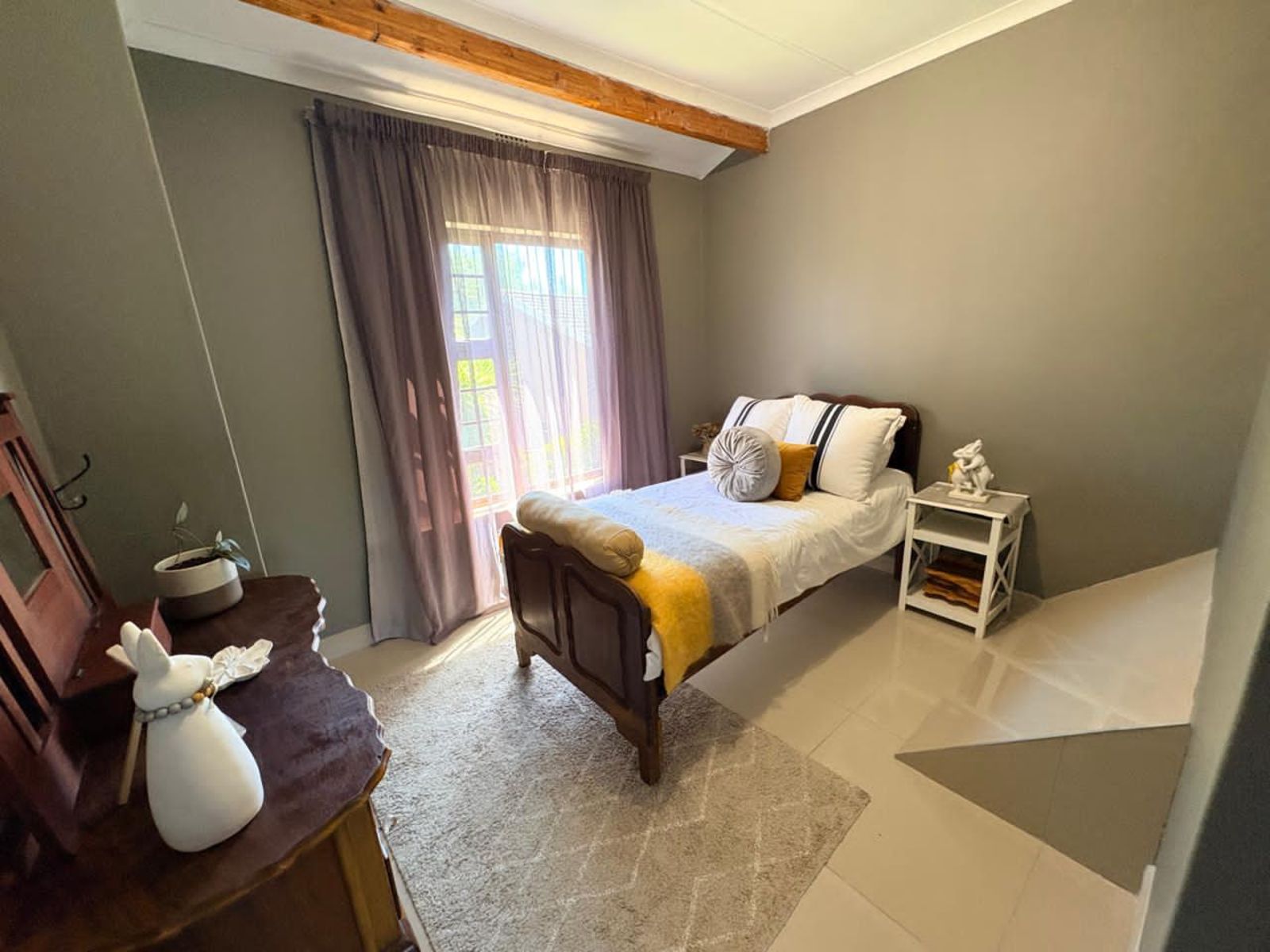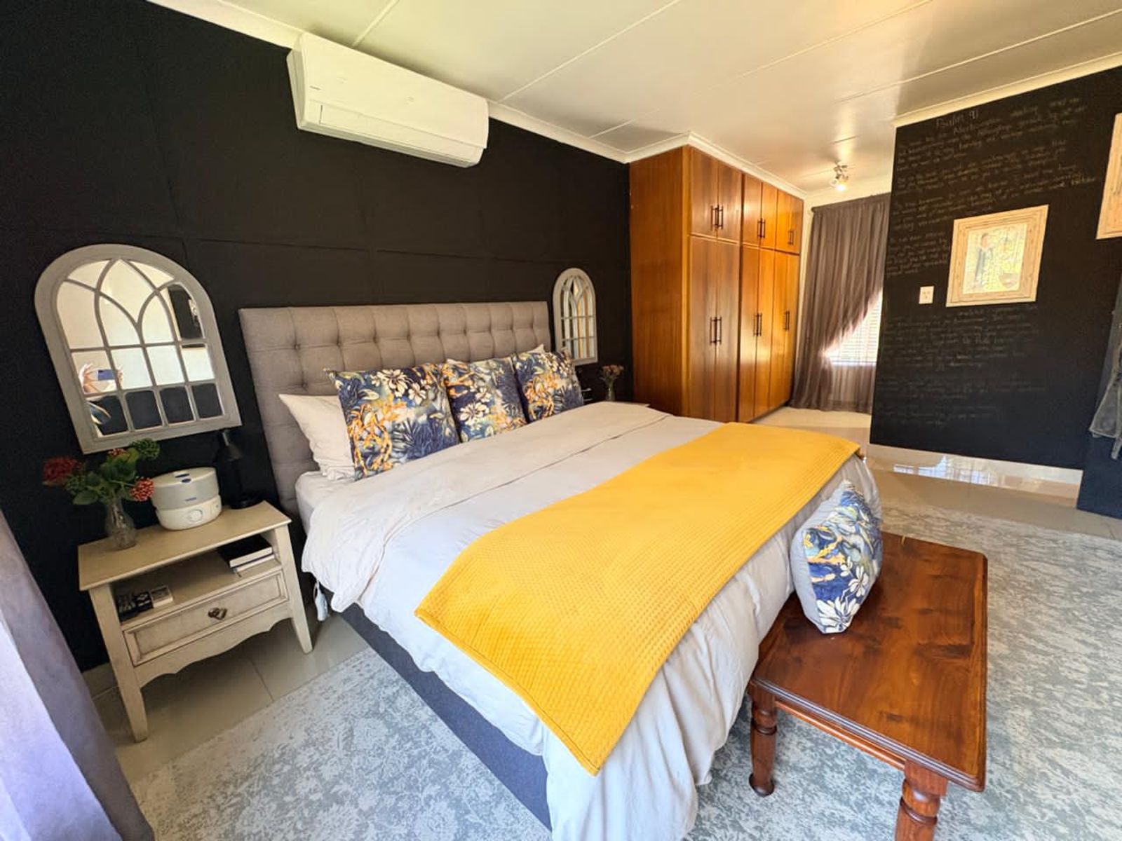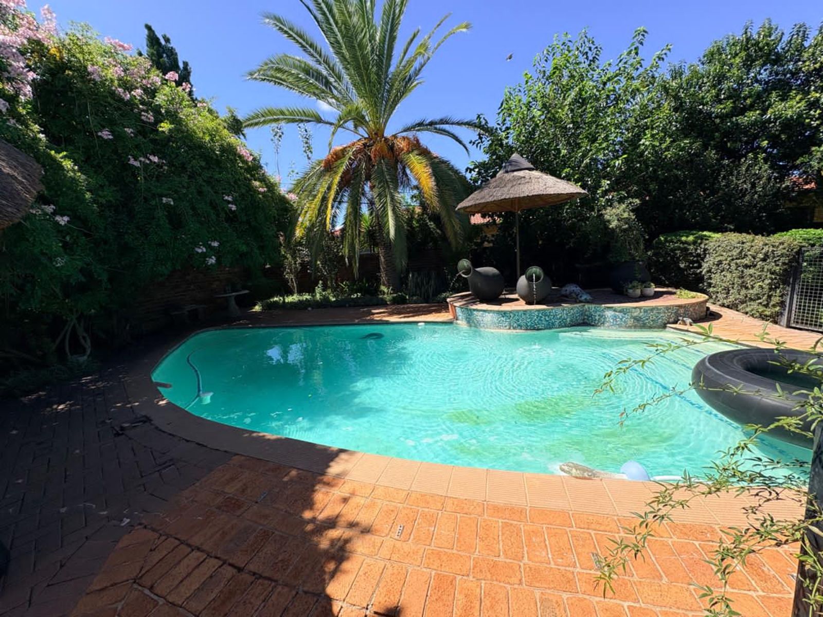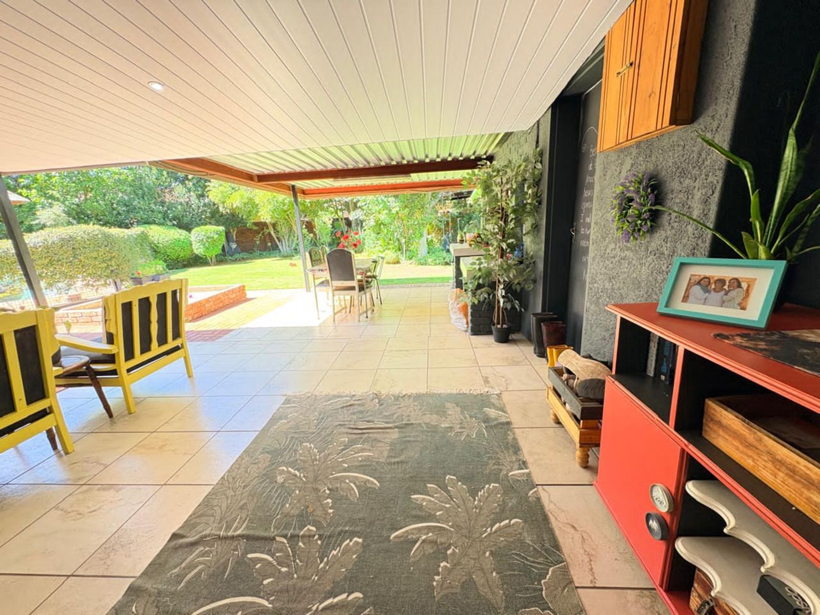 Step outside to a fantastic entertainment area complete with a built-in braai, overlooking a fenced swimming pool — ideal for hosting family and friends. The established garden is supported by a borehole and JoJo tank, ensuring reliable water supply year-round.