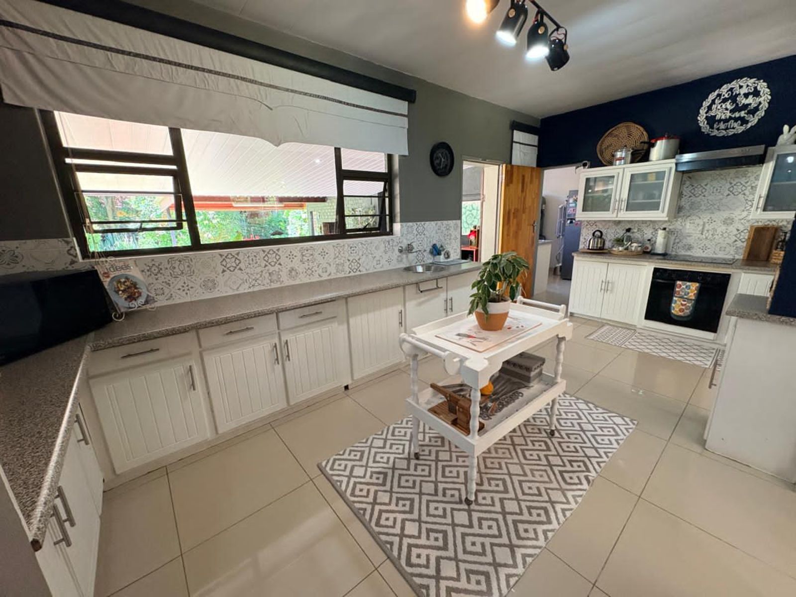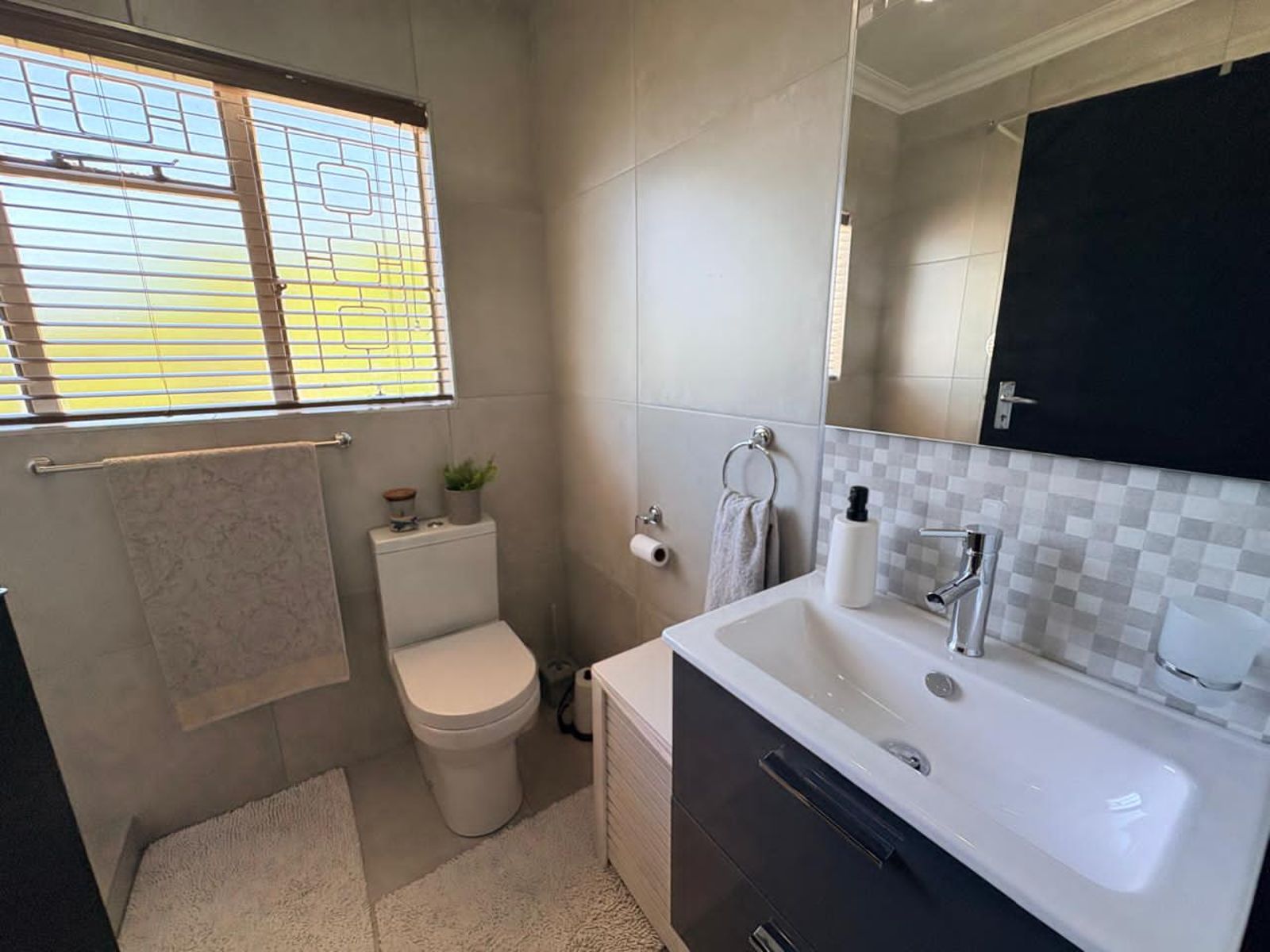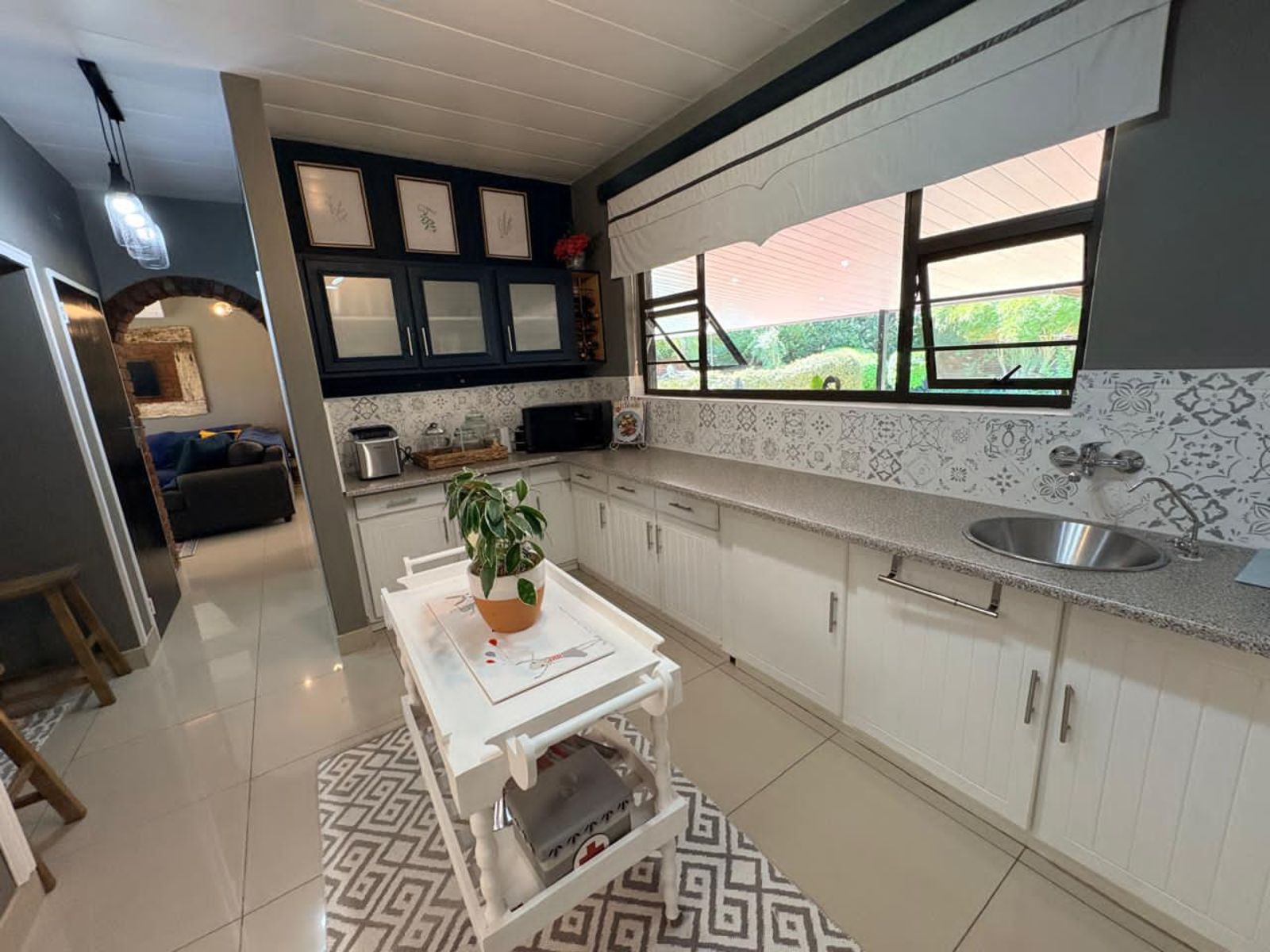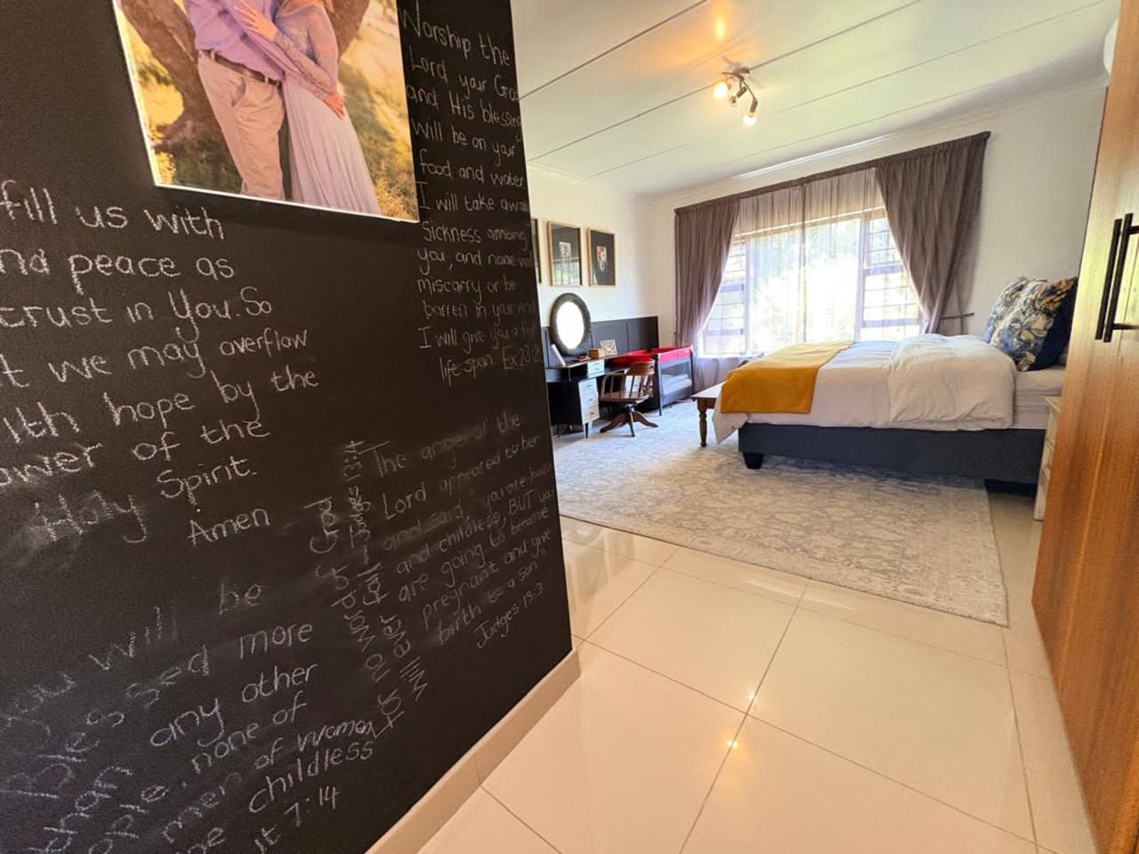 Step outside to a fantastic entertainment area complete with a built-in braai, overlooking a fenced swimming pool — ideal for hosting family and friends. The established garden is supported by a borehole and JoJo tank, ensuring reliable water supply year-round.