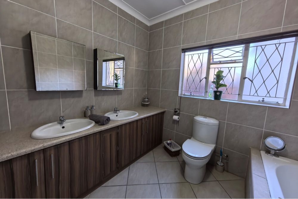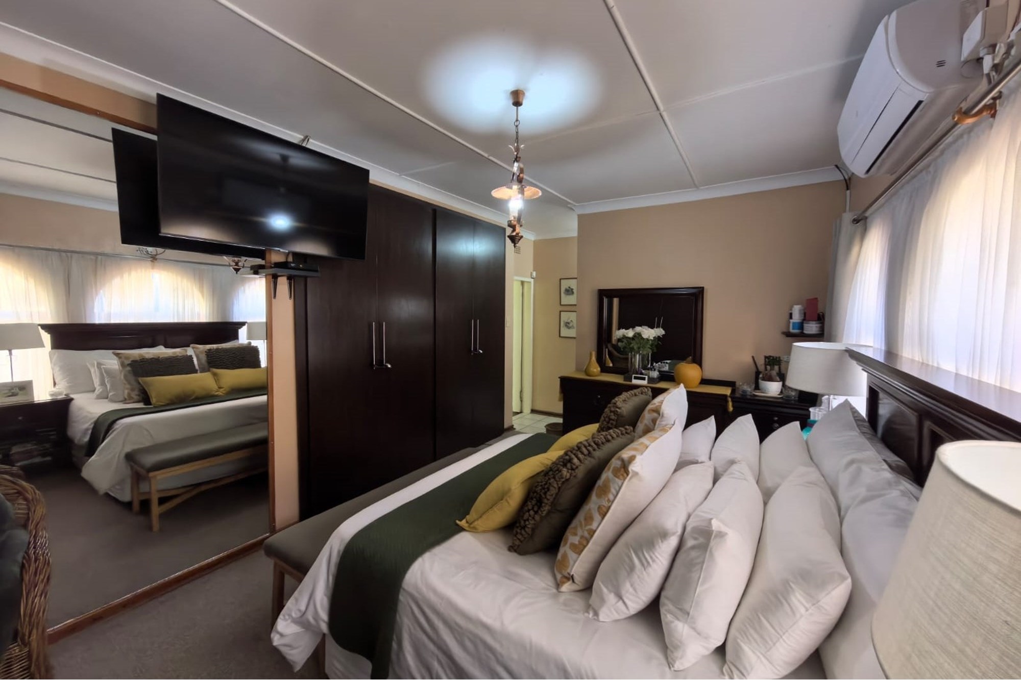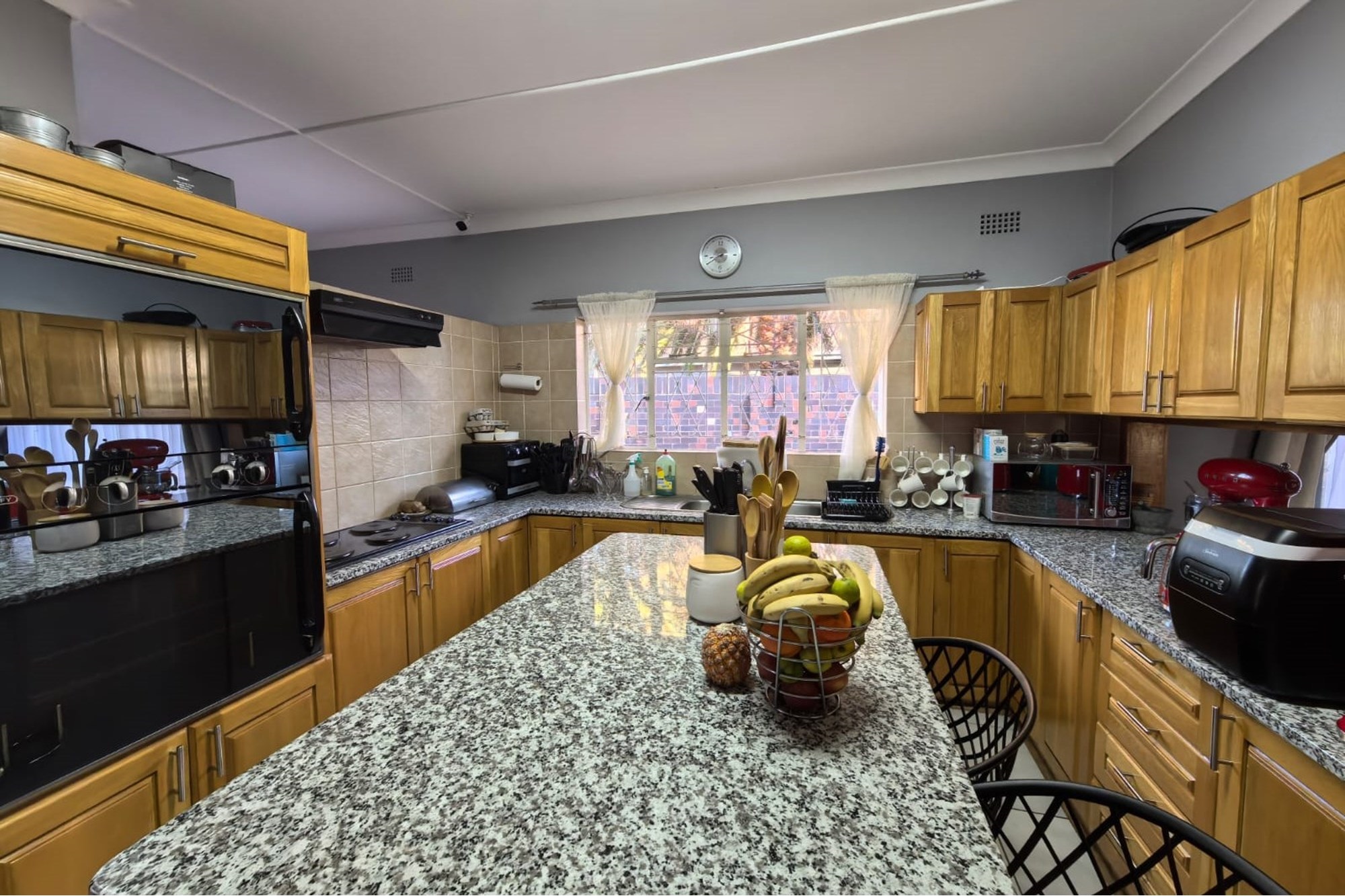 The kitchen is a dream with granite countertops and a separate scullery, making meal prep a pleasure. This expansive home sits on a generous 1230m2 erf and offers even more convenience with three garages, two street entrances, a storeroom, and domestic quarters. Plus, the third garage has the potential to be a private flatlet with its own entrance.