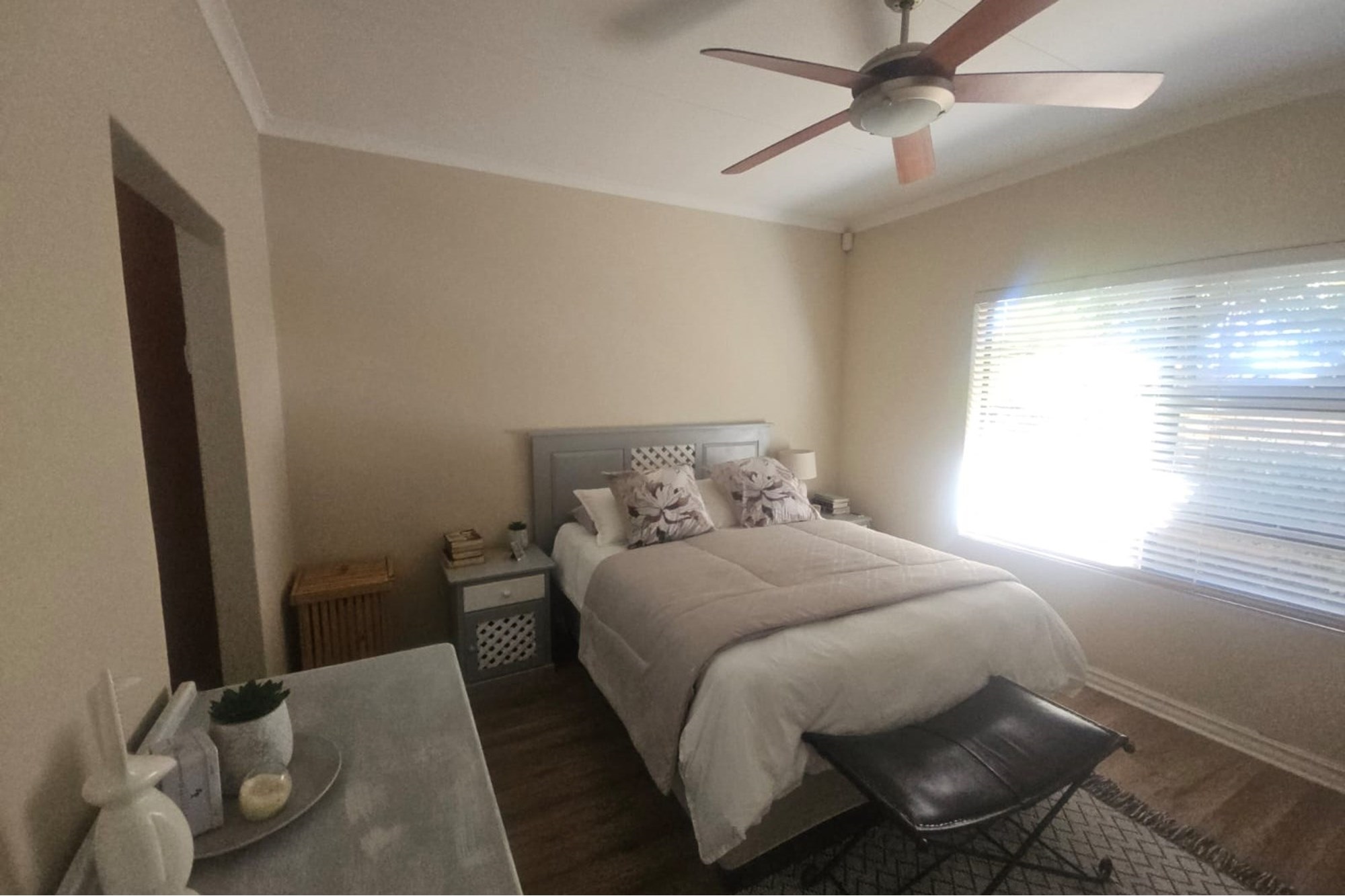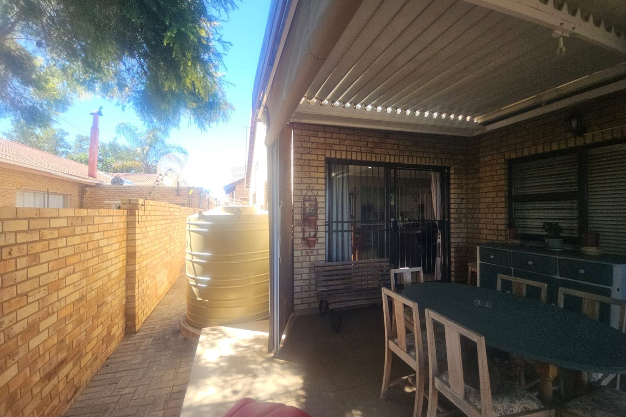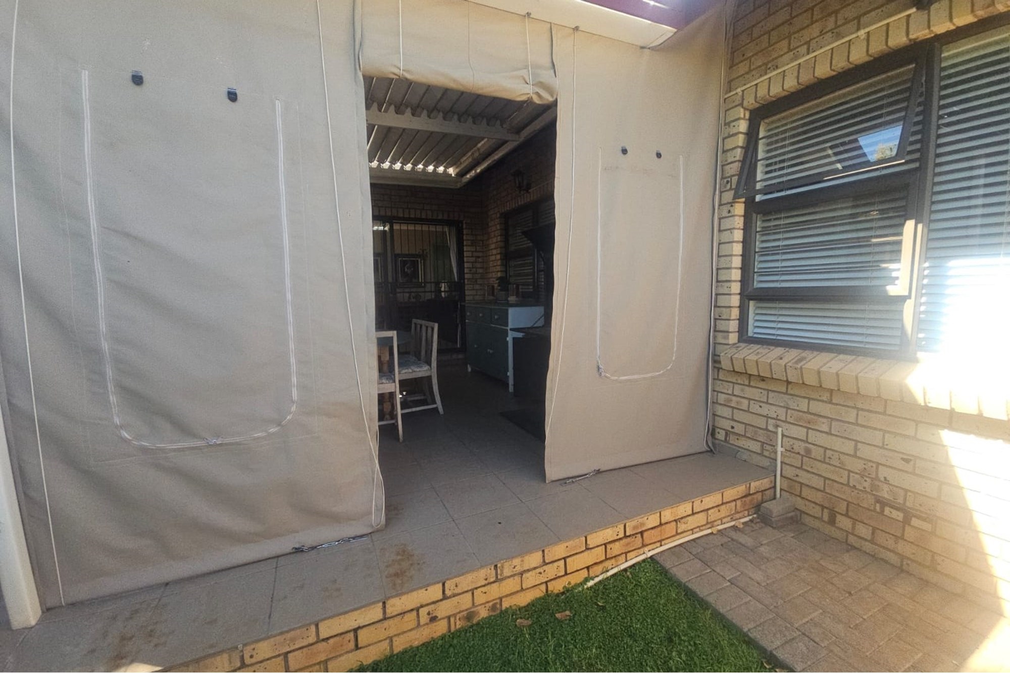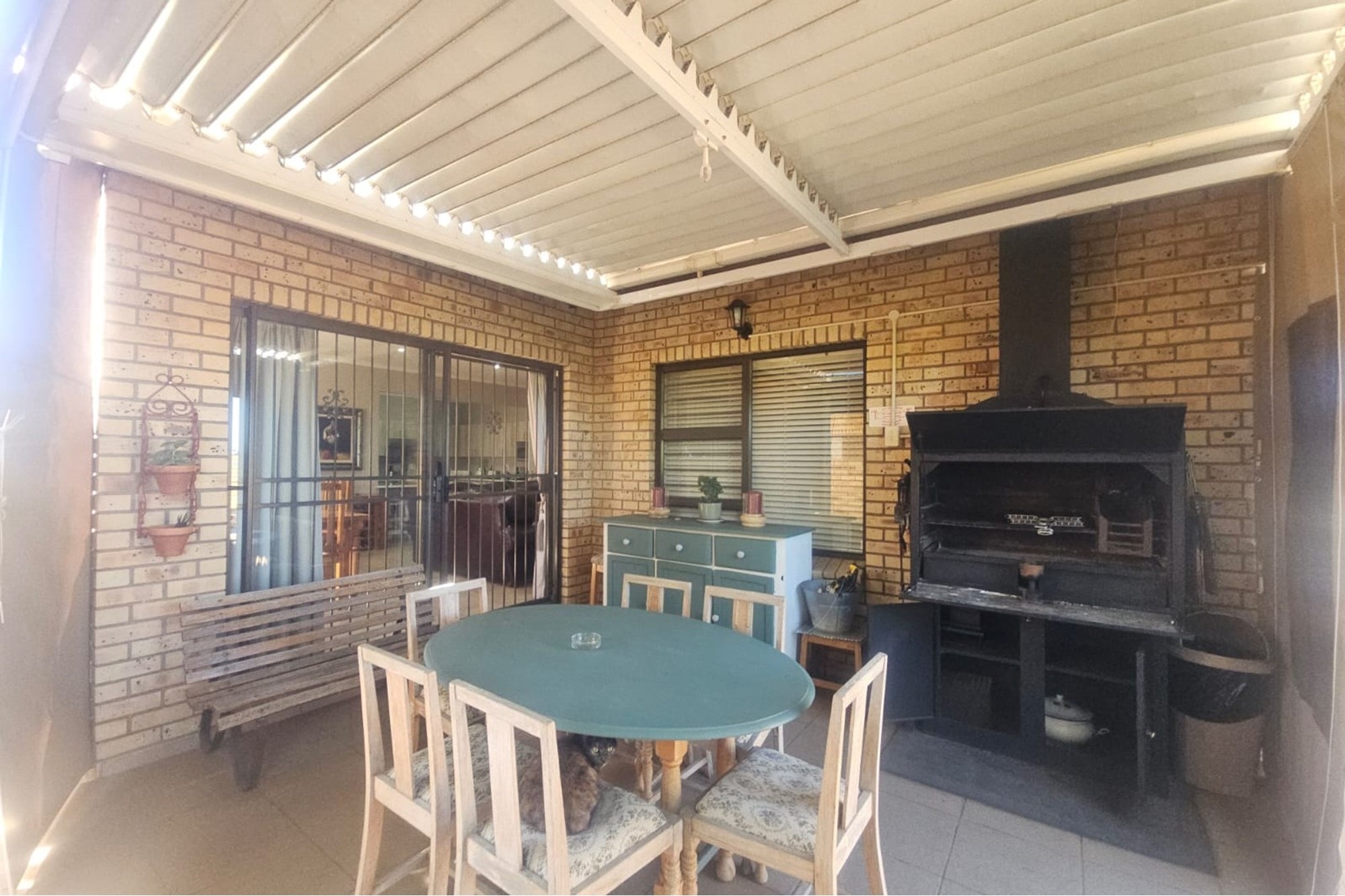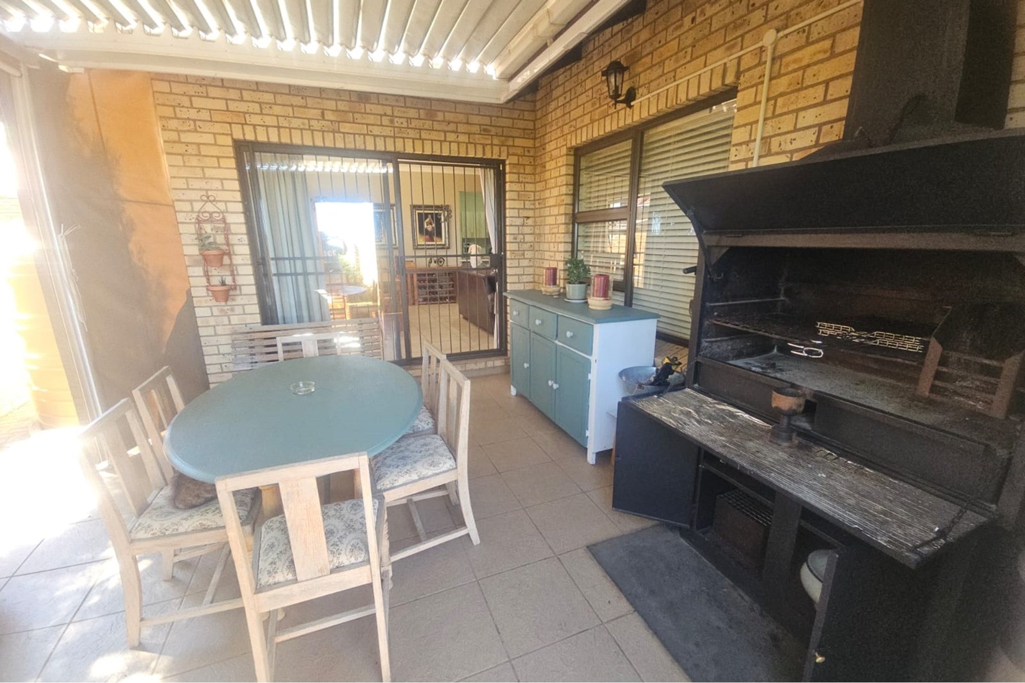 An inviting entertainment area awaits, complete with a Jet master braai, drop-down canvas blinds, and protective awnings—ideal for year-round enjoyment.