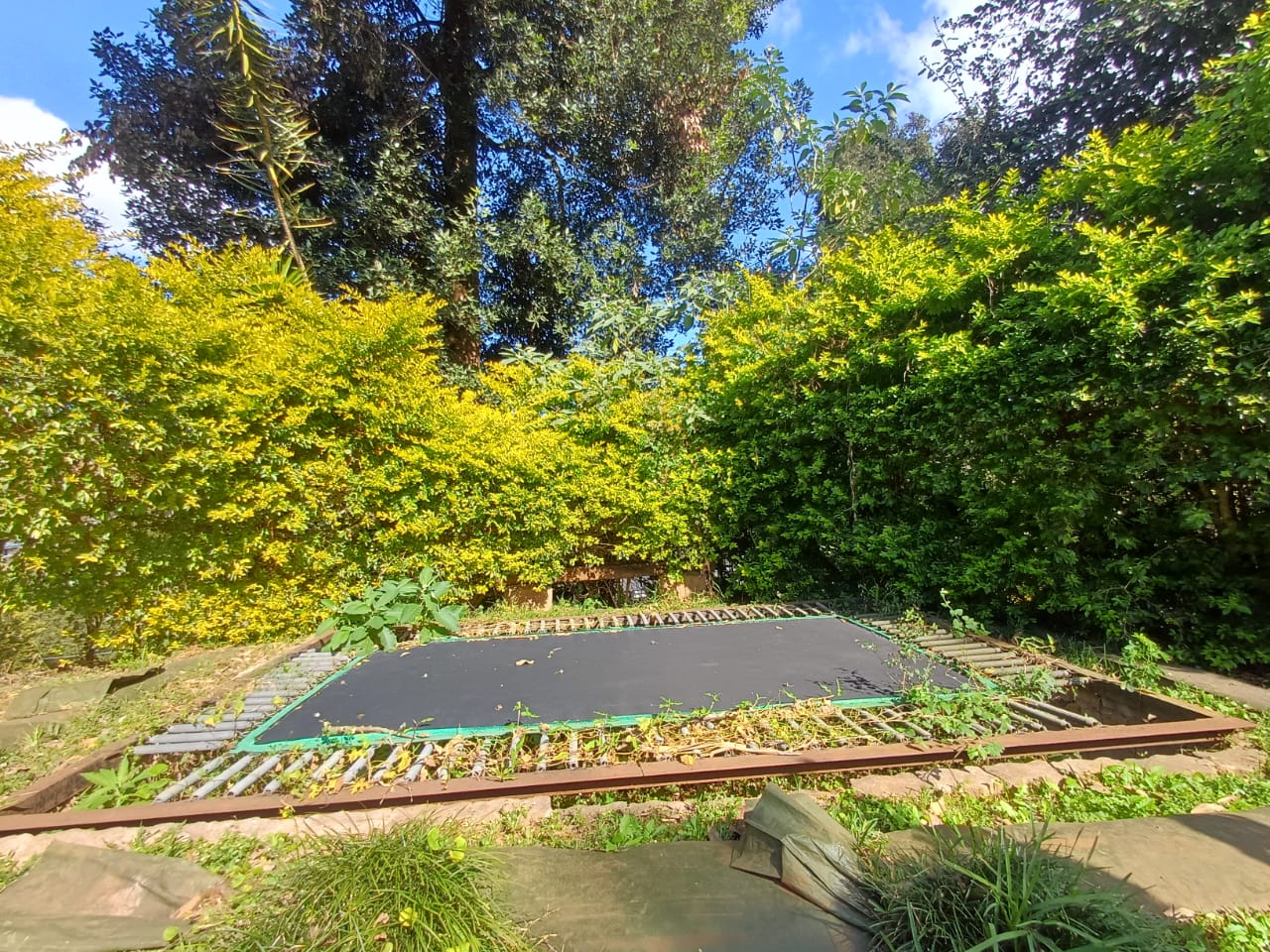 - Sparkling swimming pool with a nearby trampoline for family fun