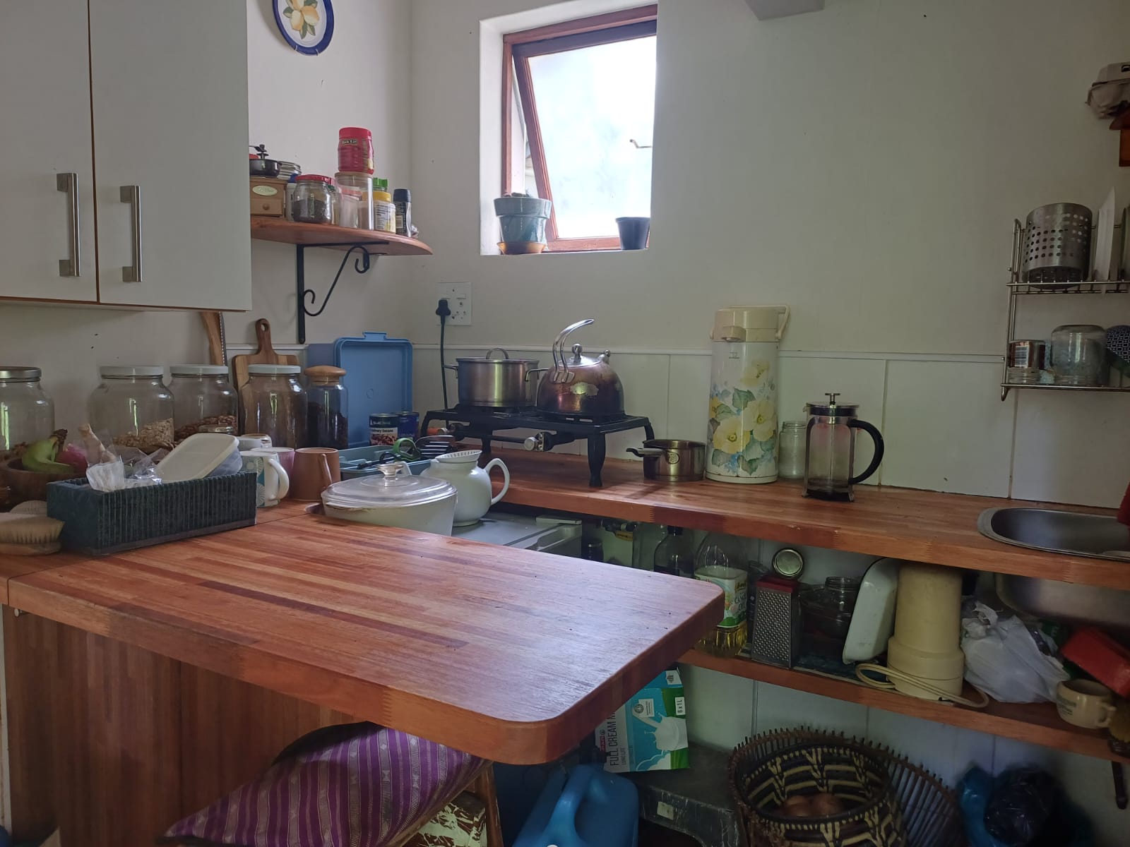 This unit features a kitchenette and a separate living area, making it ideal for a single occupant. Utilities such as electricity and water are included.