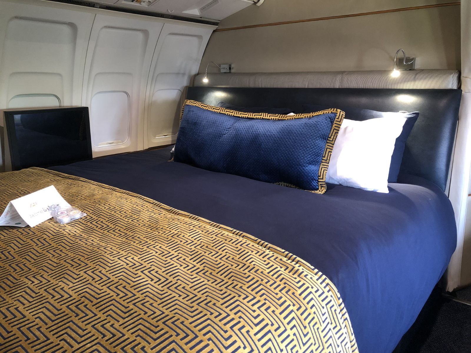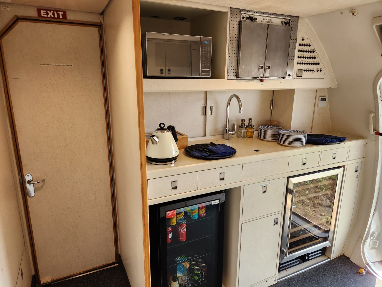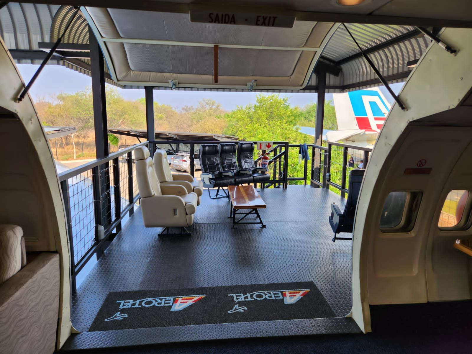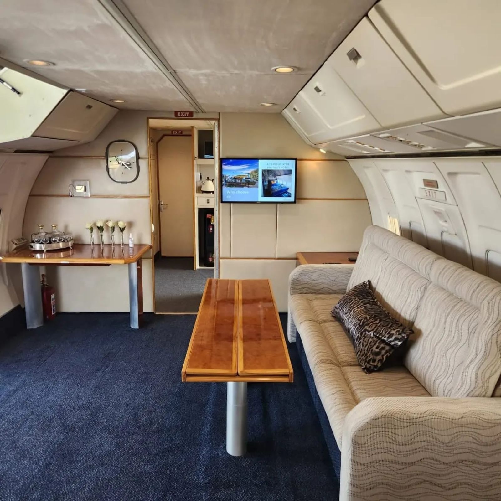 The hotel offers luxurious amenities such as a swimming pool, gourmet dining, and elegantly designed rooms. It caters to both overnight guests day visitors and as conference venue, providing a one-of-a-kind experience that blends aviation themes with the beauty of the surrounds.