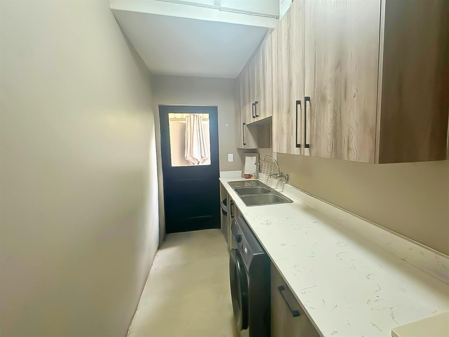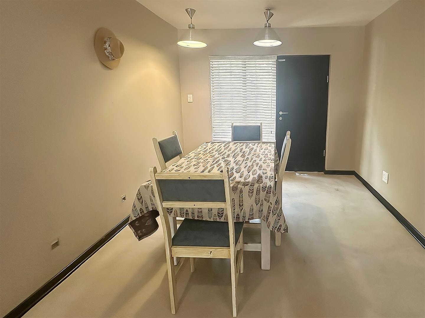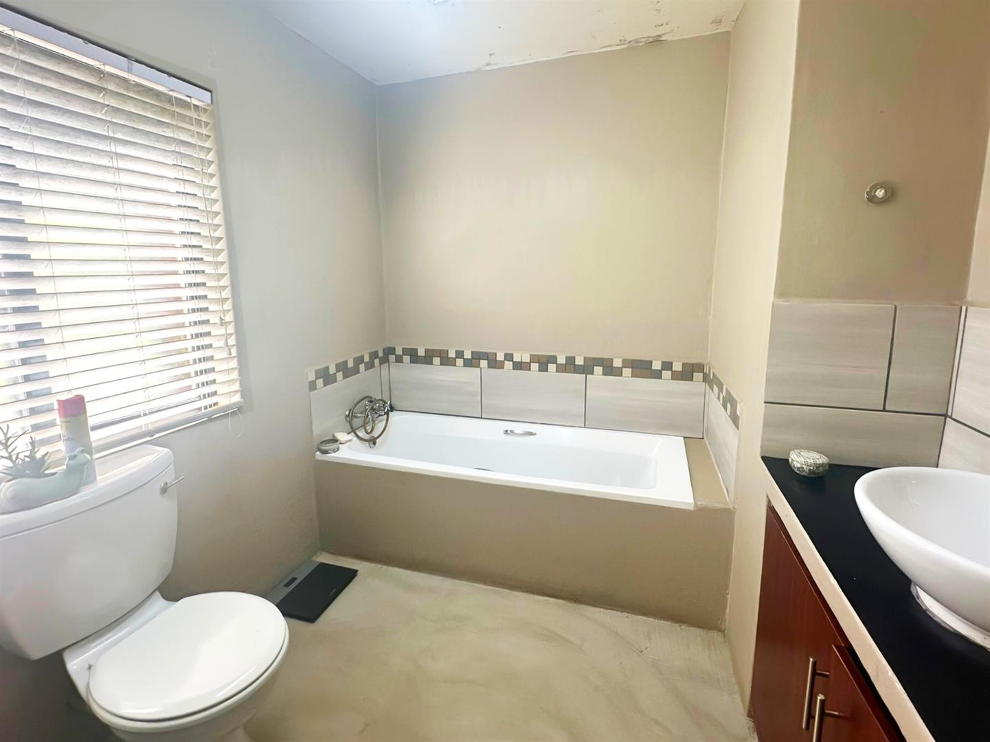 Outdoor spaces include a covered patio with a built-in braai, a separate deck, and a private garden with established trees. The home is pet-friendly and has a designated parking bay.