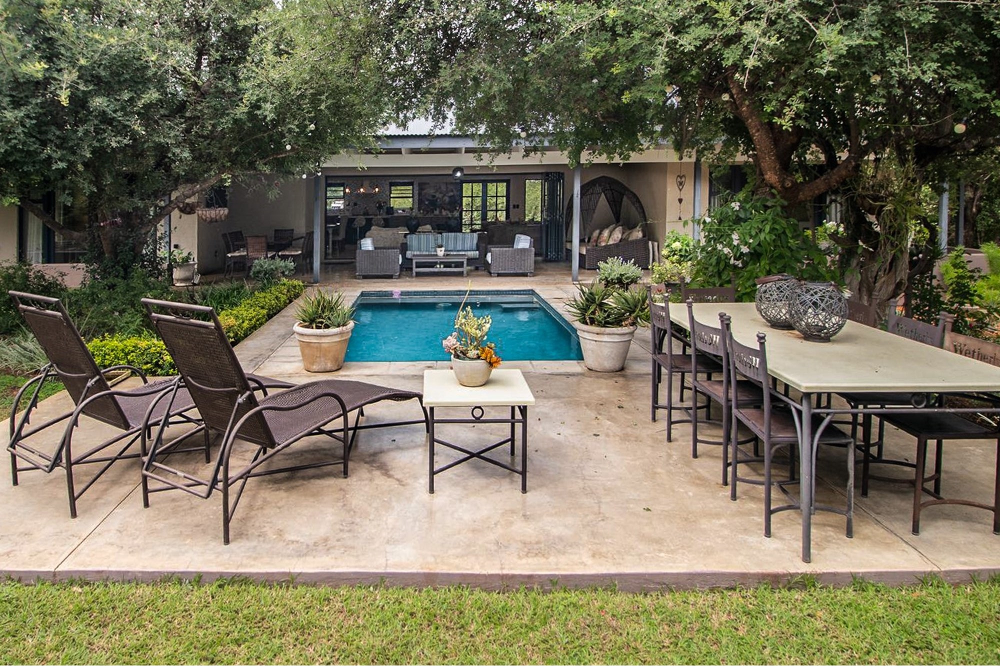 Large undercover patios with partial mountain views and a Generous Braai Boma and Pizza Oven make entertaining easy!