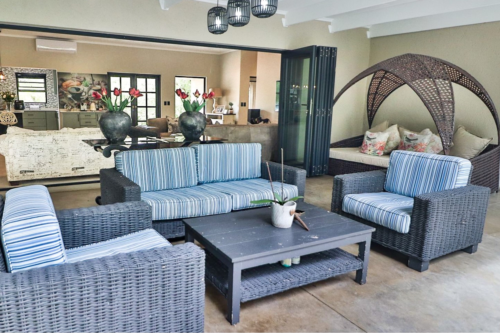 A Single level modern finish home is what you will find. The home is well maintained and suits the Bush and Hoedspruit Lifestyle well!