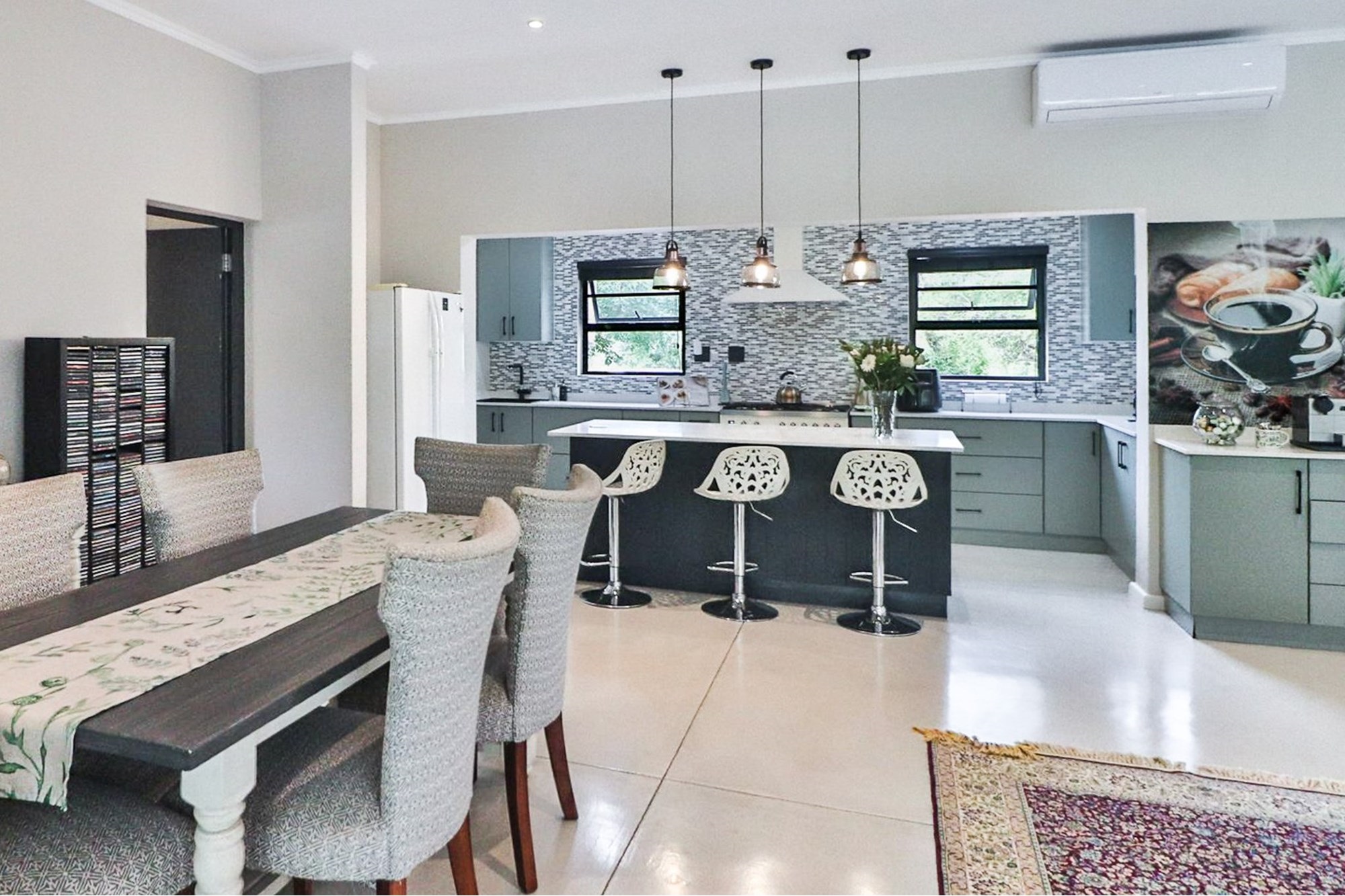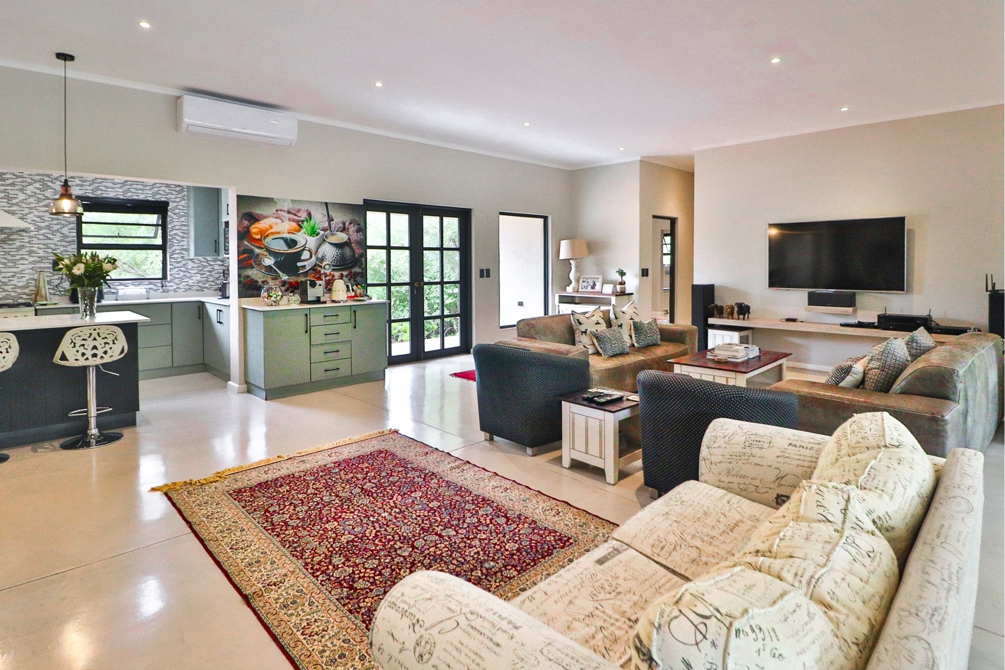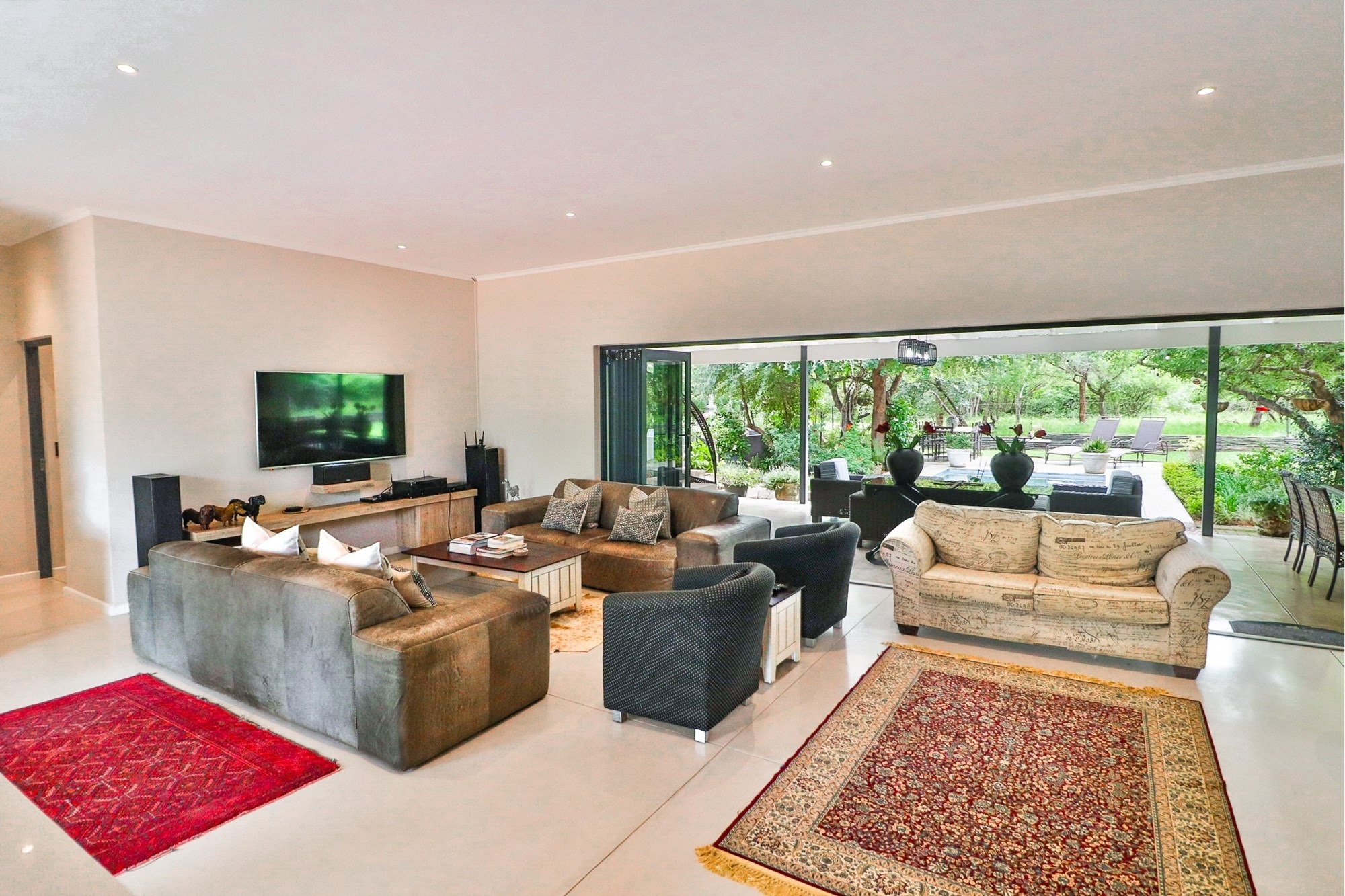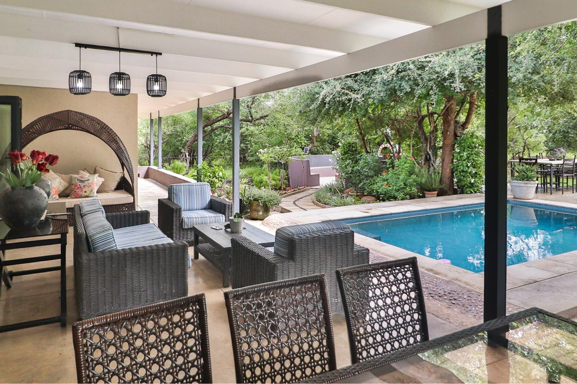 This home is nestled on a stand filled with Large Indigenous Trees, in a Bush Setting which lends itself well to the discerning and privacy orientated buyer. A long driveway assures peace and quiet and no road noise whilst the property itself lives well for a family.