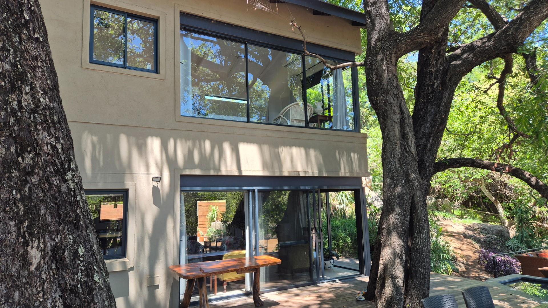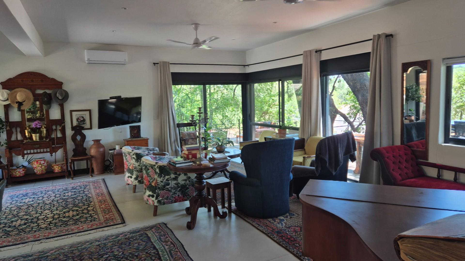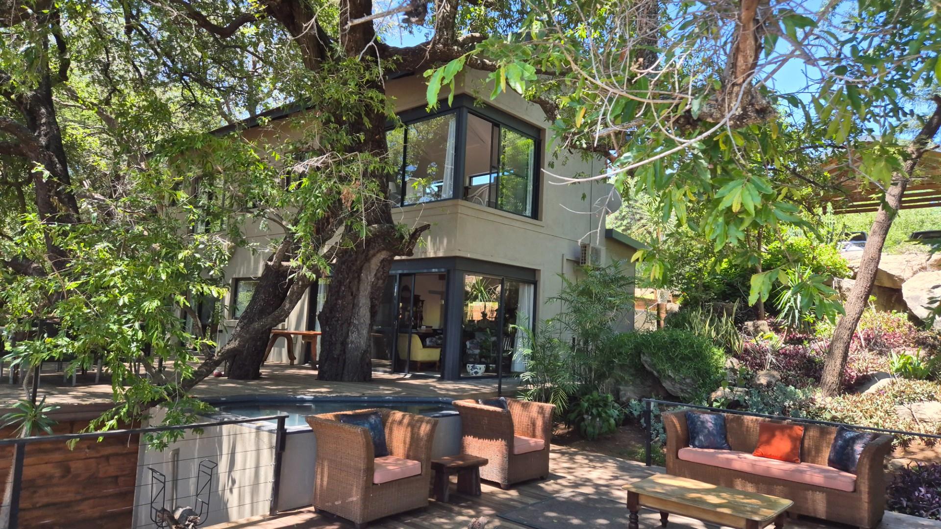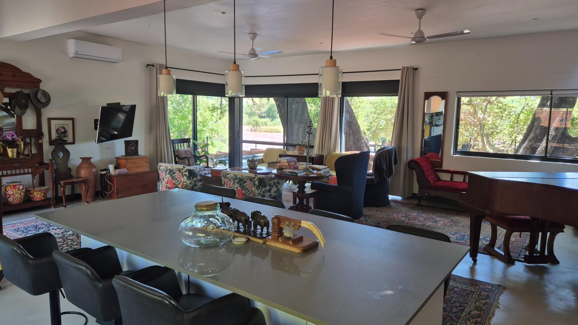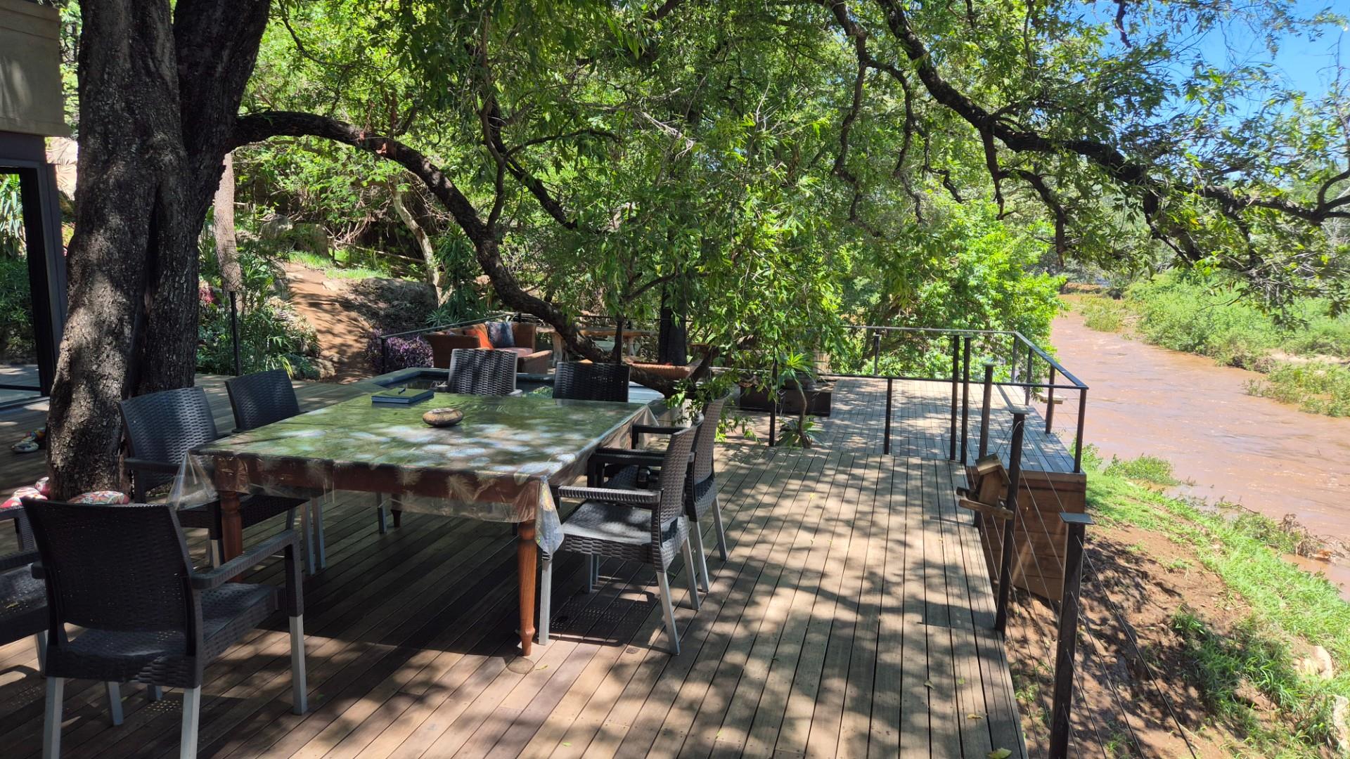 A tar road turnoff from the R40 takes you 5 km to this exciting new home, built on the river bank, architect designed to ensure you experience the river from all the living areas and bedrooms .A glass door front entrance welcomes you into a spacious living area ,instantly accentuating the presence of the Olifants River a few meters away from the house .All the bedrooms and living areas have been designed with the river view in mind ,opening with sliding doors or big sliding windows ,inviting the river sound.