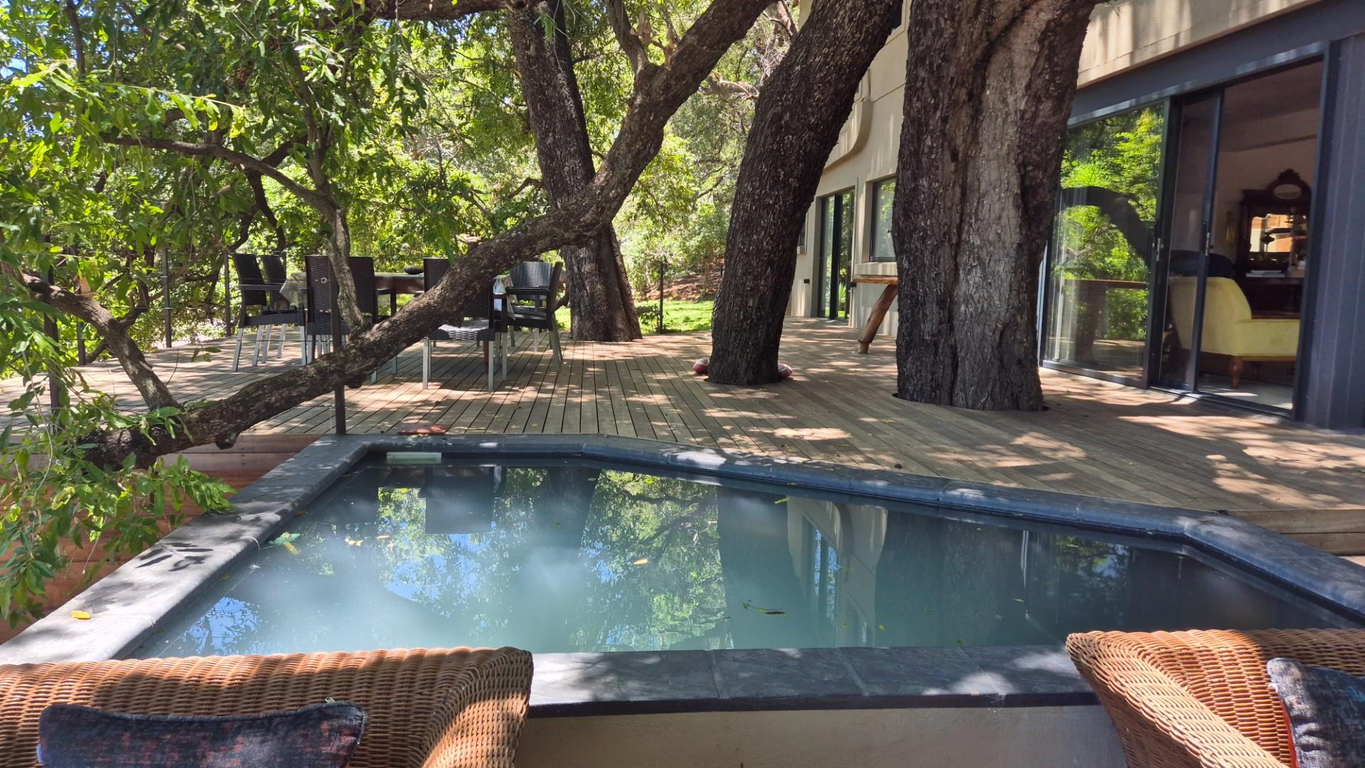 This exceptional property, new to the market, consists of a double story house with adjacent 1500m2 stand, defined by 130m of river front on the Olifants River. Both properties are part of the Umfula Shareblock Estate, some 25 km of Hoedspruit and formerly known as Hippo Pools. No transfer duty.