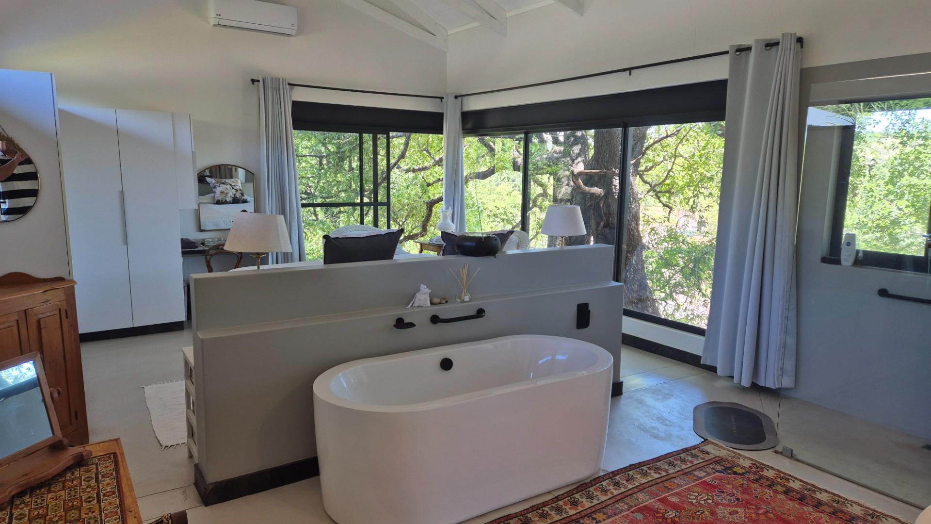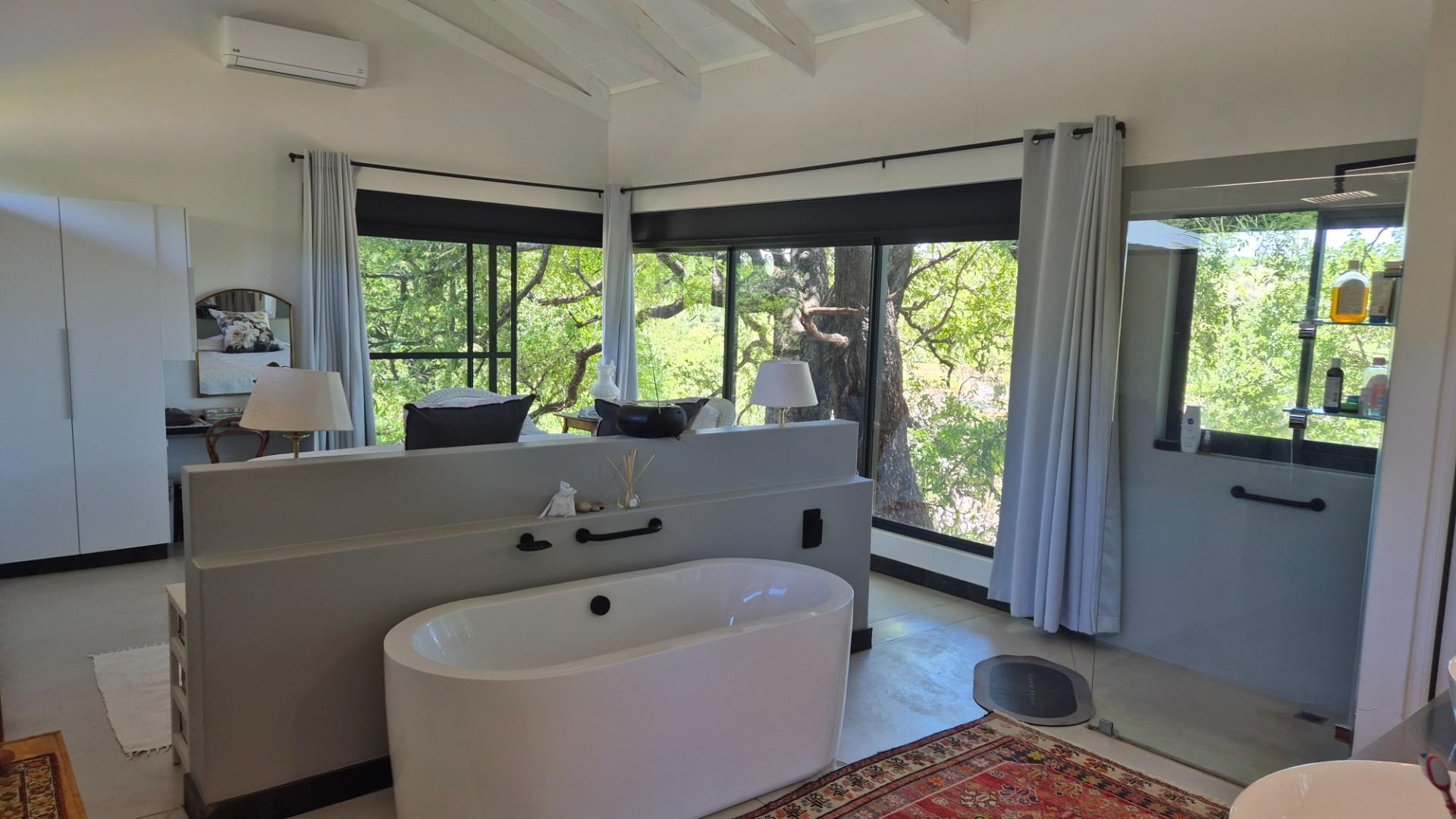 All the bedrooms have ensuite bathrooms, is fully airconditioned, with plenty of light, fresh air and space - massive glass windows invites nature into your private space. A truly special environment .
