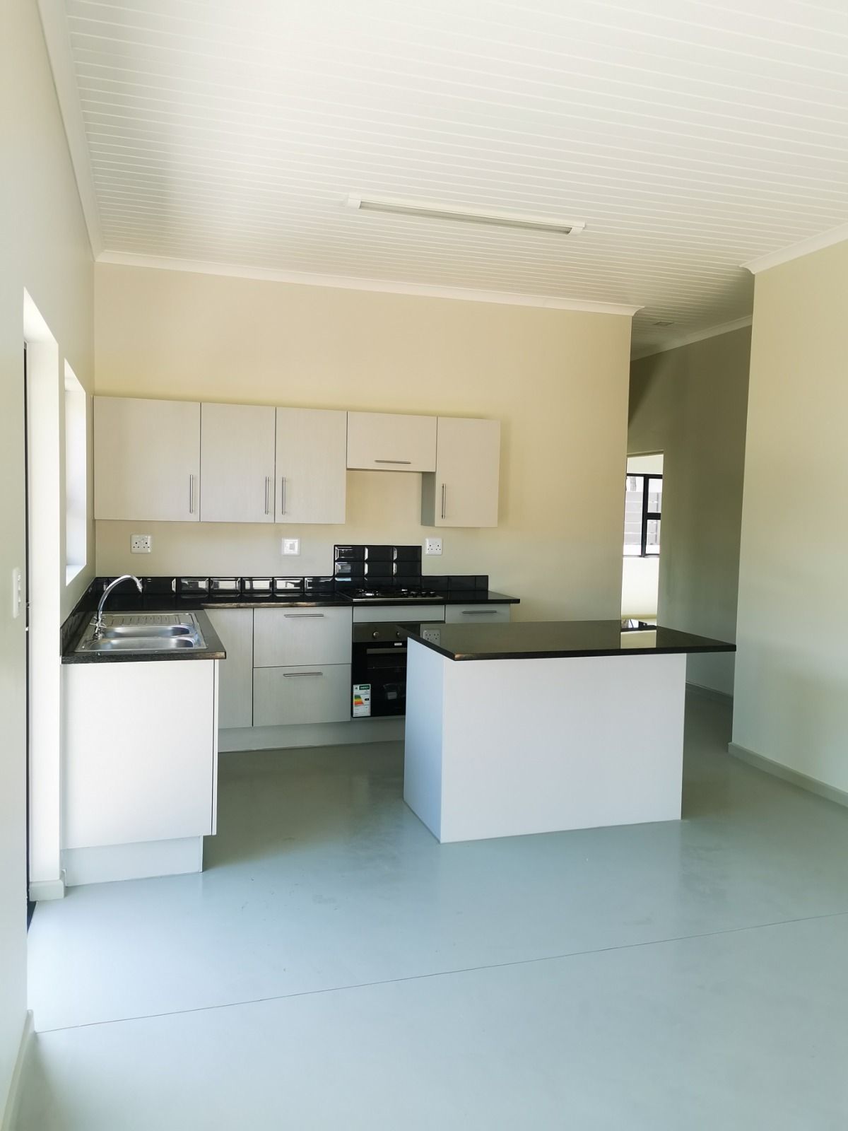 Kitchen equipped with cupboards, and gas hob and electric oven.