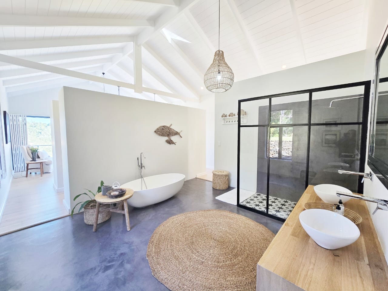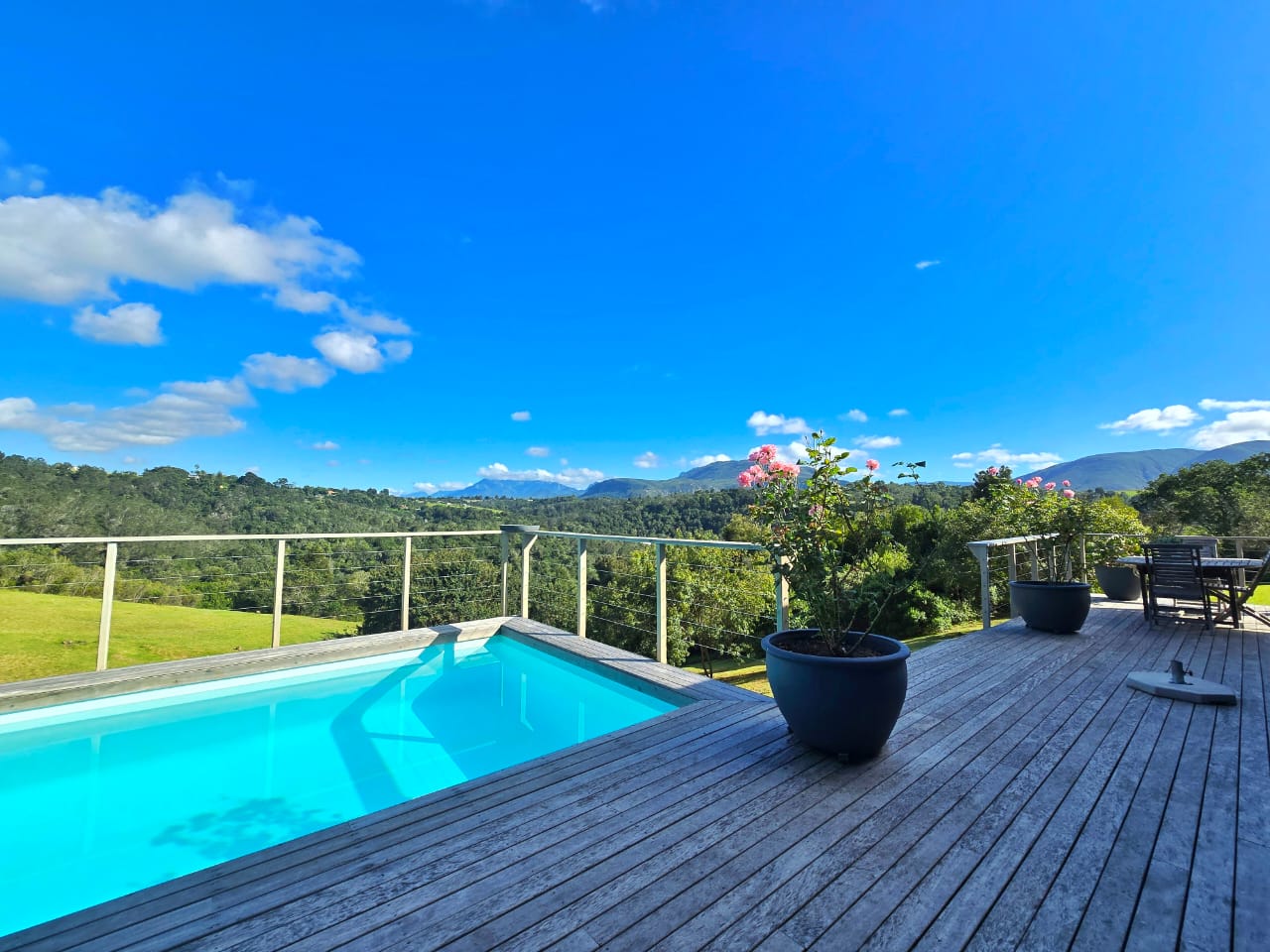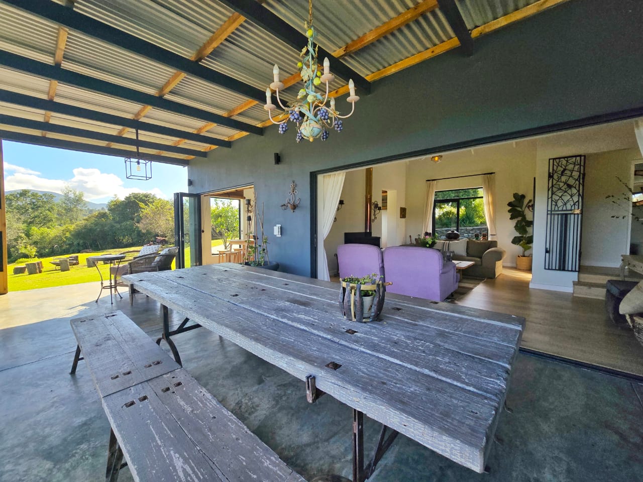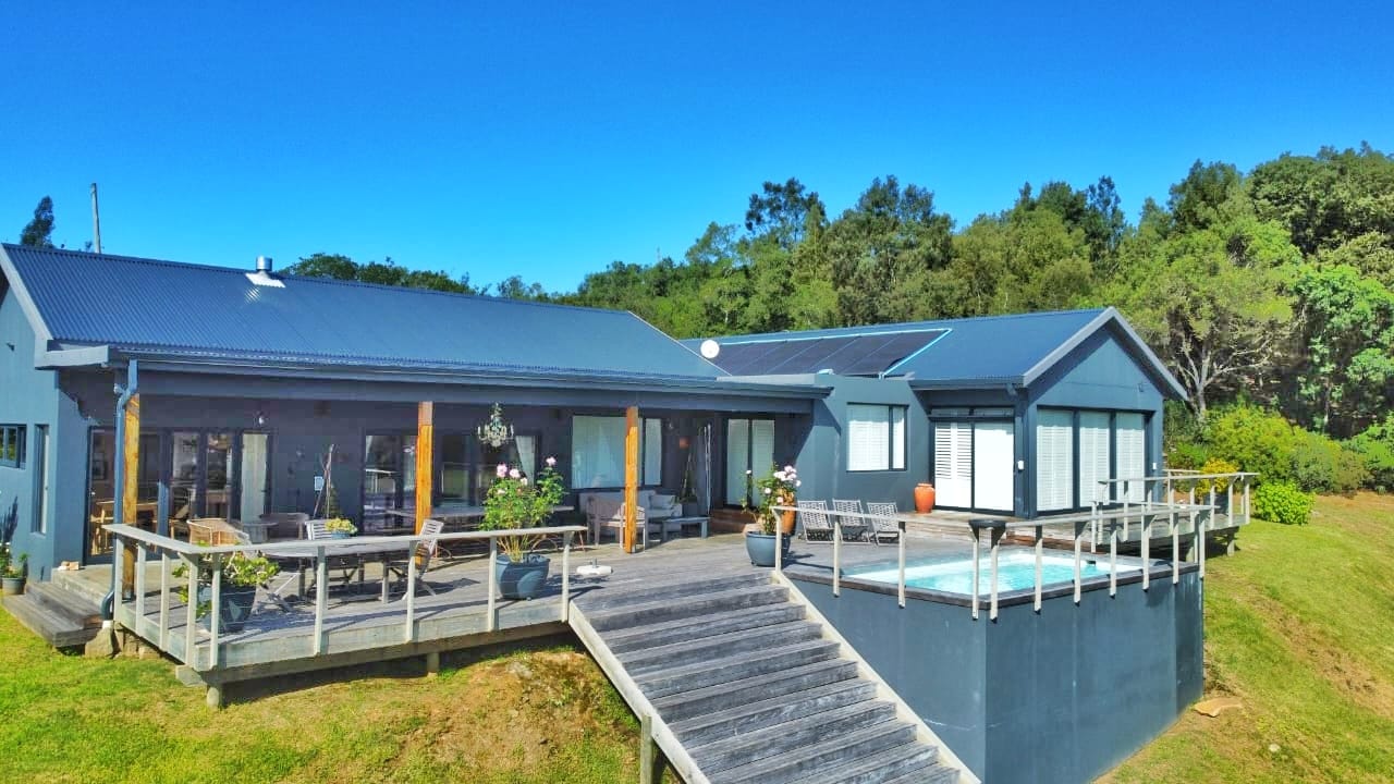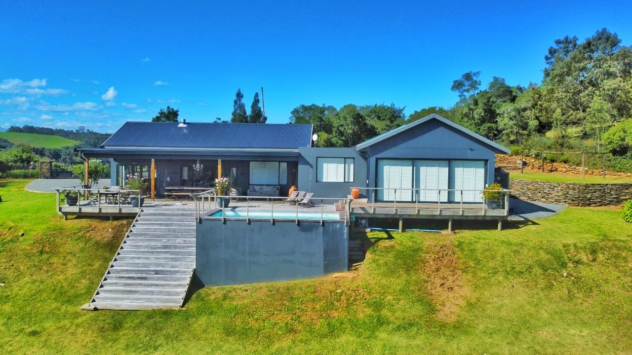 Spectacular views of the mountains, lush greenery and rolling hills, ticking all the boxes for those looking for a clear section of land, your very own forest trails which have been beautifully laid out and to top it all off this property for sale in Wilderness borders on the Duiwe River... Set in the peaceful Hoekwil area ten minutes from Wilderness Village, this 3.6 Hectare lifestyle farm for sale combines privacy, space and natural surroundings with a well-designed home suited to comfortable everyday living. The property consists of three modern bedrooms, three bathrooms (two en-suite)positioned to take full advantage of the surrounding landscape while offering a solid, functional layout inside.