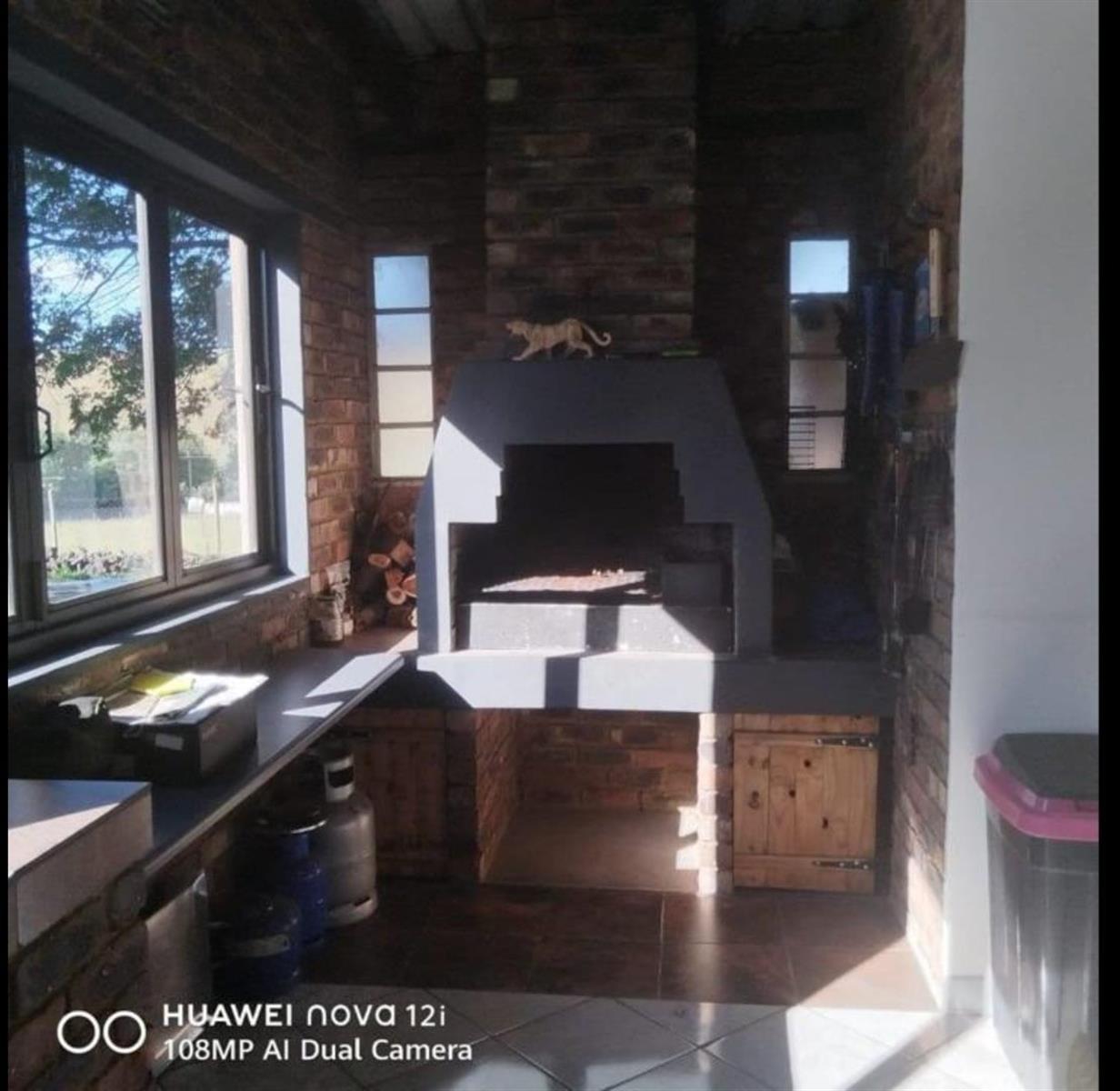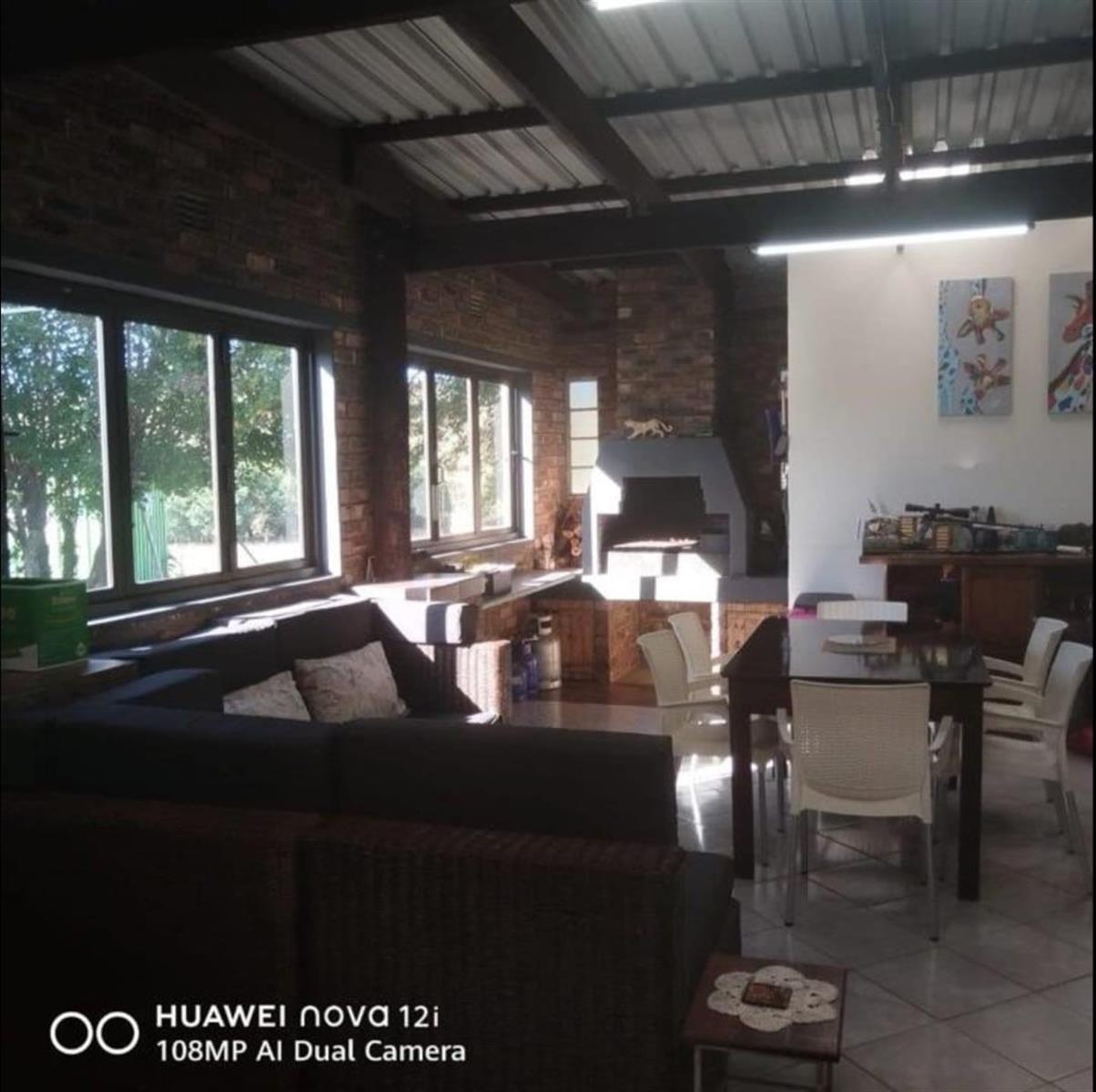 Comfortable lounge, TV room, and entertainment room with built-in braai and wash basin