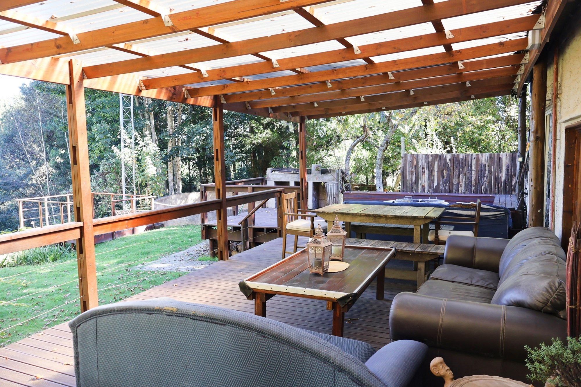 We are pleased to present this beautifully renovated property, which is currently running as a Bed and Breakfast. Situated in the picturesque village of Hogsback in the Eastern Cape, nestled amongst the Amathole mountains. This property was recently renovated. Additional outbuildings and garages were added. It has a lovely deck area with fire pit and a view to die for of the valley and surrounds. All bedrooms and bathrooms have been tastefully decorated. The sale of the furniture is negotiable. Property has rain water tanks and sufficient parking area and 5 garages. It has a double garage and a triple garage which could be converted into extra living space. The property is approx 5 acres.