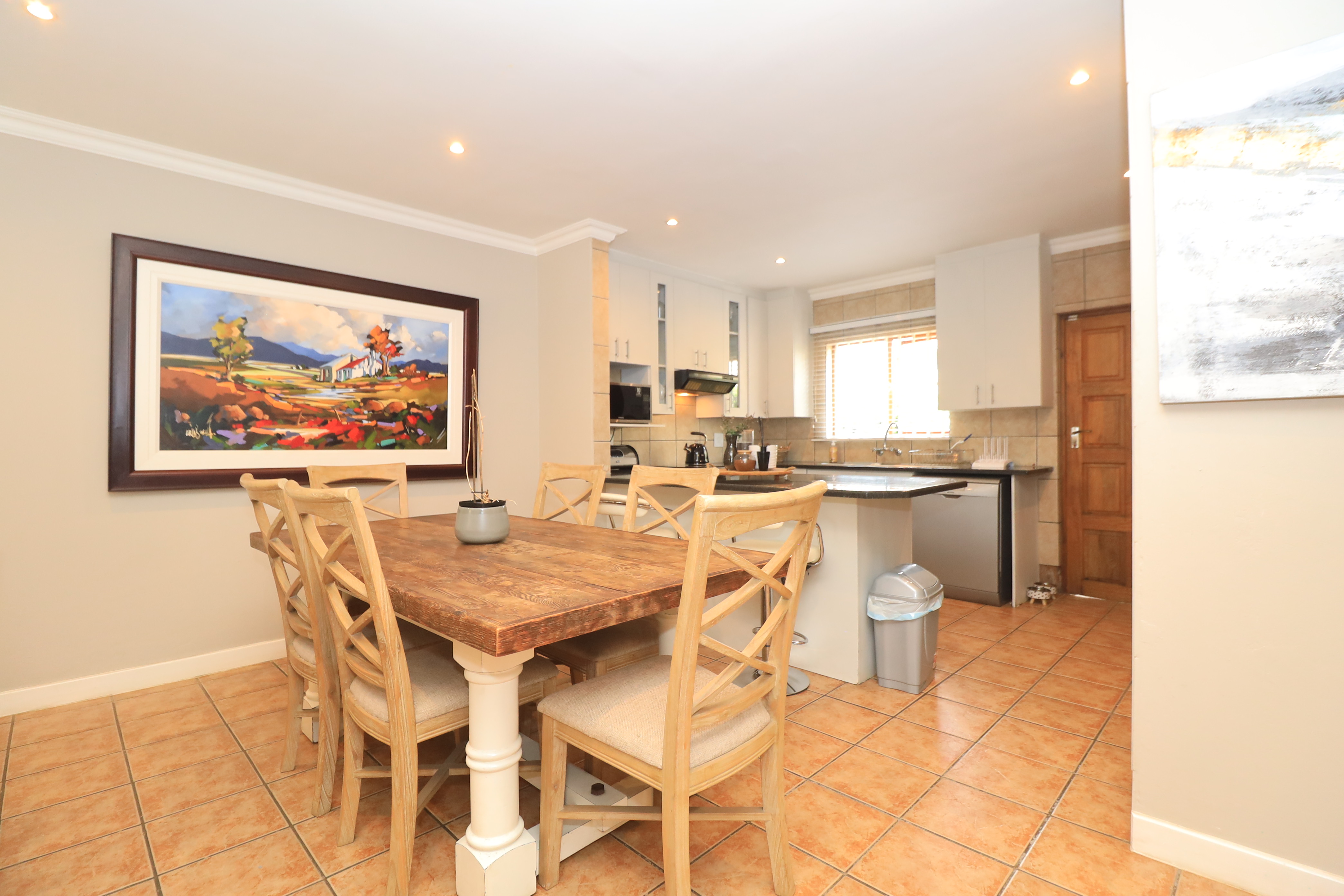 As you step into this beautiful house, you are greeted by a warm and inviting atmosphere. The heart of the home lies in the spacious kitchen, which is a culinary delight. With an abundance of built-in cupboards, luxurious granite countertops, and ample space for three appliances, it caters to both the practical cook and the gourmet chef. The cozy breakfast nook invites you to enjoy your morning coffee while basking in the natural light that floods the room. An under-counter oven and electric hob with an extractor fan complete this modern kitchen, making it an ideal space for family gatherings.